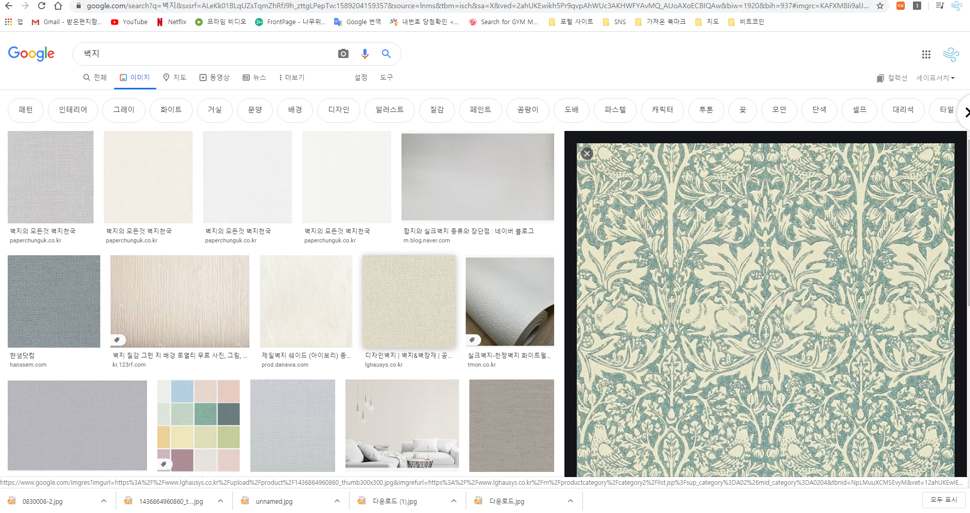 제 방법을 따라 하실 분은 구글에서 "벽지"로 검색해봅시다. 아래의 검색 결과 처럼 다양한 벽지의 이미지들을 얻을 수 있습니다. 적당한 파일 몇 개 다운로드를 합니다. 너무 용량이 큰 파일은 비 추천합니다. 텍스쳐(질감)는 bmp, jpg, gif, png의 이미지 파일 형식이면 가져올 수 있습니다. 다른 형식의 이미지 파일이면 호환 가능한 파일로 변경 후 추가하시기 바랍니다.