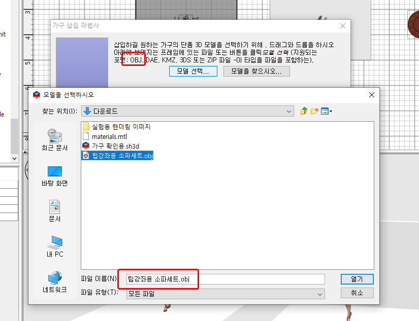스위트 홈 3D 소소한 팁 04- 외부 3D 객체와 텍스쳐 추가 하는 방법-③ 앱에서 3D객체(가구등) 추가��