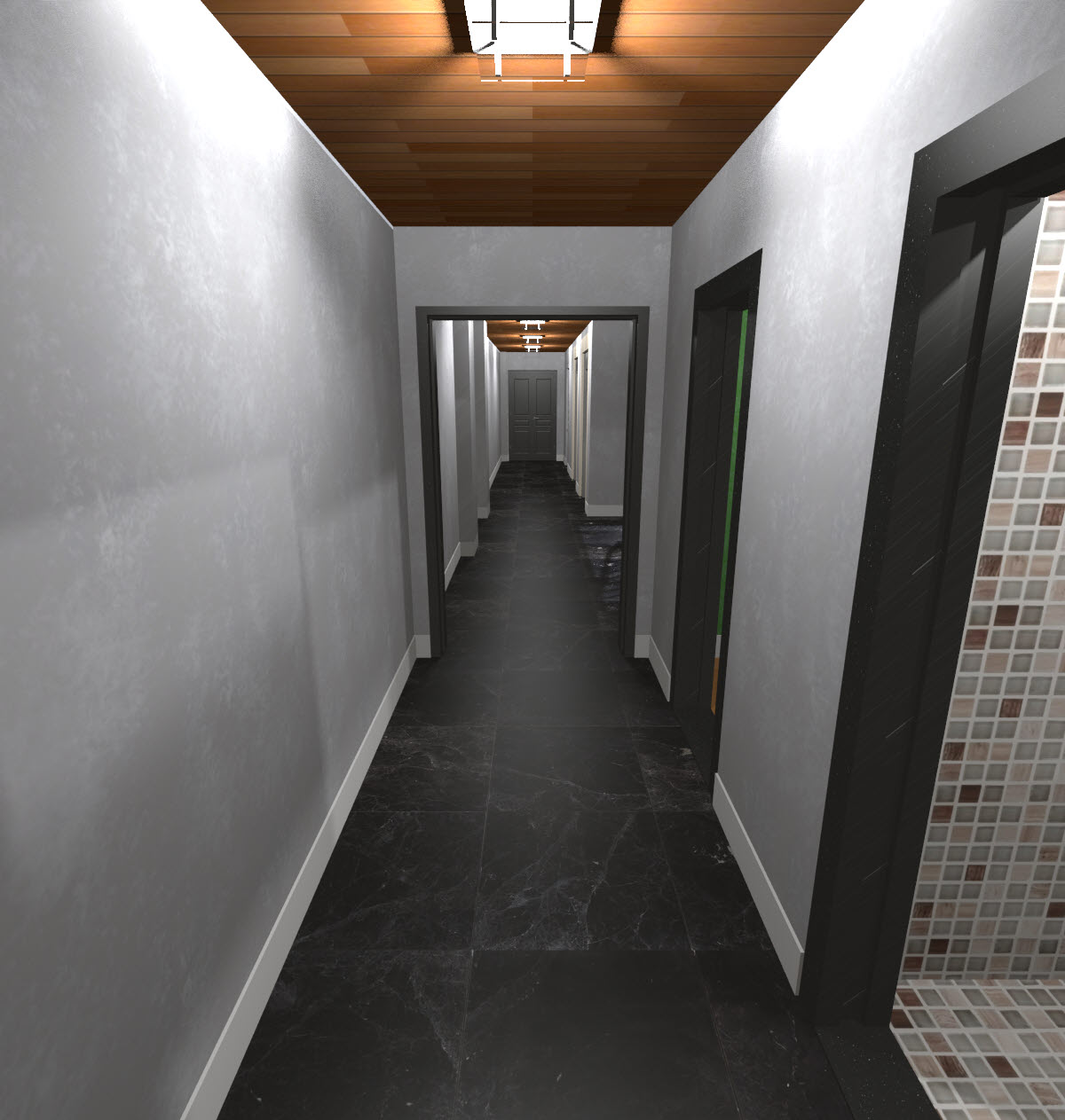 토지 크기와 외벽 형태만 따오고 완전 갈아엎고 개조 중인 타운하우스 렌더링 이미지. 현관복도, 1층 화장실, 경비실, 1층 주차장, 2층 당구장 등...