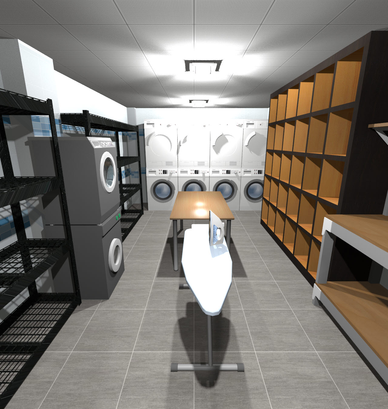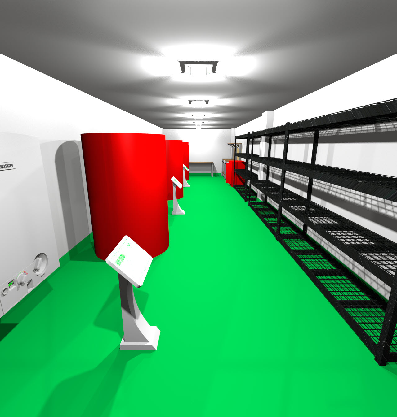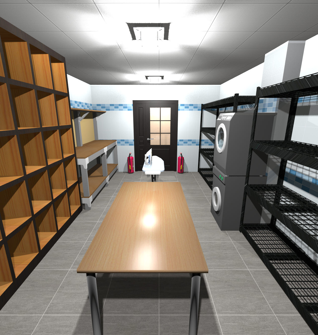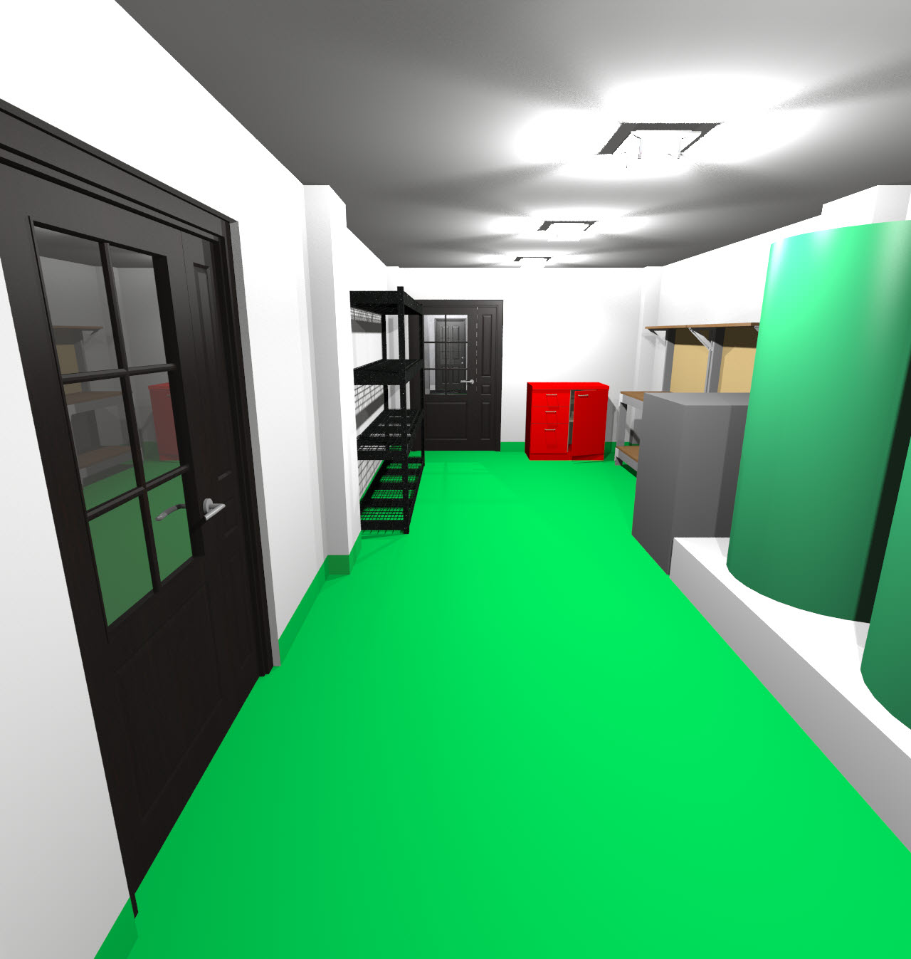 지하 2층 평면도→3D상단뷰→상단뷰 렌더링 순입니다. 이 구조에서 간이 화장실이 살짝 추가되었습니다. 지하 2층은 생활공간은 아니지만, 사람들이 자주 들락거릴 공간이 3곳 정도 있어서 화장실 하나 정도는 있어야 하지 않나라는 생각이 들더군요.