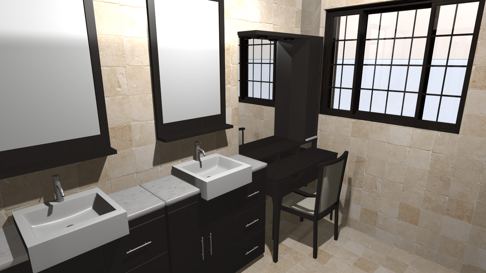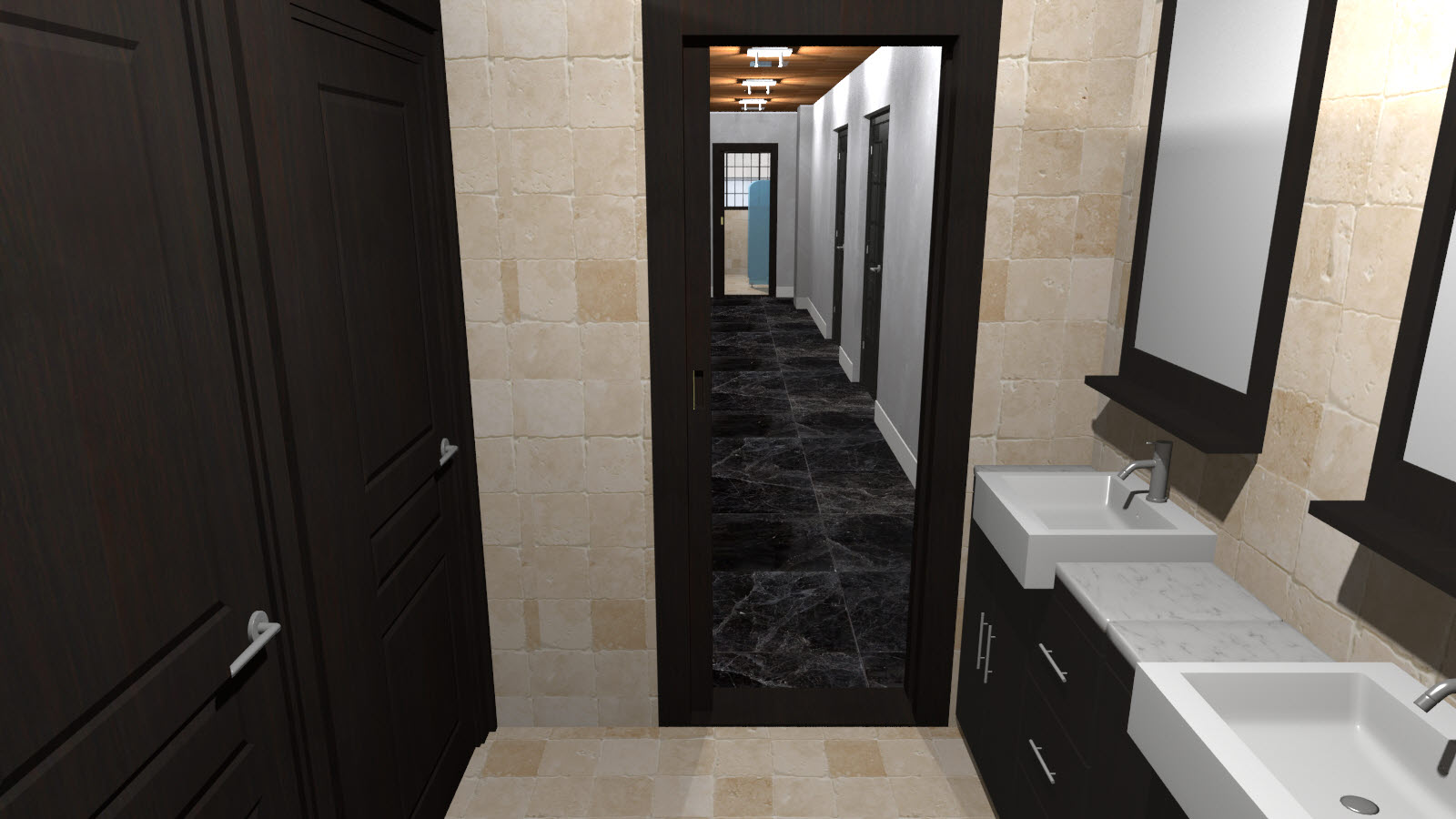 ■ 화장실 : 여자 화장실만 렌더링을 돌렸음. 남자 화장실도 구조는 거의 동일함. 세면대가 남자화장실은 1개이며, 화장대 자리가 없는 대신 소변기가 2개 추가됨.