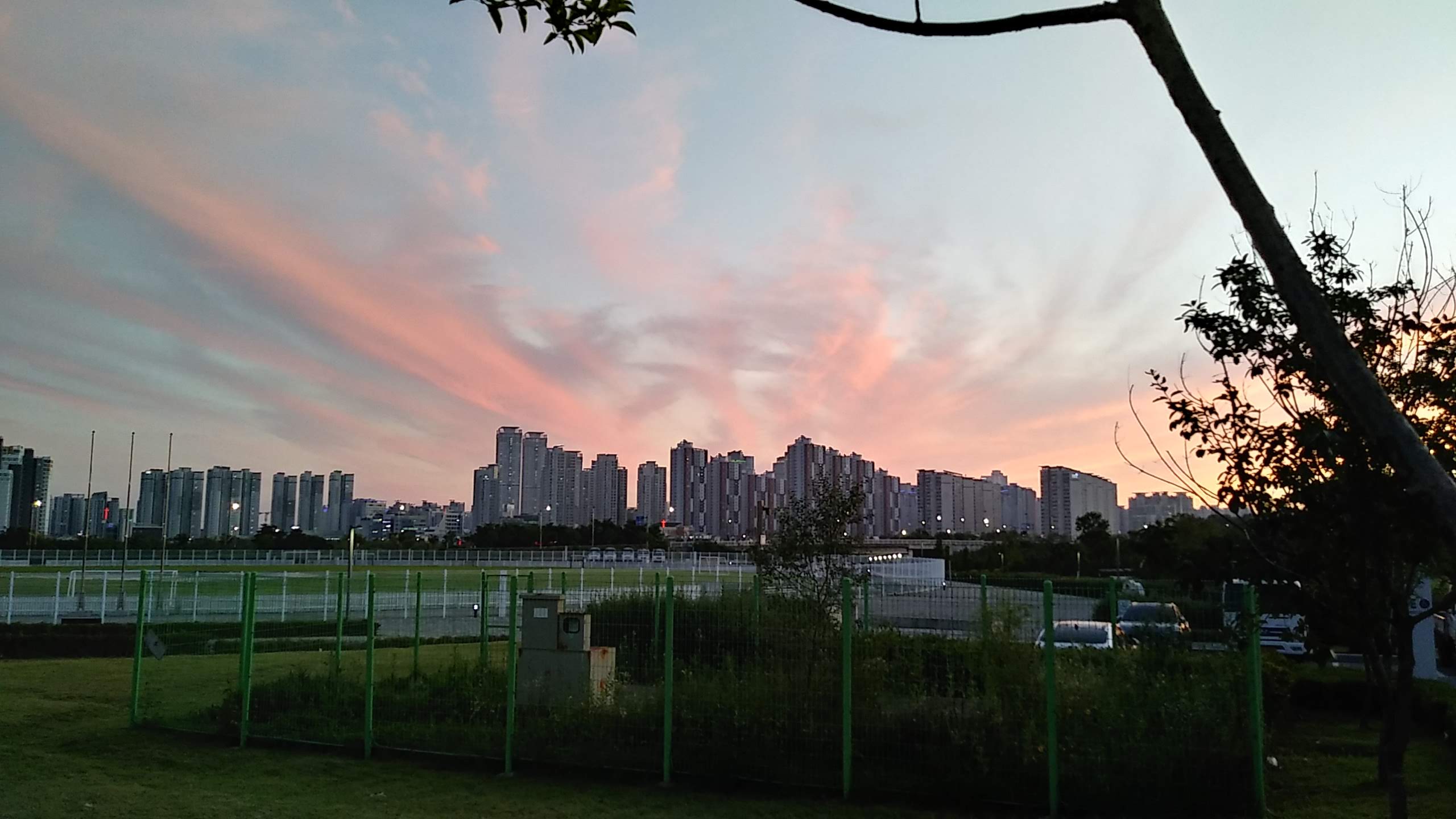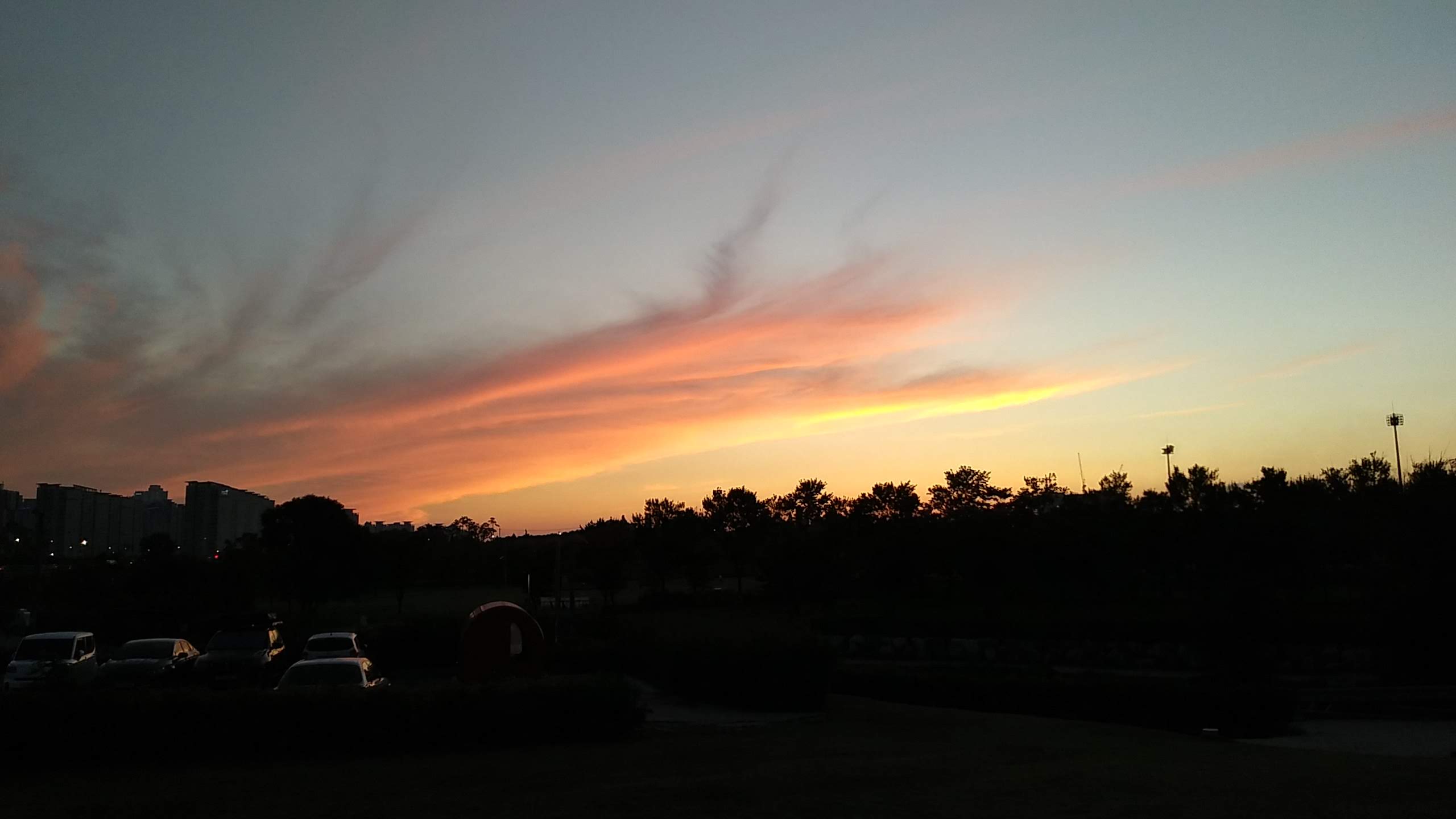그리고 오늘도 노을이 끼었습니다. 내일 비가 또 온다던데, 그래서 노을이 진 게 아닌가 싶기도 하더군요.