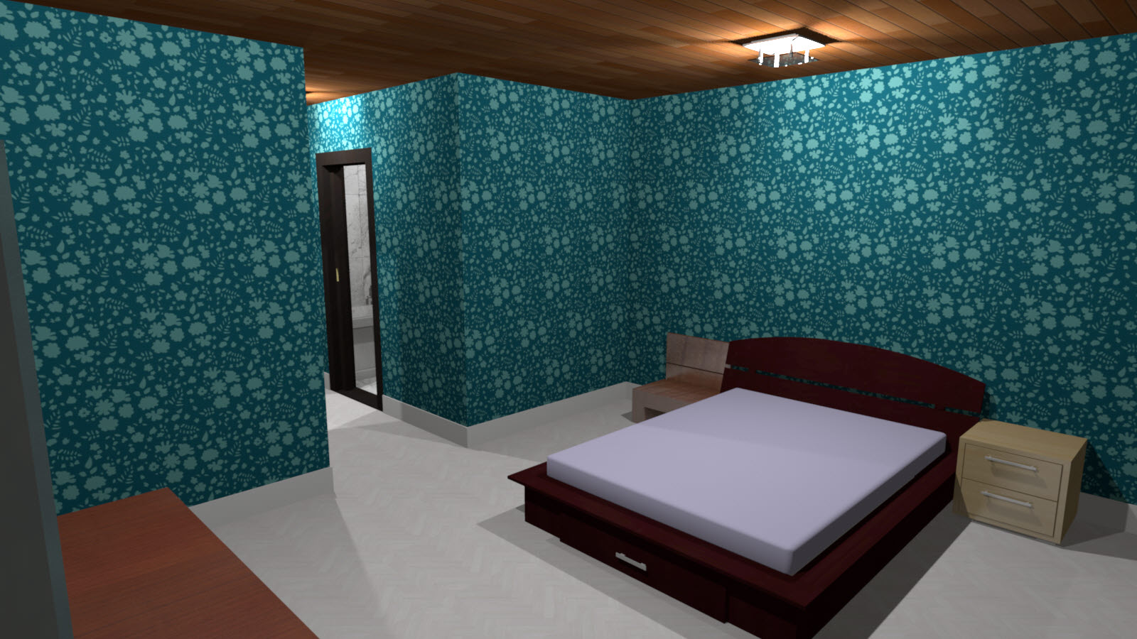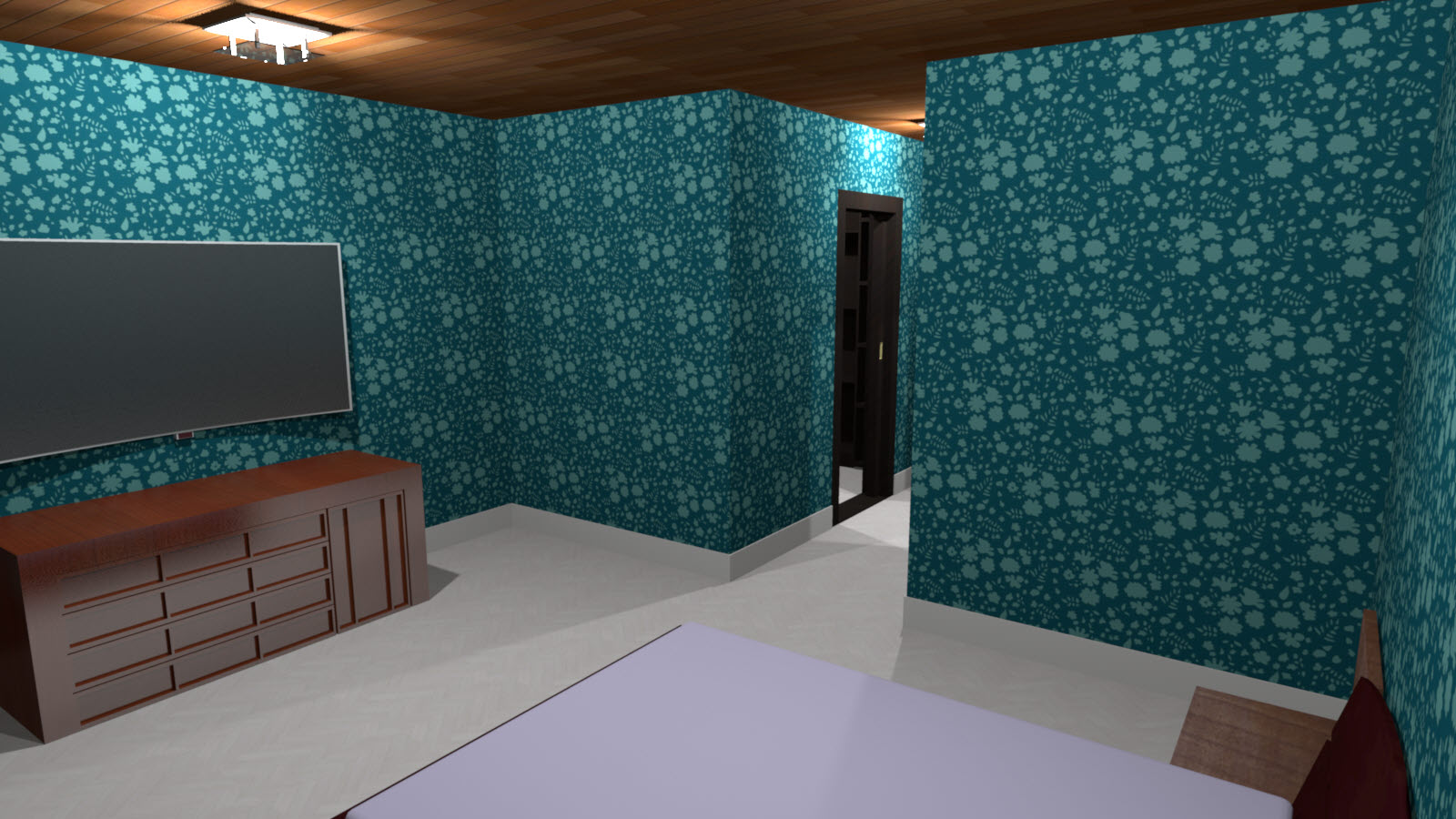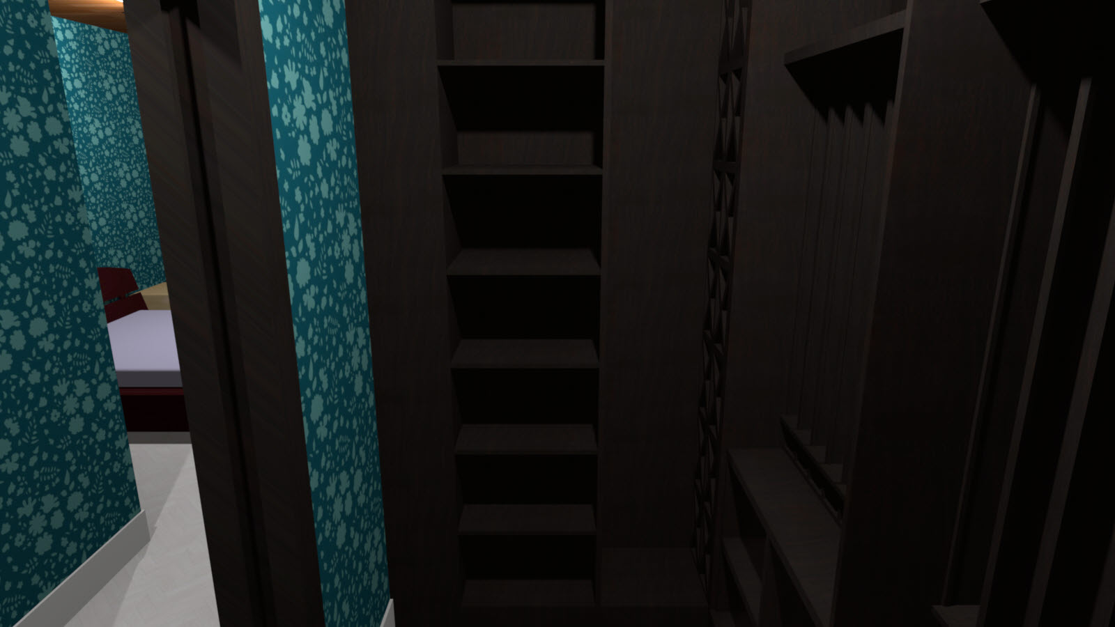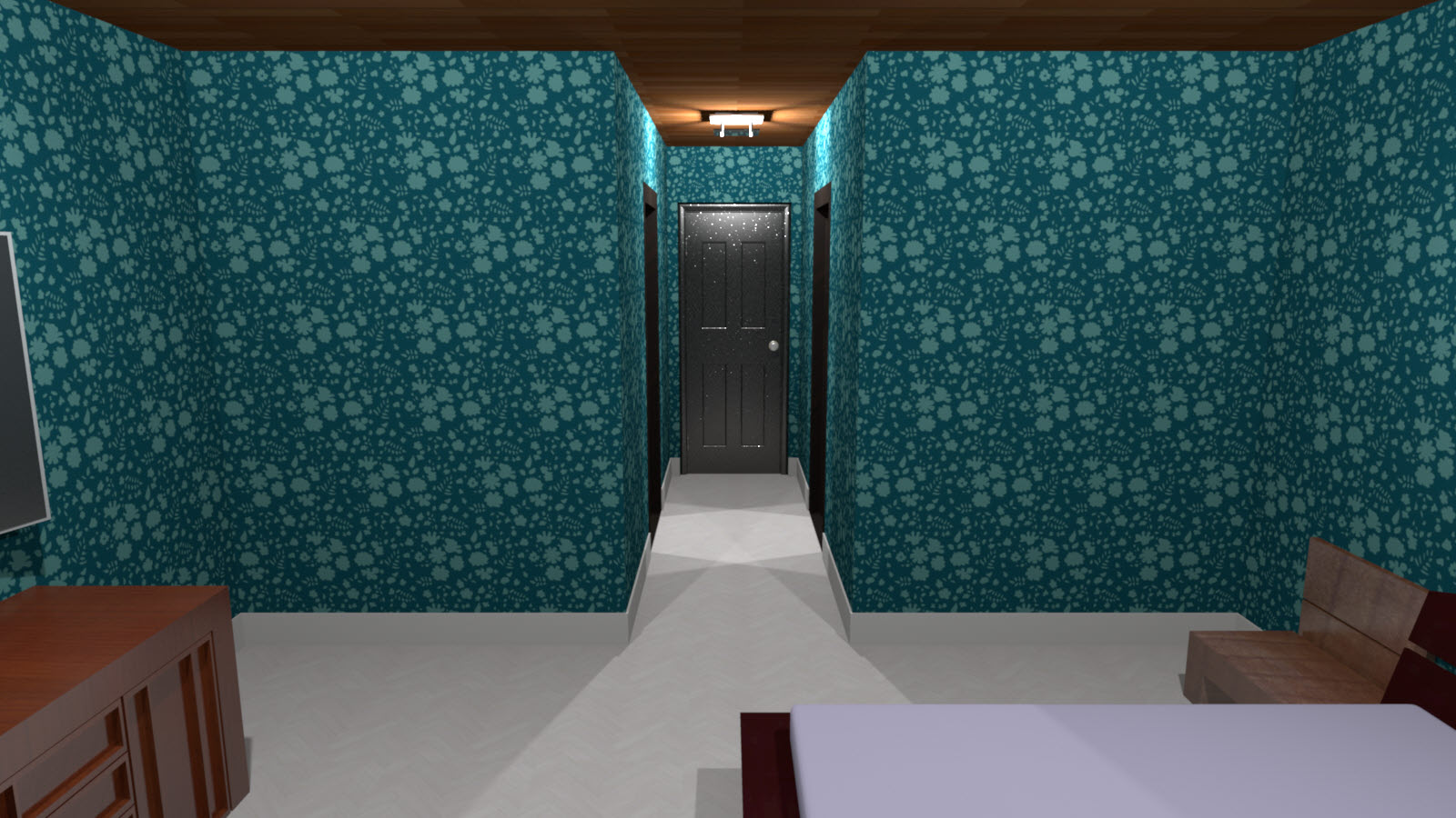 ■ 손님방 : 총 6개의 손님방이 있으며 방에는 욕실과 옷방이 포함되어 있습니다. 2인 침대가 제공되므로 7층에 총 12명이 묶을 수 있습니다. 각 방은 구조가 똑같기 때문에 1개의 방만 렌더링을 돌렸고 벽지가 다른 방을 비교하기 위한 추가컷을 돌려봤습니다.