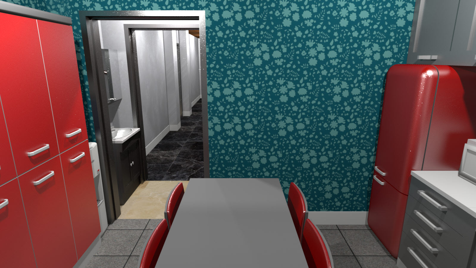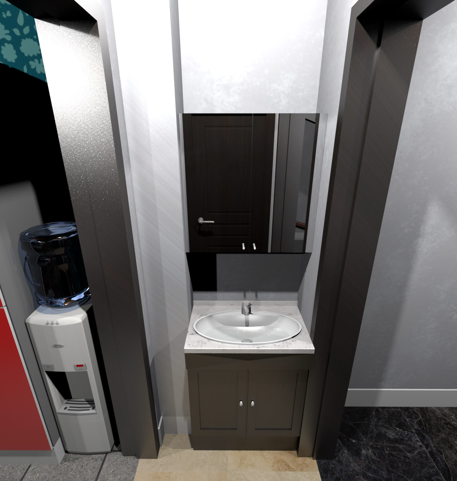 ■ 쿼터뷰 : 남자화장실 자리에 간이부엌, 여자화장실 자리에 생활실이 배치되어 있는걸 확인할 수 있습니다.
