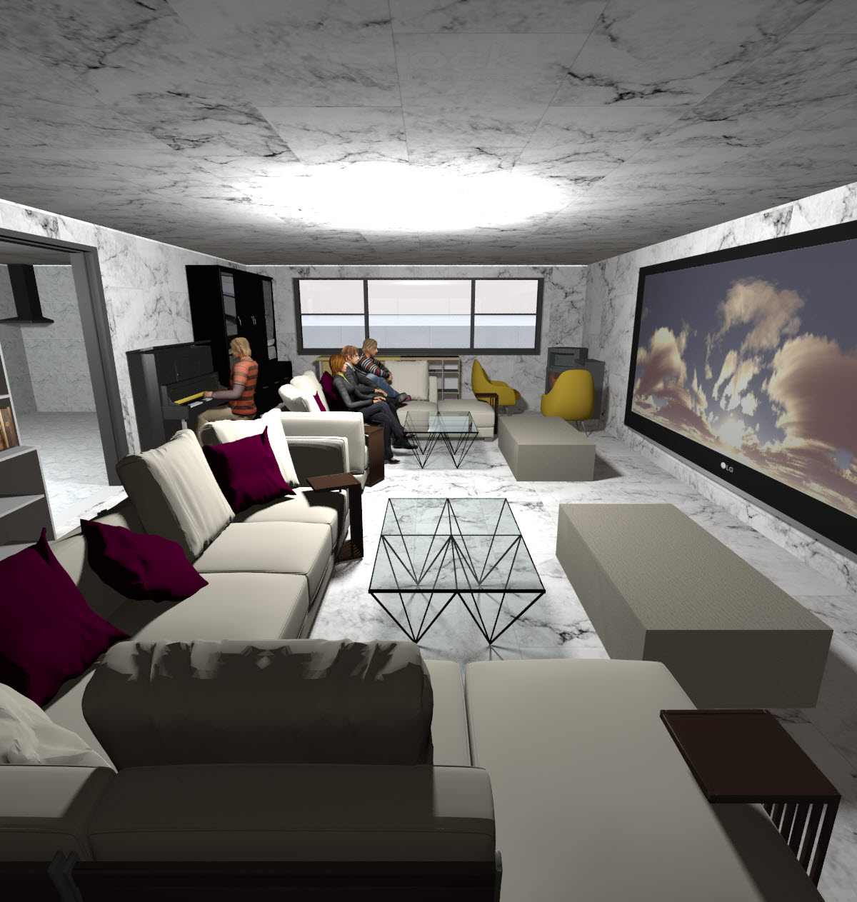 최종 완성본과는 좀 차이가 있을 수 있습니다. 설계 하는 중에도 구조나 인테리어 변경 등이 계속 진행되기 때문이죠. 어쨌든 규모가 작으니 렌더링 시간이 적게 걸려서 좋네요. ㅋㅋㅋ 그리고 또 압니까, 나중에 경제적 여력이 받쳐주는 때가 와서 실제 이런 100평 주택을 실제 지을 수 있을지도요.