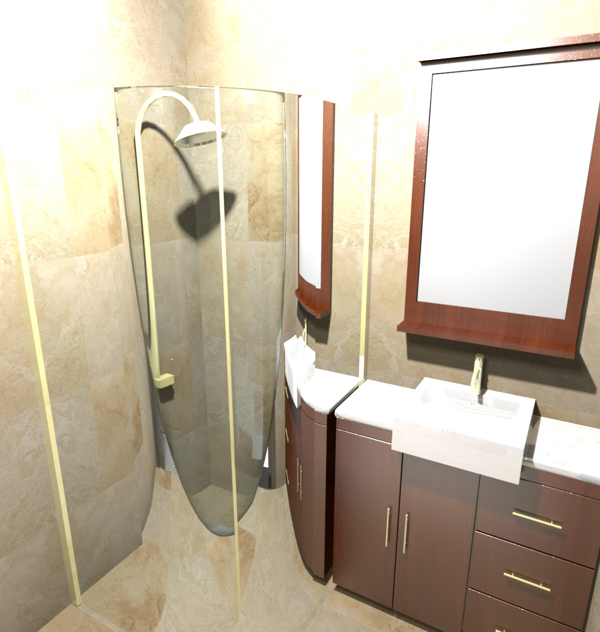 ■ 공용화장실 : 샤워기와 세면대만 렌더링 돌렸지만, 이 화장실은 변기실이 2개로 나뉩니다. 좌변기와 소변기를 별도의 실을 만들어서 배치해서 동시 남녀 각 1인씩 두 명이 사용 가능하며 그 와중에 샤워도 가능하게 별도의 부스를 넣어봤네요. 근데 생각해보니까 좌변기 2개를 넣는 게 나을 것 같기도 하더군요. 그럼 성별 상관없이 2인 동시 사용도 가능!