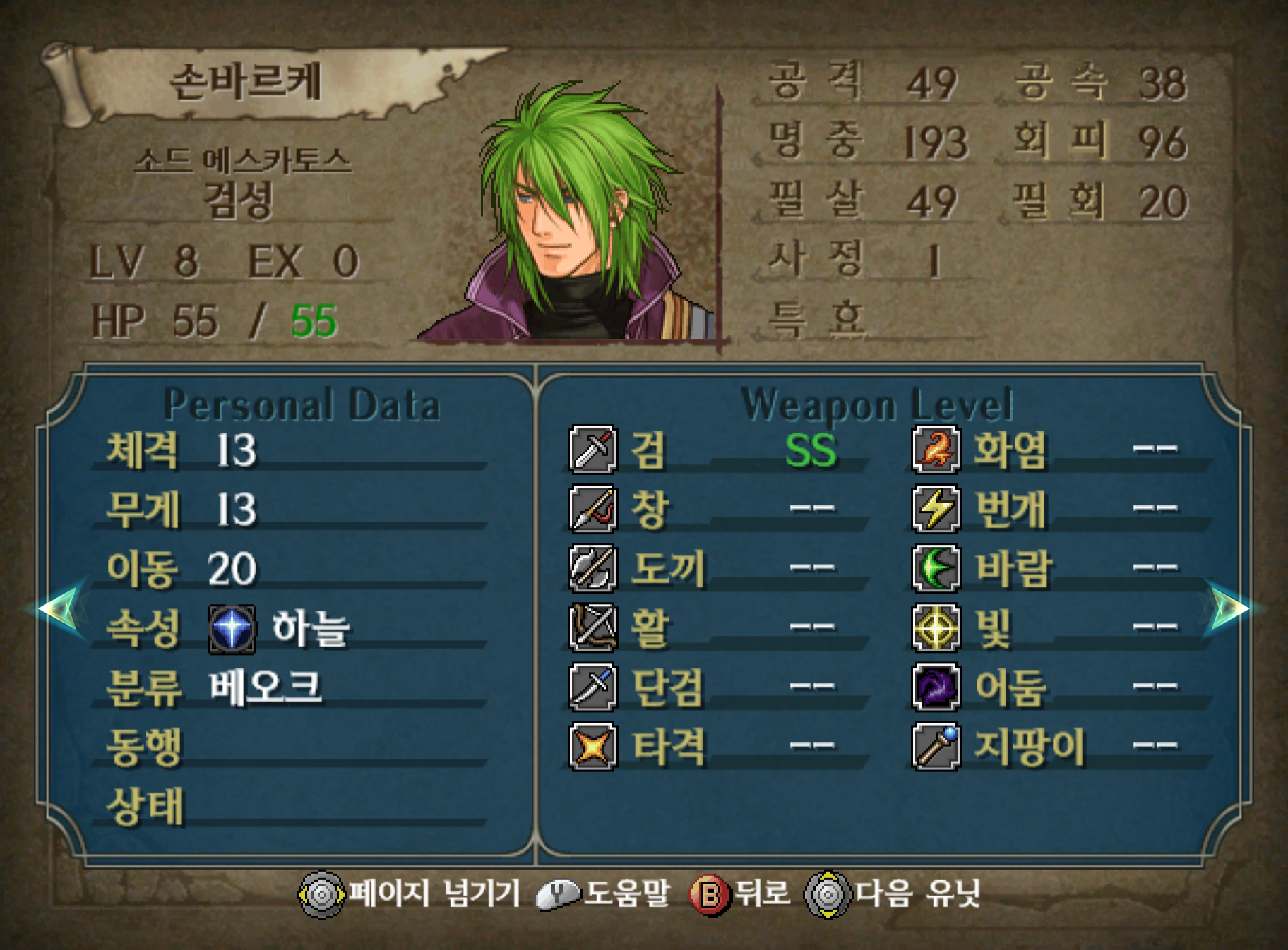4부 3장에서는 특정 위치에 특정 인물 (미카야, 레테 둘 중 한 명)이 도달하면 손바르케가 합류합니다. 소드마스터 중에서는 가장 최강 아닌가 싶긴 합니다만 와유나 다른 소드마스터들도 지금 쯤이면 이미 성장이 많이 된 상태라...