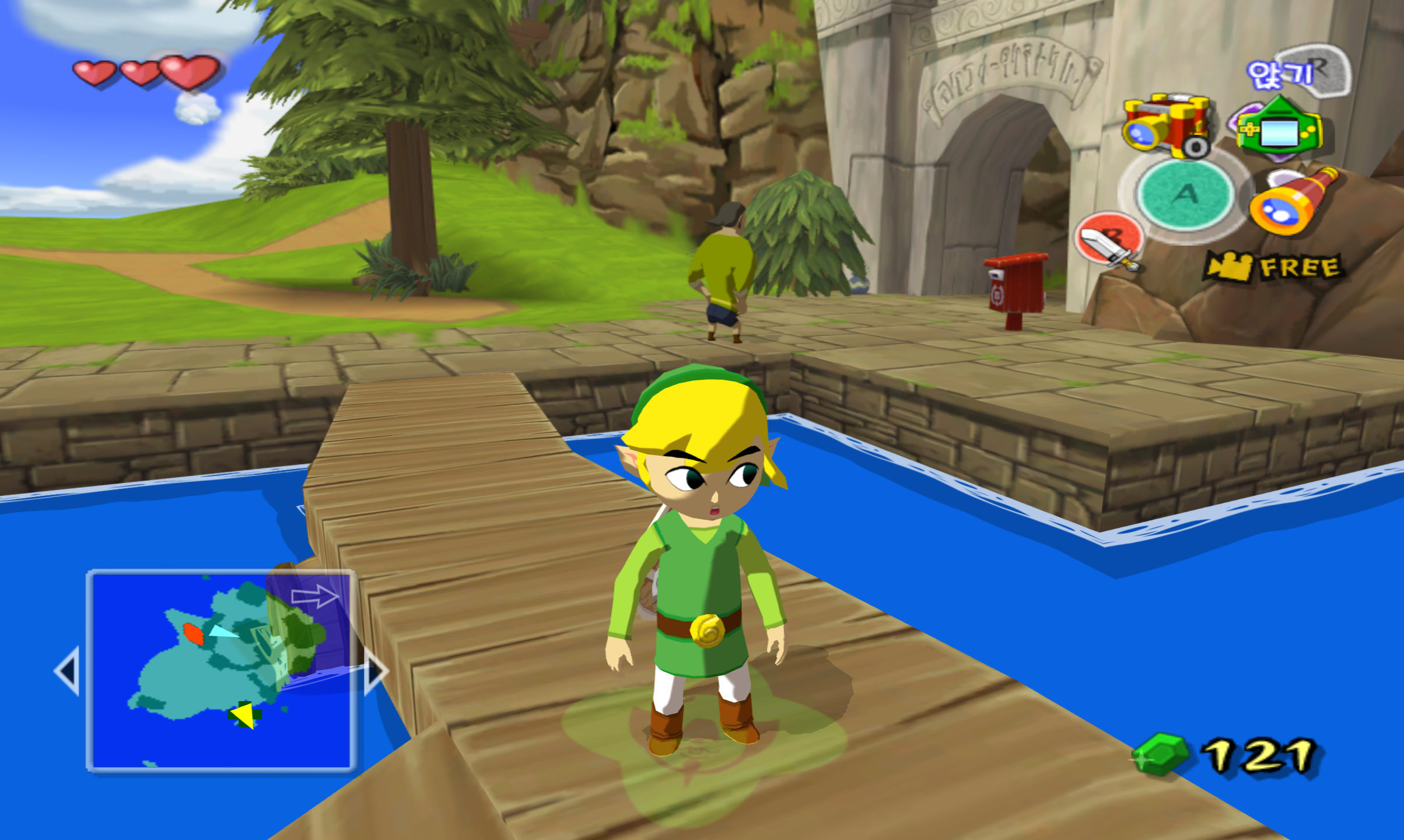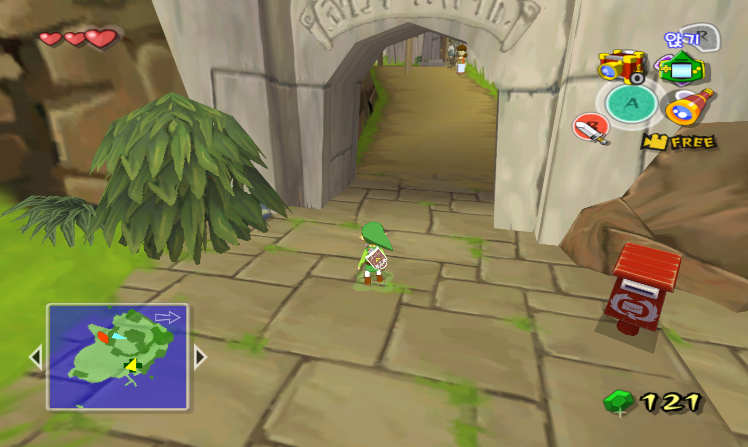 3. 재빨리 뒤로 돌아서 스샷의 위치로 이동합니다. 대기 타던 곳에서 별로 멀지 않습니다. 그리고 저 빨간 우체통을 바라보게끔 링크를 돌려주고 카메라를 켭니다.