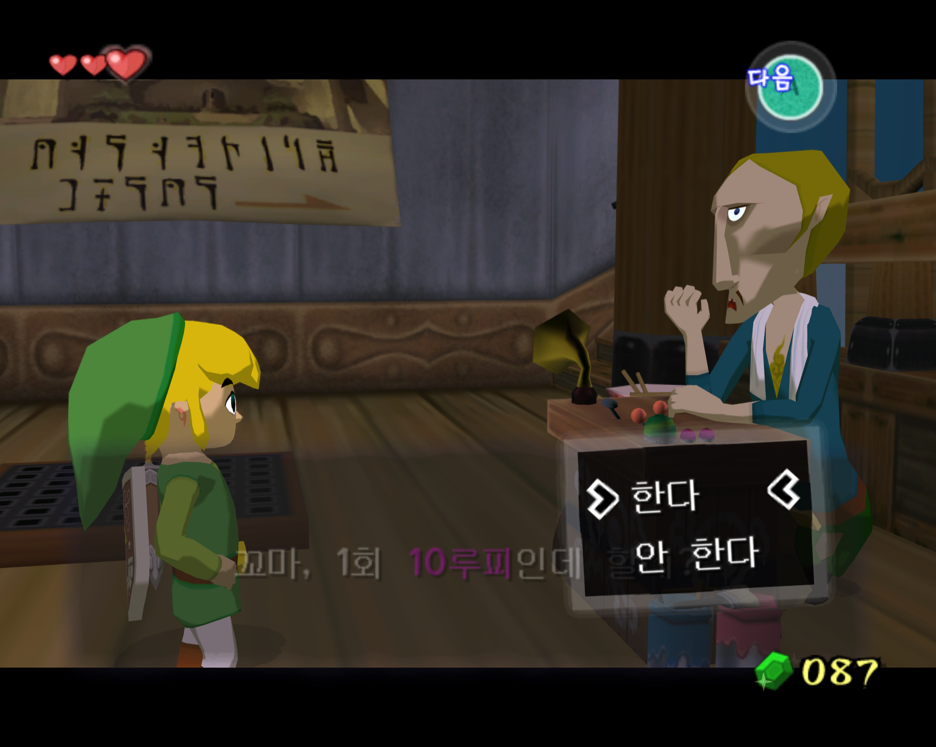 2. 주인장에게 말을 걸면 10루피에 게임을 시작할 수 있습니다.