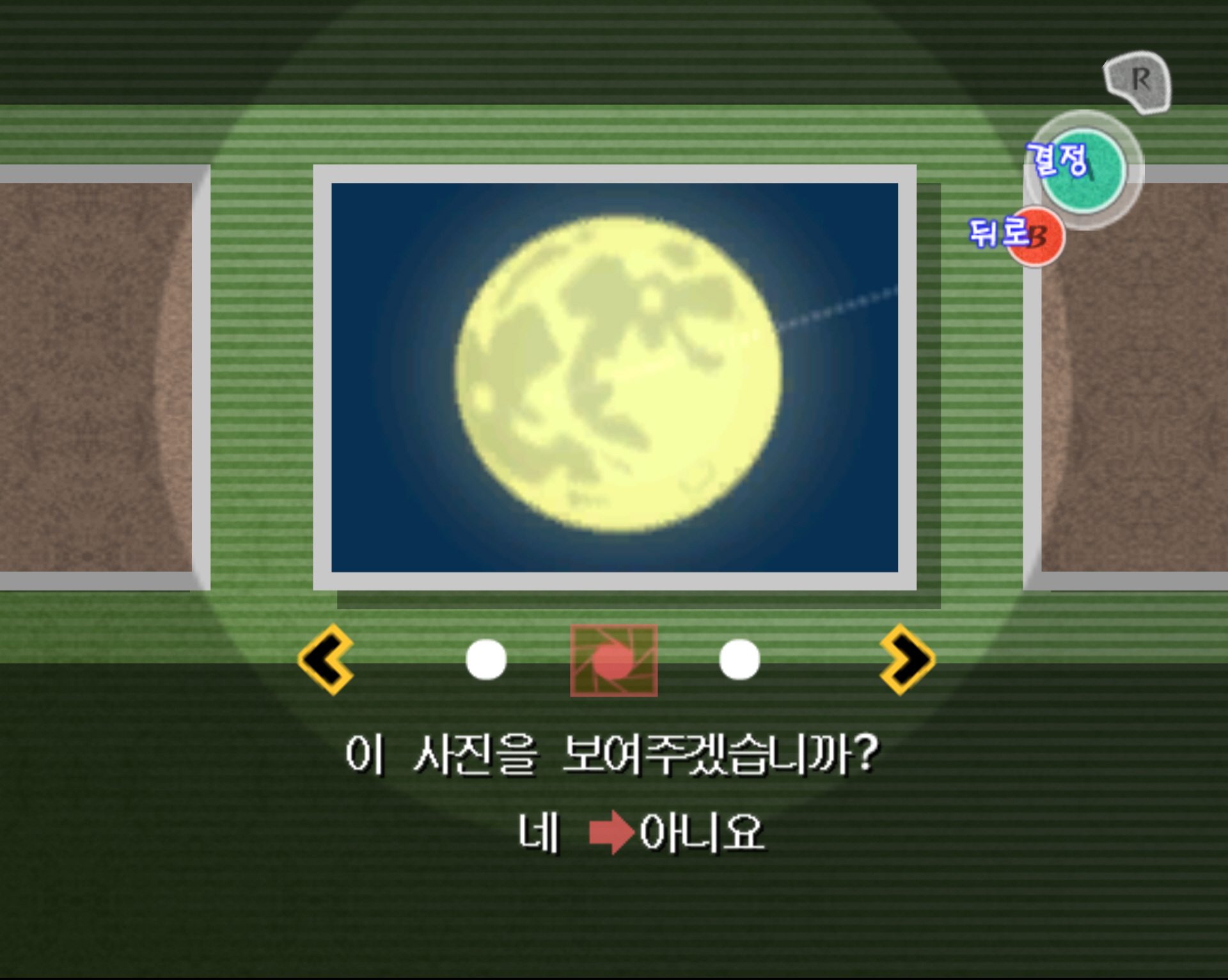 보름달이 잘 찍혔다면 다시 주야의 노래를 지후해서 낮으로 바꾼 뒤 날백수를 찾아갑시다. 날백수 앞에서 보름달이 찍힌 사진기를 사용하면 보름달 사진을 보여줄 수 있습니다. 그러면 날백수가 내 마음이 어쩌고 저쩌고를 날리다가 보물지도를 한 장 줍니다.