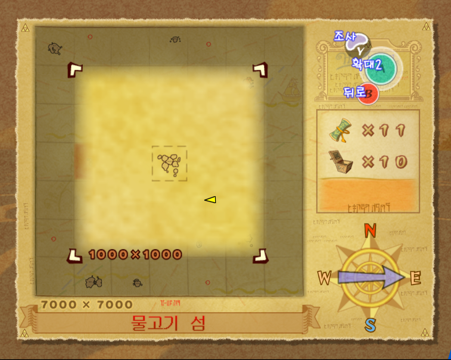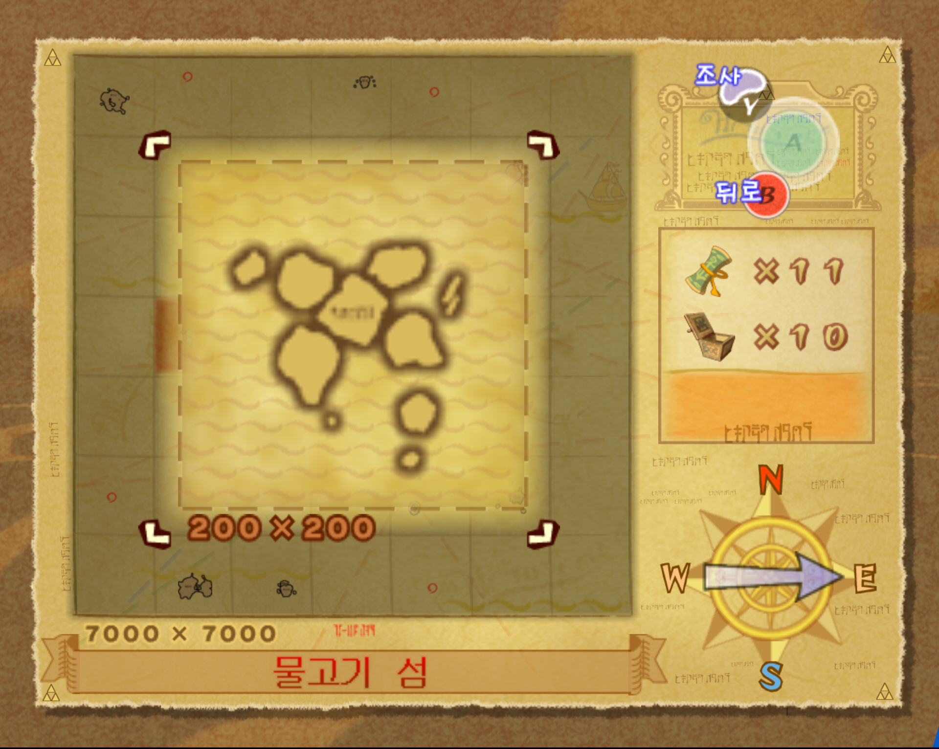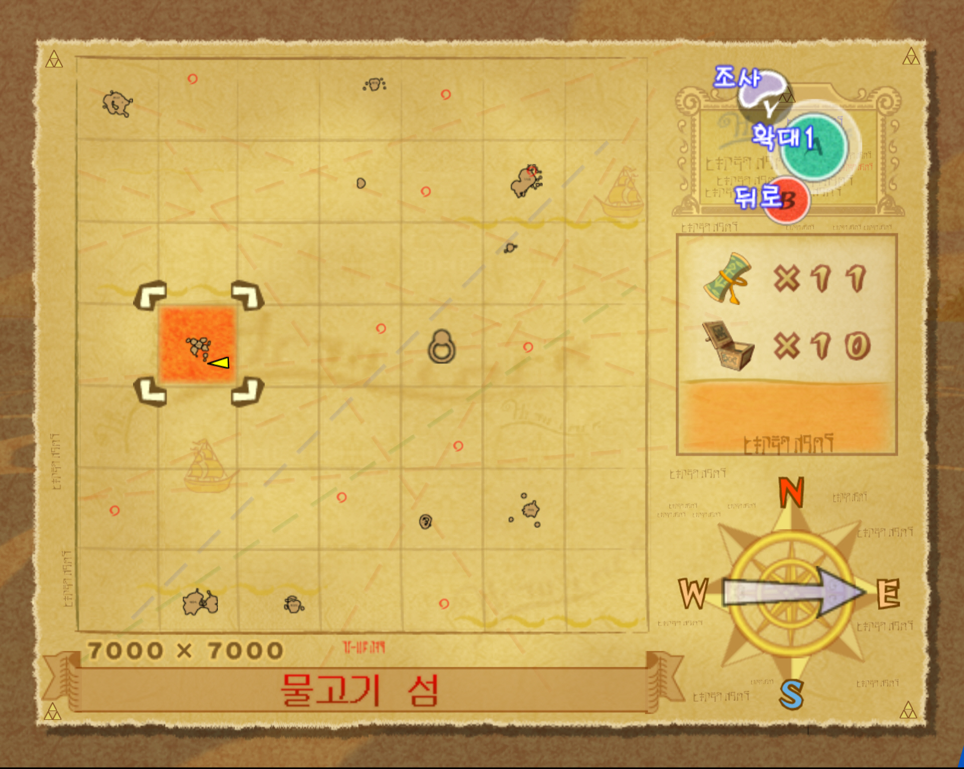 물고기 섬의 위치와 테크 잎을 타고 날아갈 곳은 스샷을 보면서 확인하세요. 물고기 섬의 전체 해도상 좌표는 B4입니다.