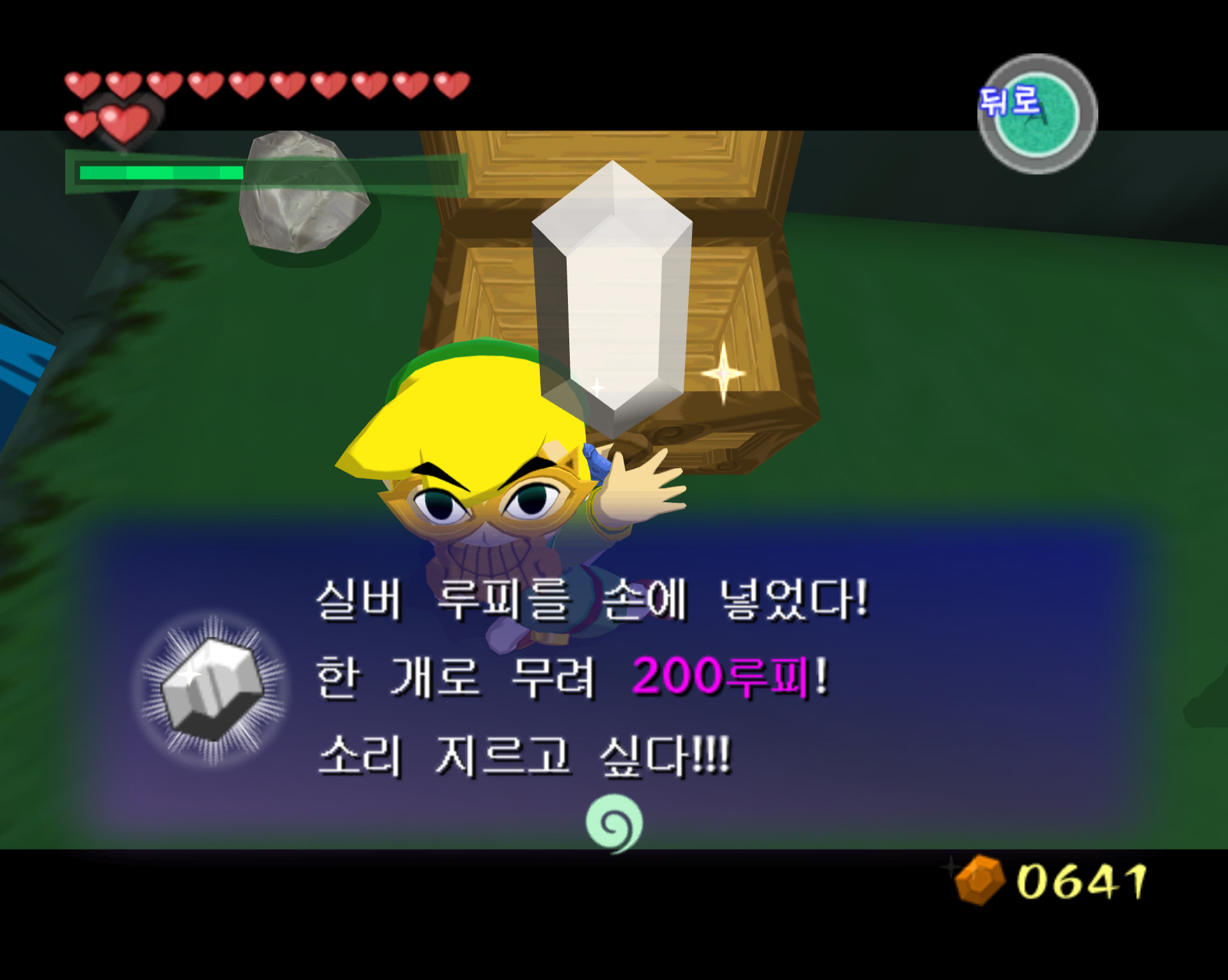 떨군 보물 상자에는 실버루피 (200루피)가 들어 있습니다. 스샷과 동영상으로 확인하겠습니다.