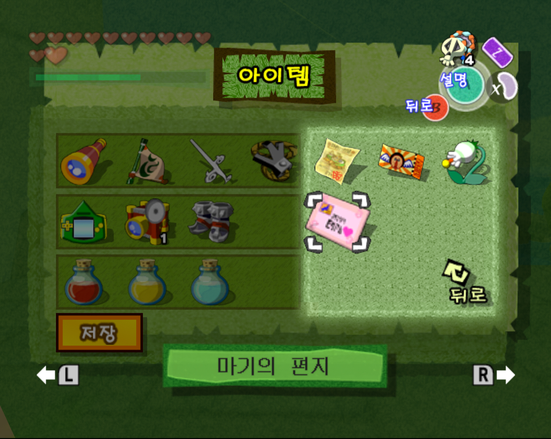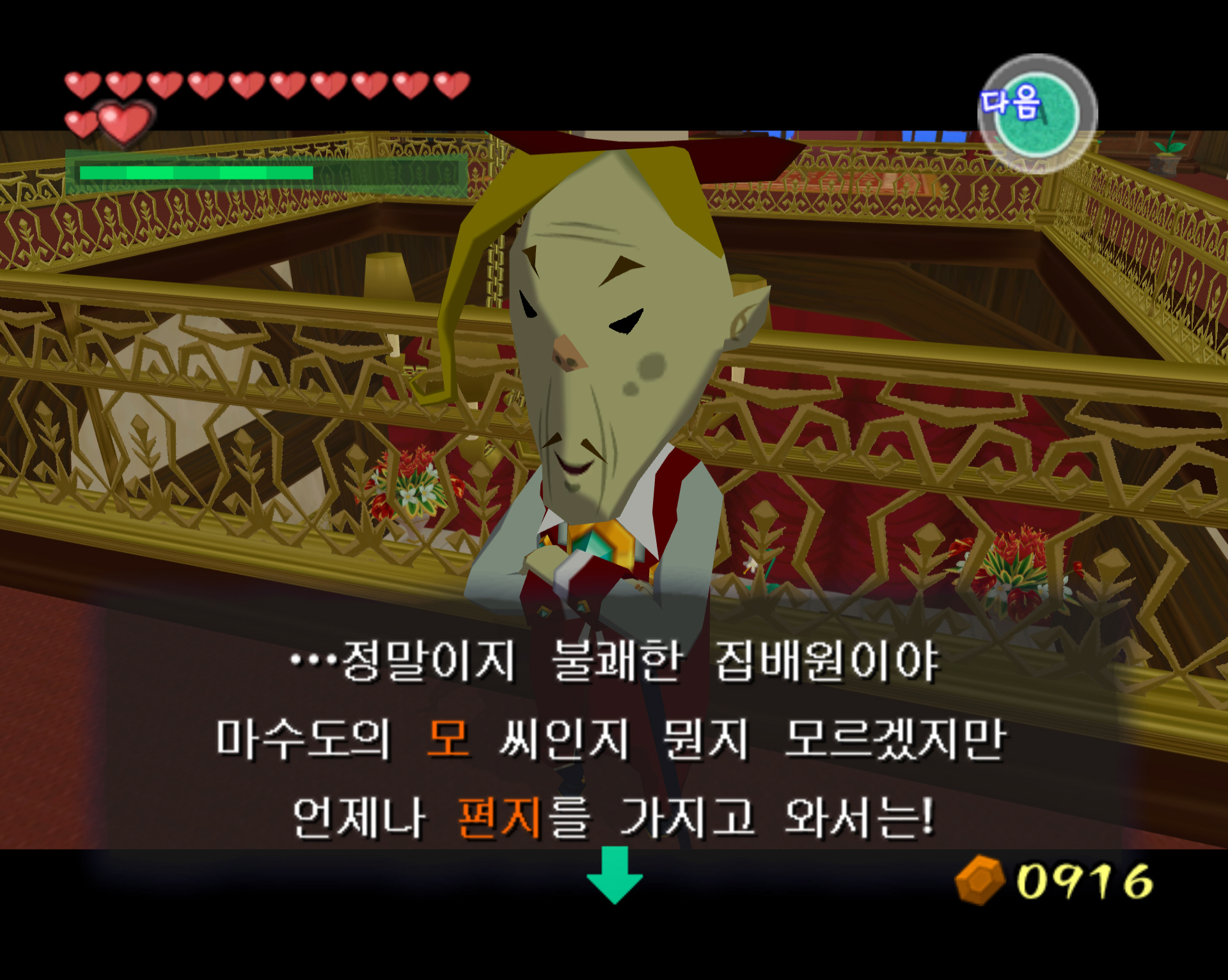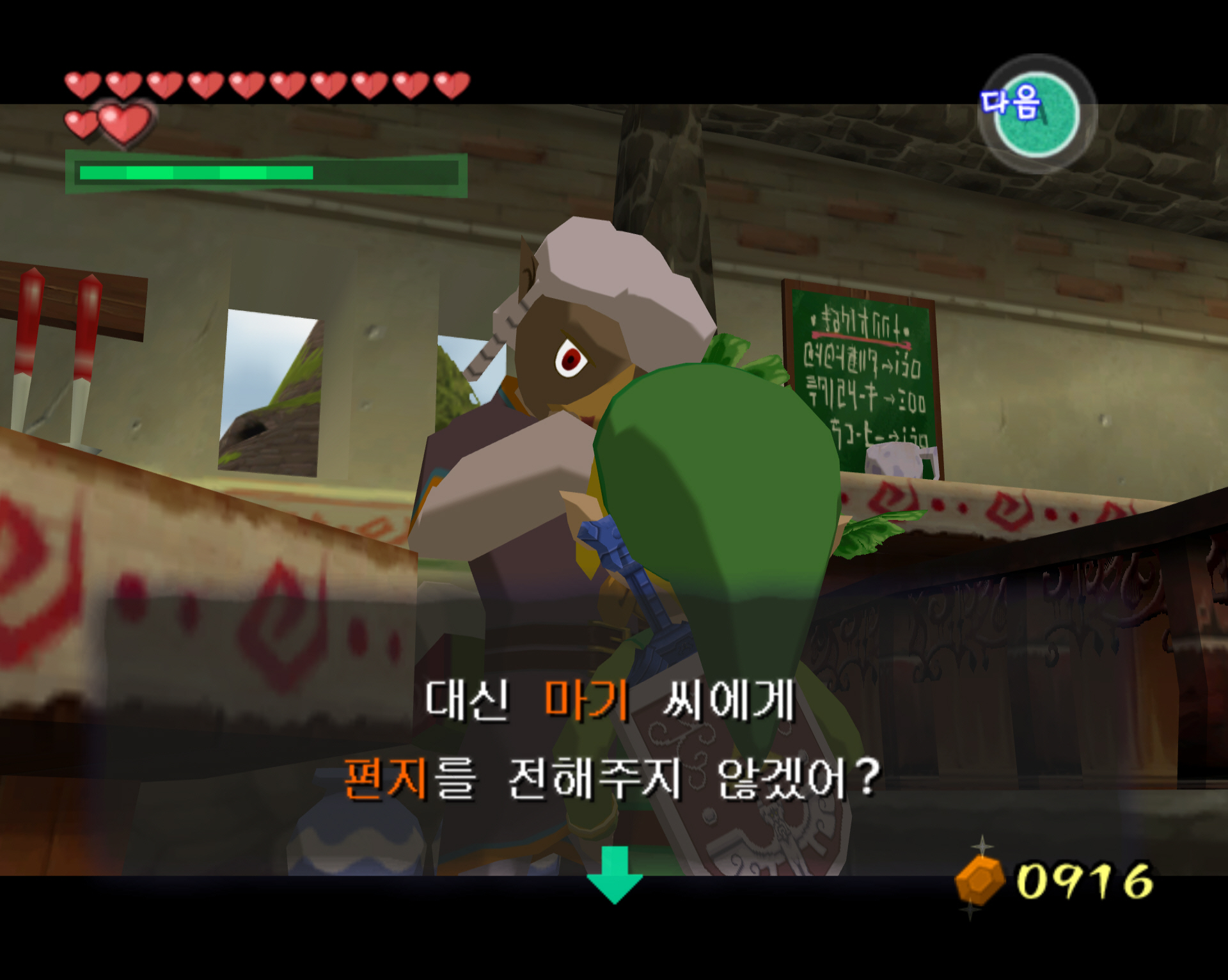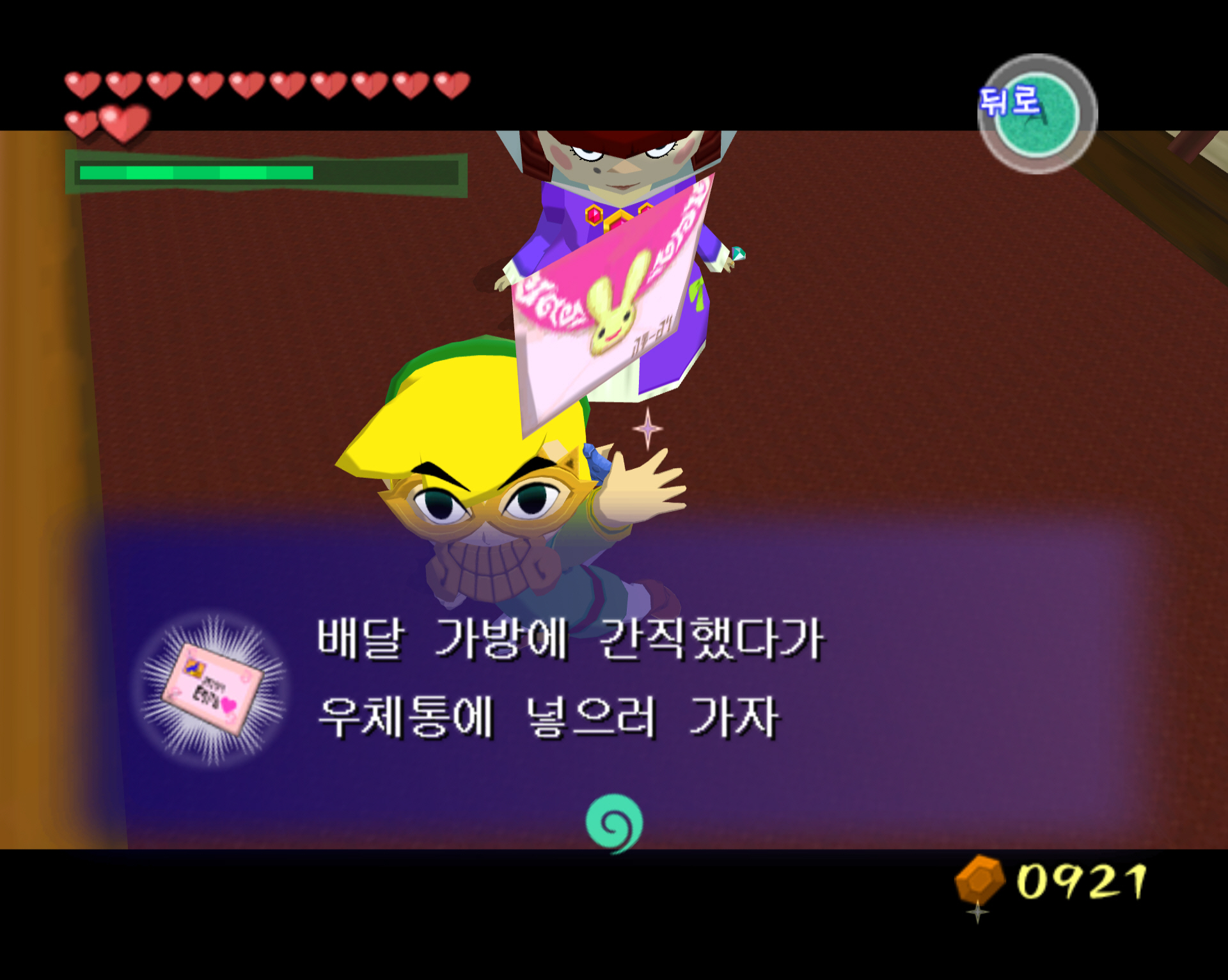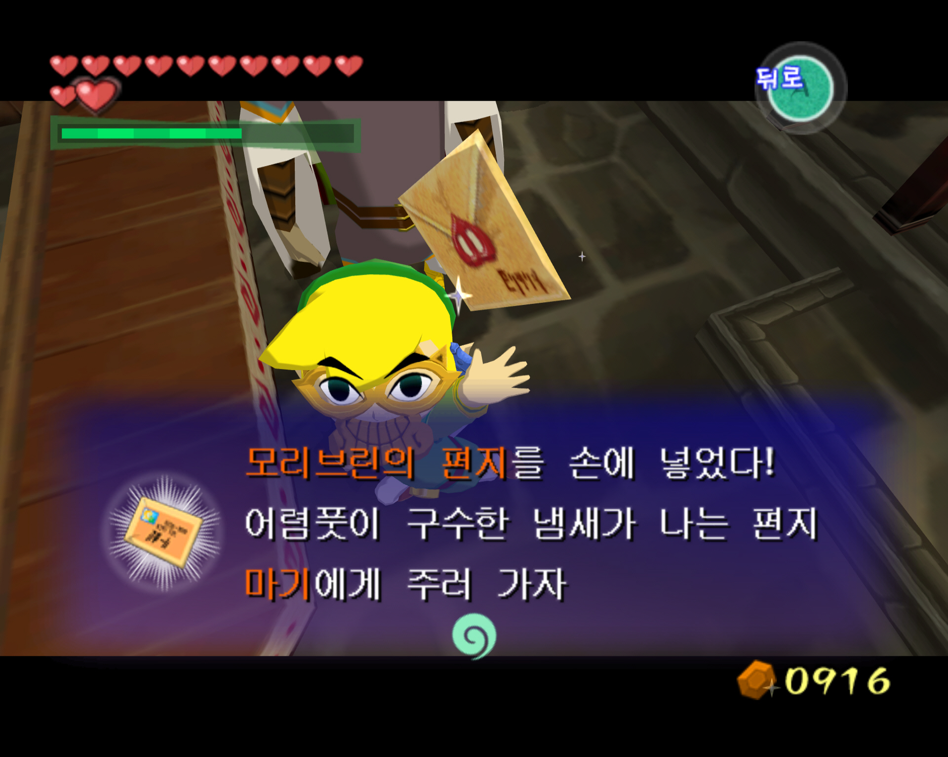 5. 다시 부잣집 2층을 가서 추녀 마기에게 배달부에게서 받은 "모"씨의 답장을 사용하면, 주저리주저리 떠들다가 하트 조각 하나를 답례로 링크에게 줍니다.