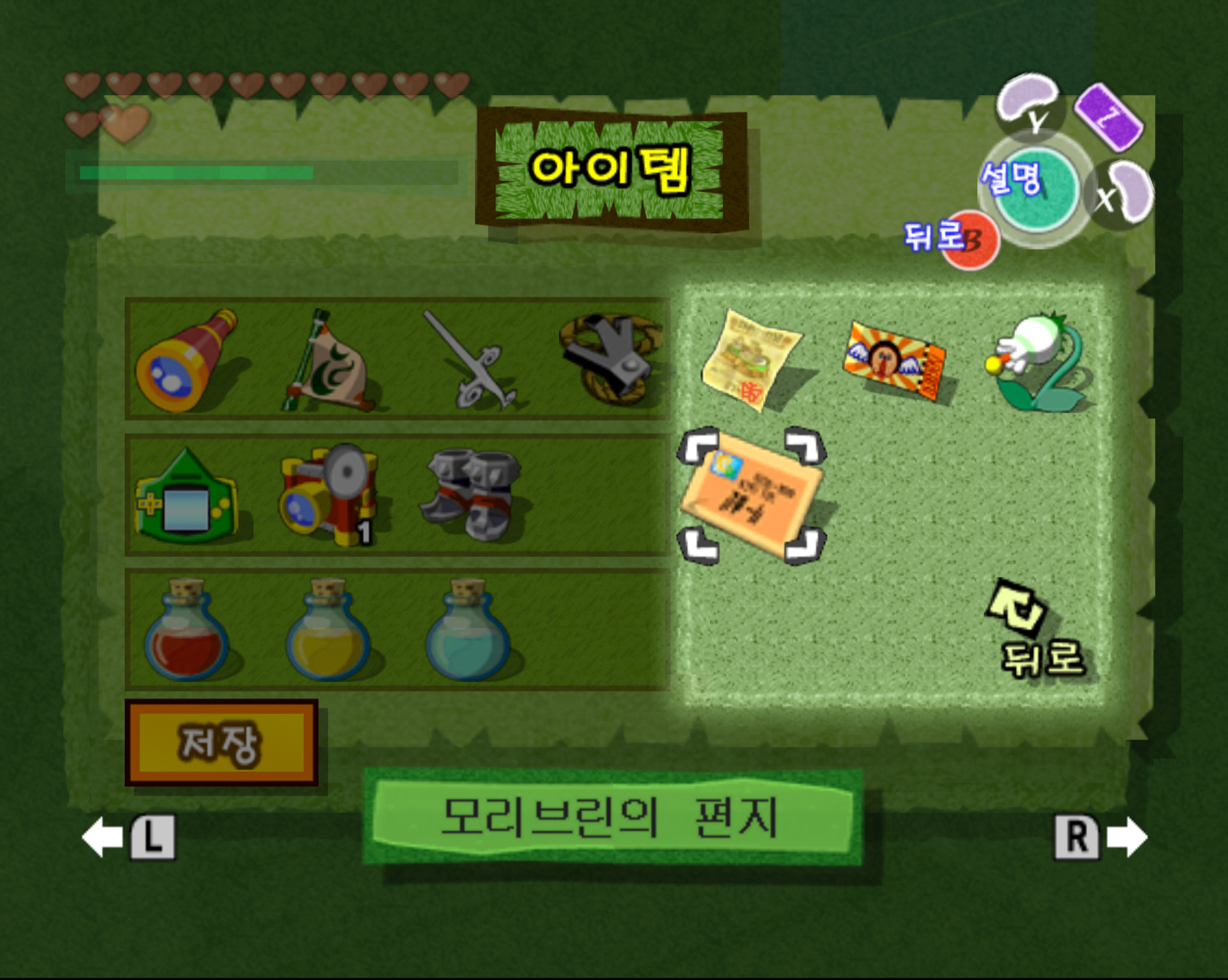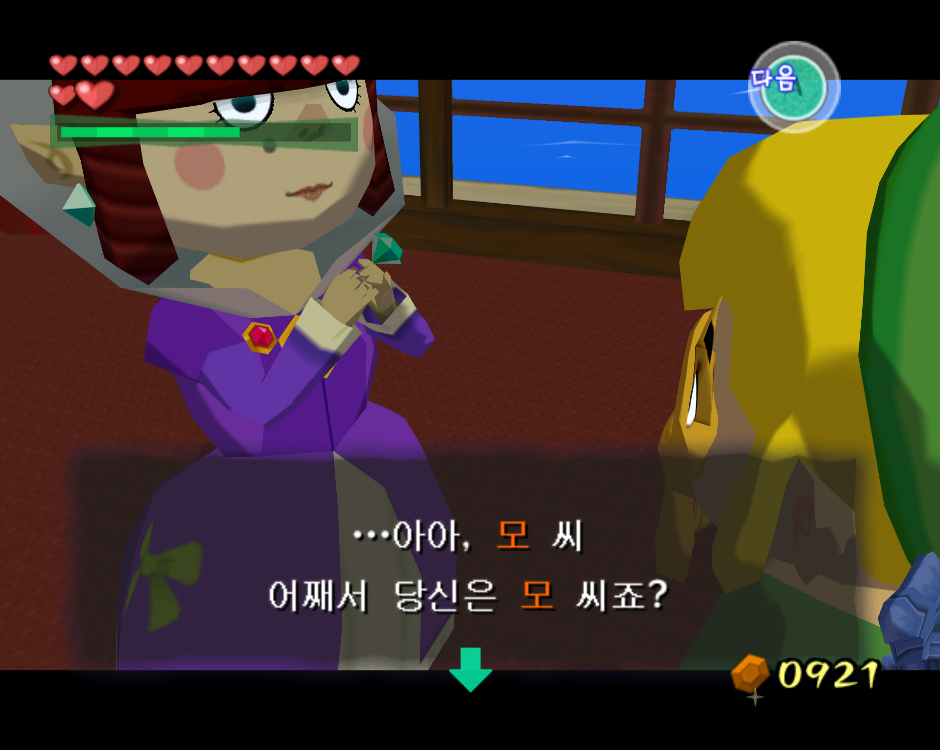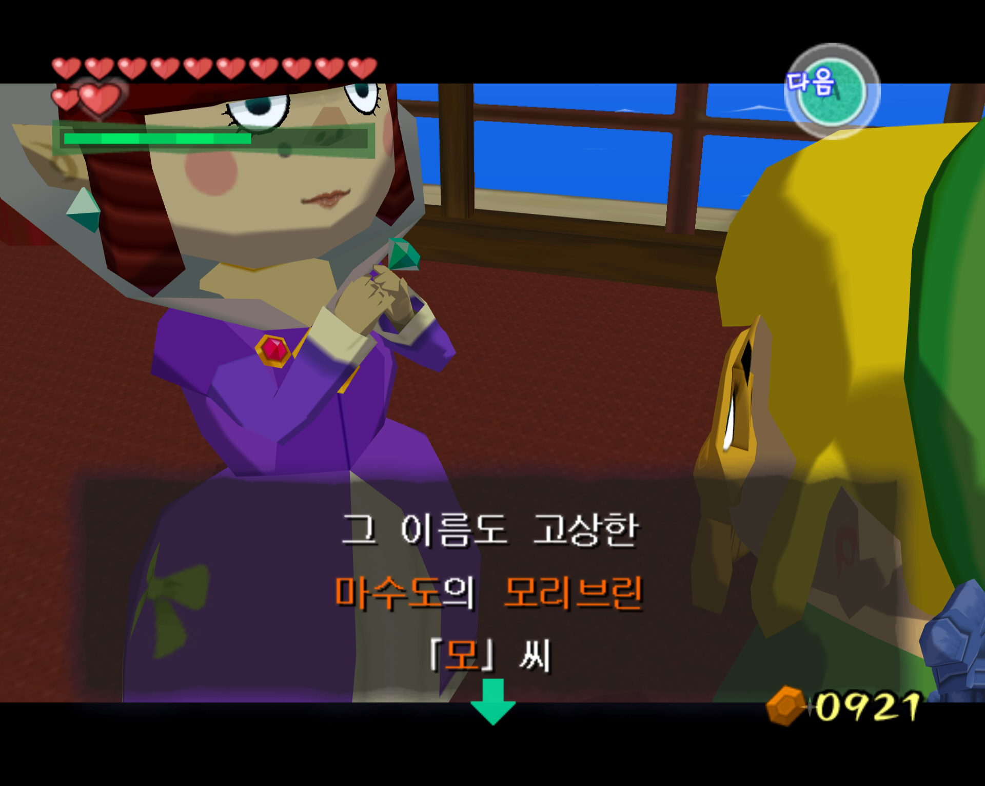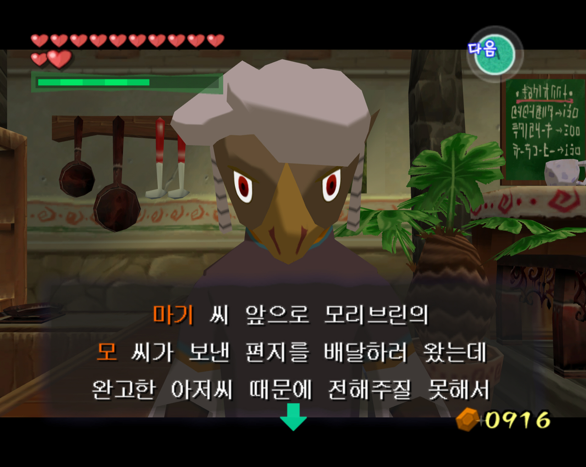5. 다시 부잣집 2층을 가서 추녀 마기에게 배달부에게서 받은 "모"씨의 답장을 사용하면, 주저리주저리 떠들다가 하트 조각 하나를 답례로 링크에게 줍니다.