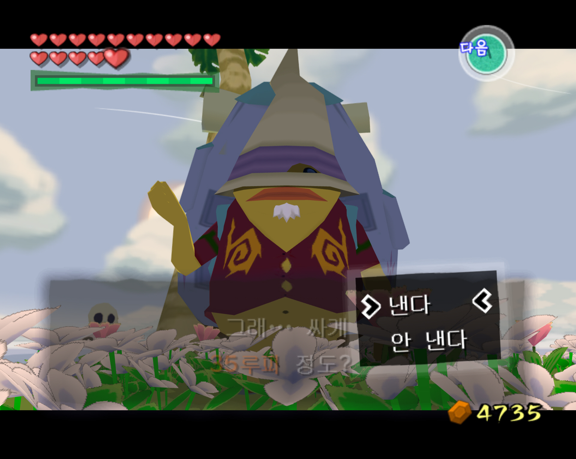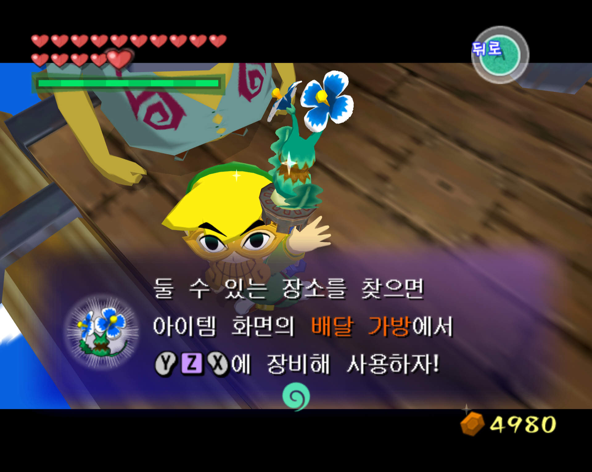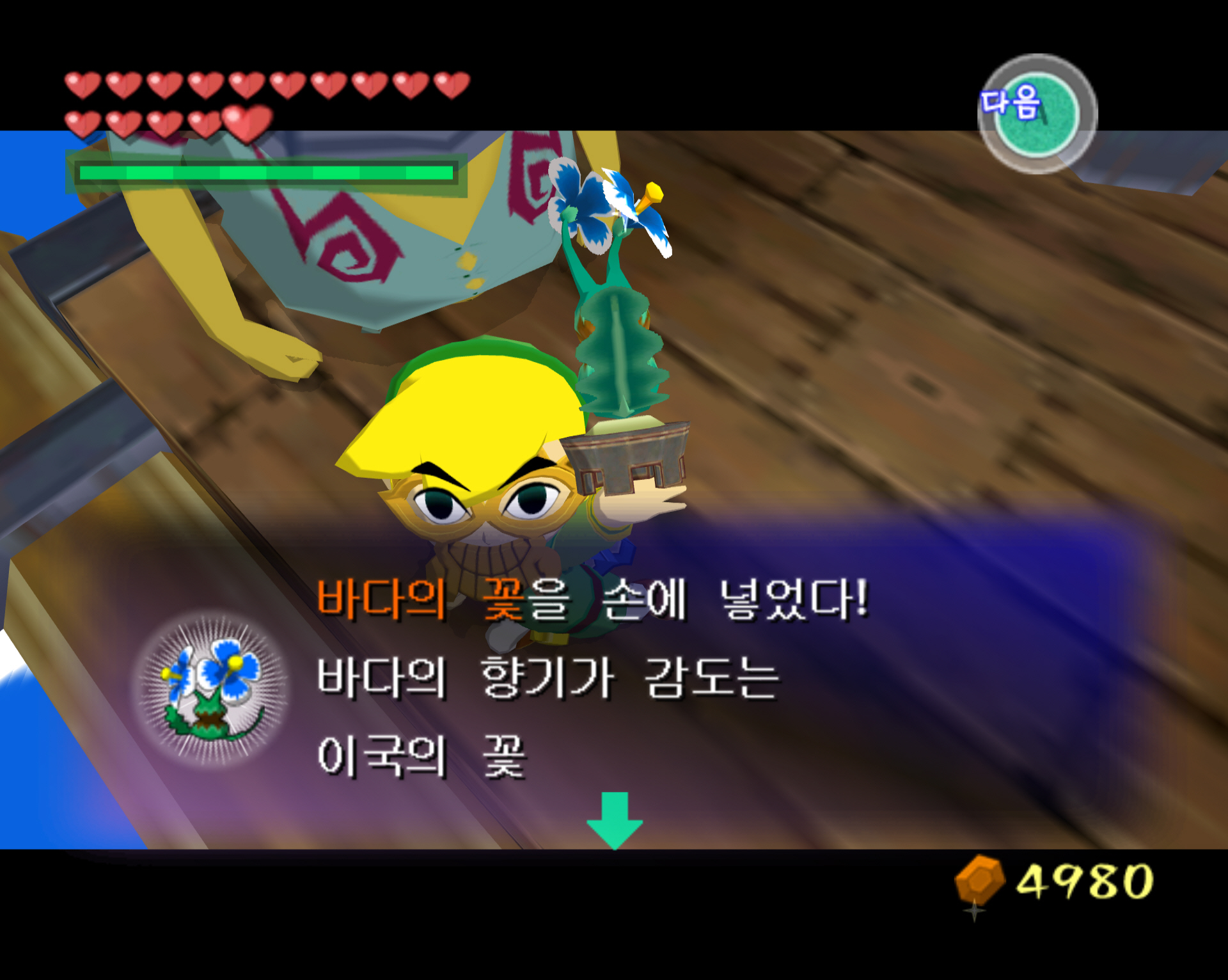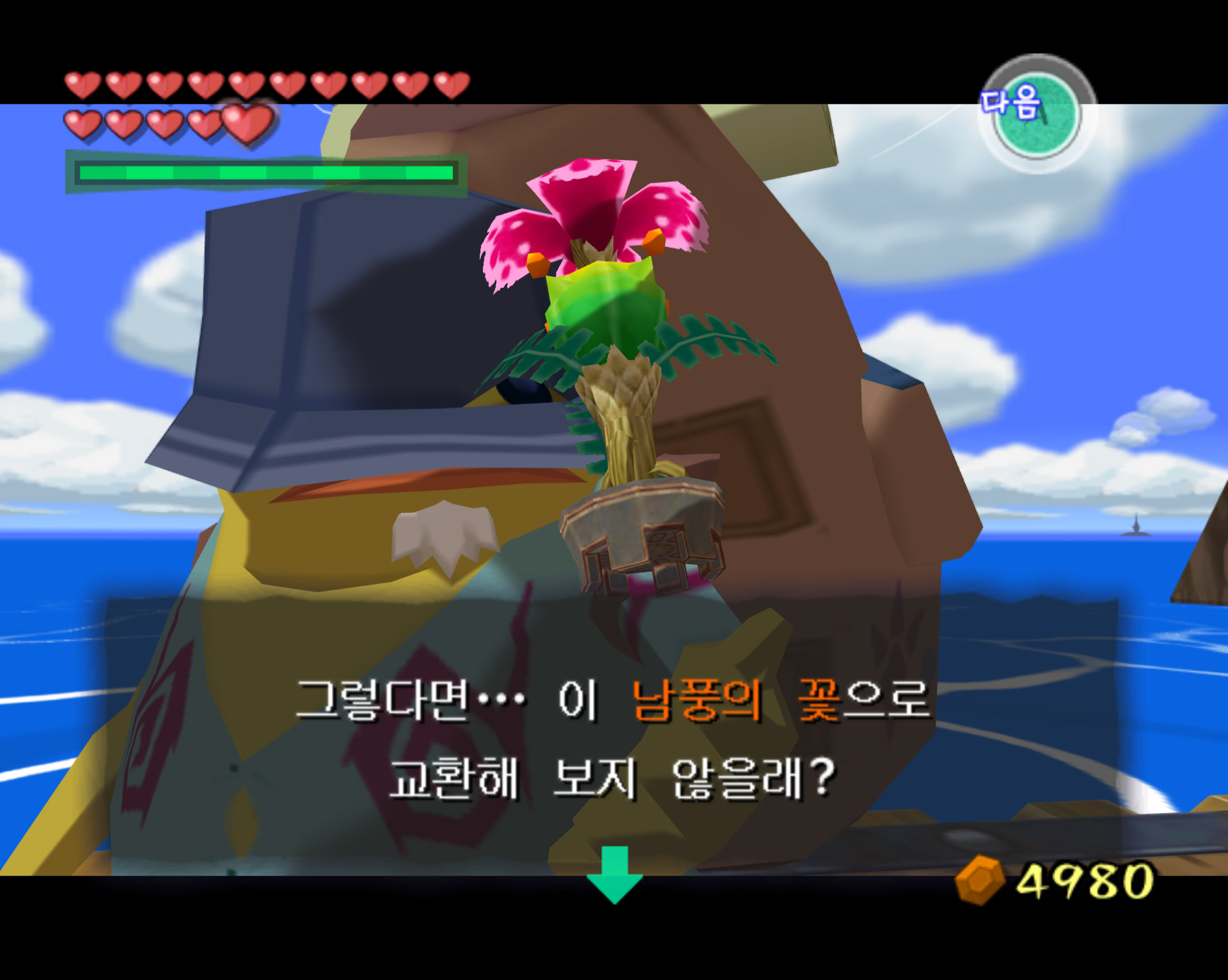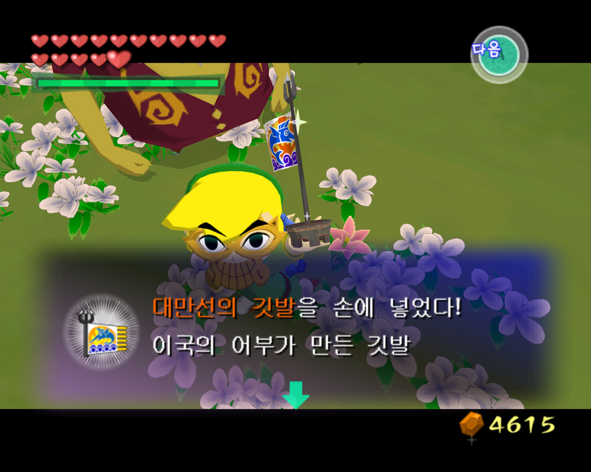 | [돌핀] 젤다의 전설-바람의 지휘봉-행복의 꽃심기 자원봉사 : 100루피 획득 (주황루피)-타우라 섬 (0) | 2025.01.13 |