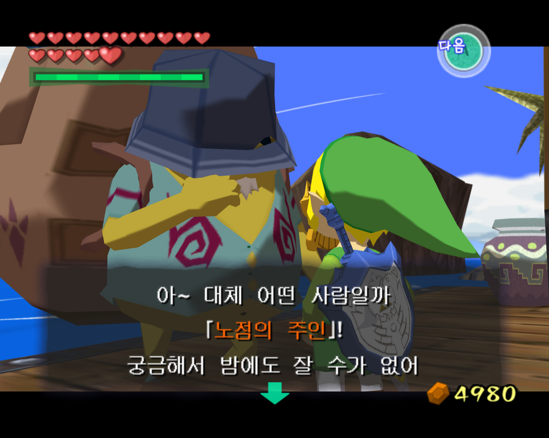 | [돌핀] 젤다의 전설-바람의 지휘봉-우체국 알바의 편지와 용돈, 대지의 신전 공략 완료 후 아무 곳의 우체통에서 수령 (0) | 2025.01.23 |