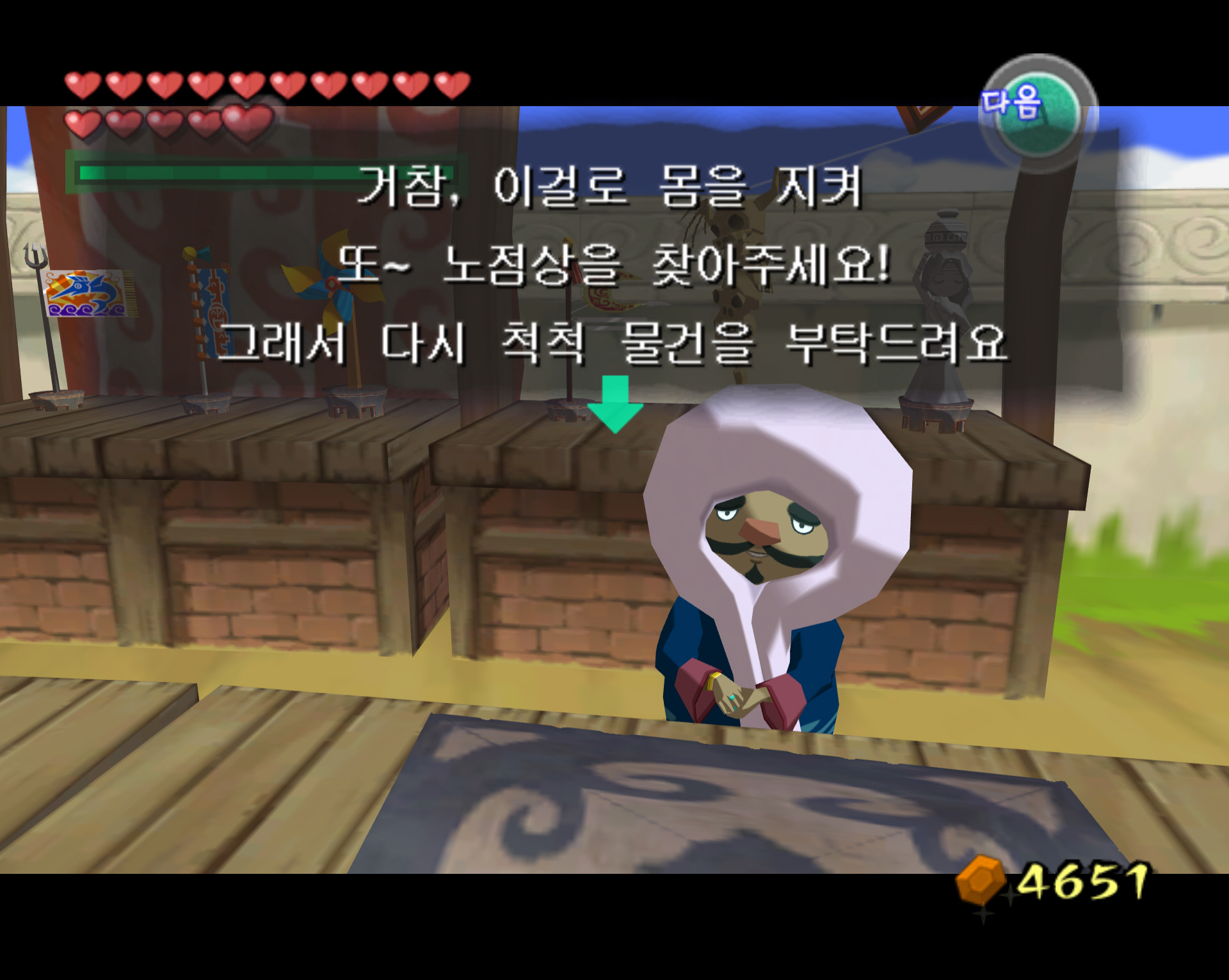 이 이벤트는 타우라섬의 노점상에게서 받게 되며 매직실드 획득과 그 이후에 더 진행하면 하트조각 1개를 얻게 됩니다. 또한 이벤트 진행하면서 물건의 교환에 수수료가 필요하므로 500루피 이상을 가진 상태로 진행하시길 추천드립니다.