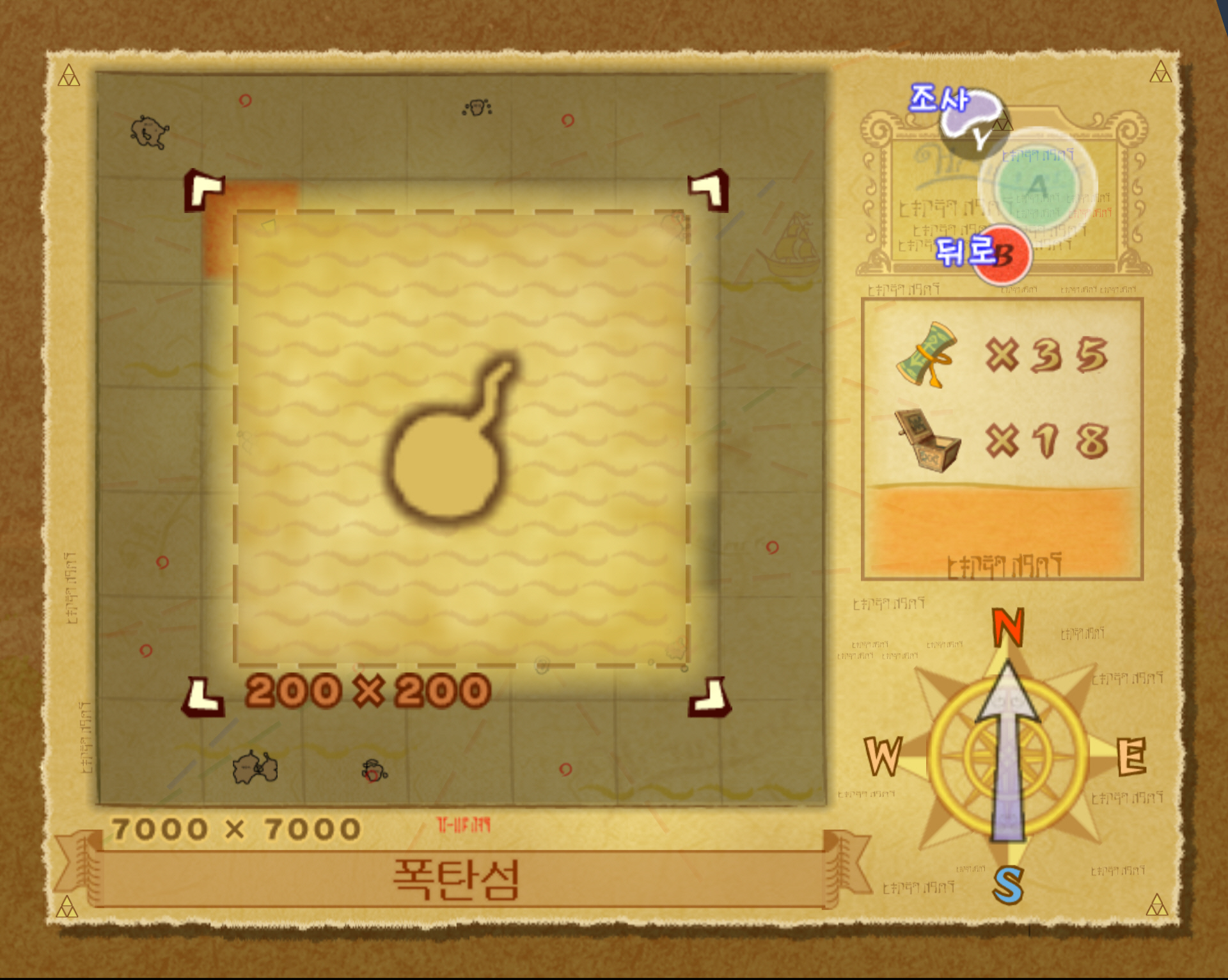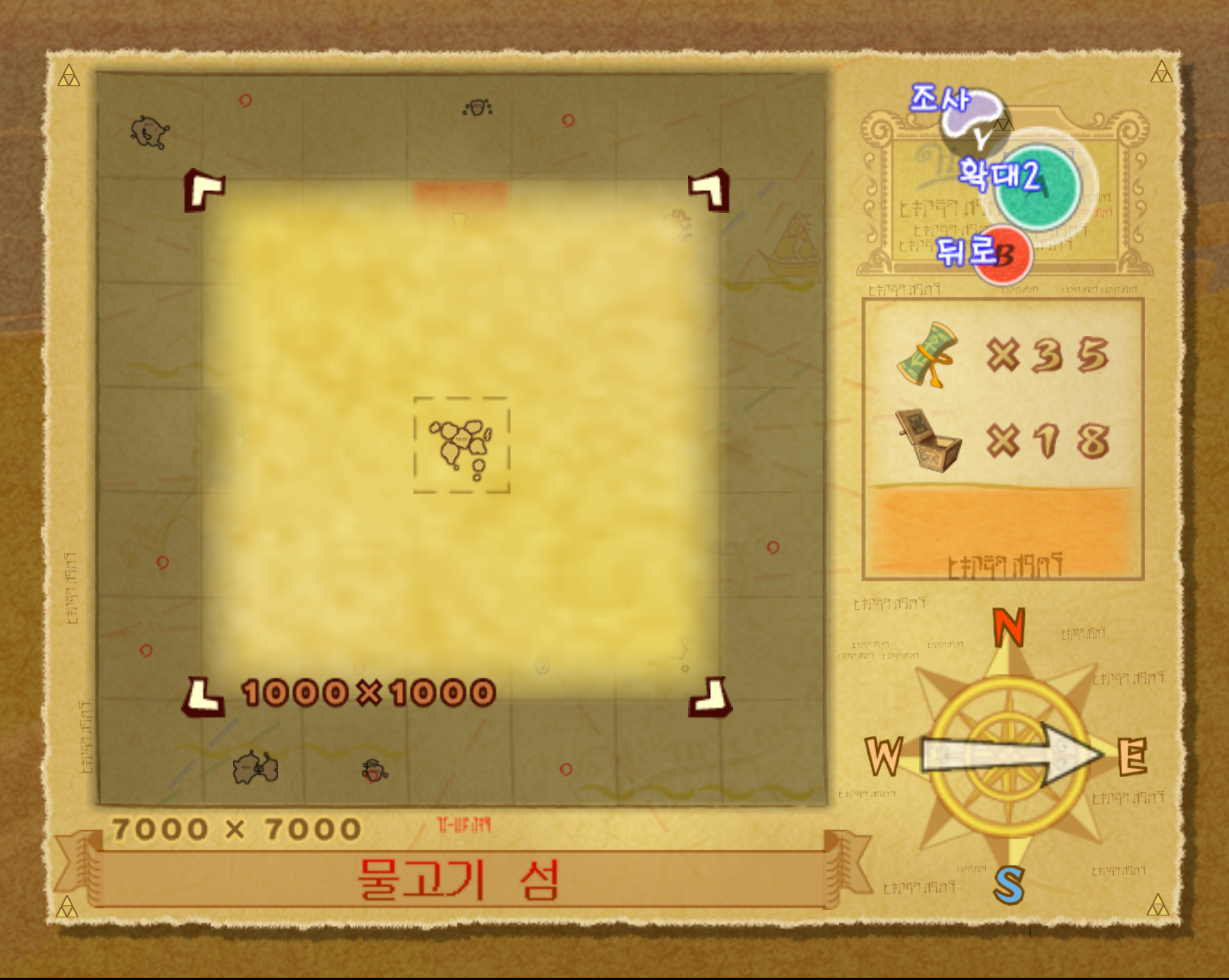 2-1. 물고기 섬은 해도상 좌표 B4에 위치합니다. 물고기 섬은 질풍의 노래로 바로 워프 할 수 있습니다.