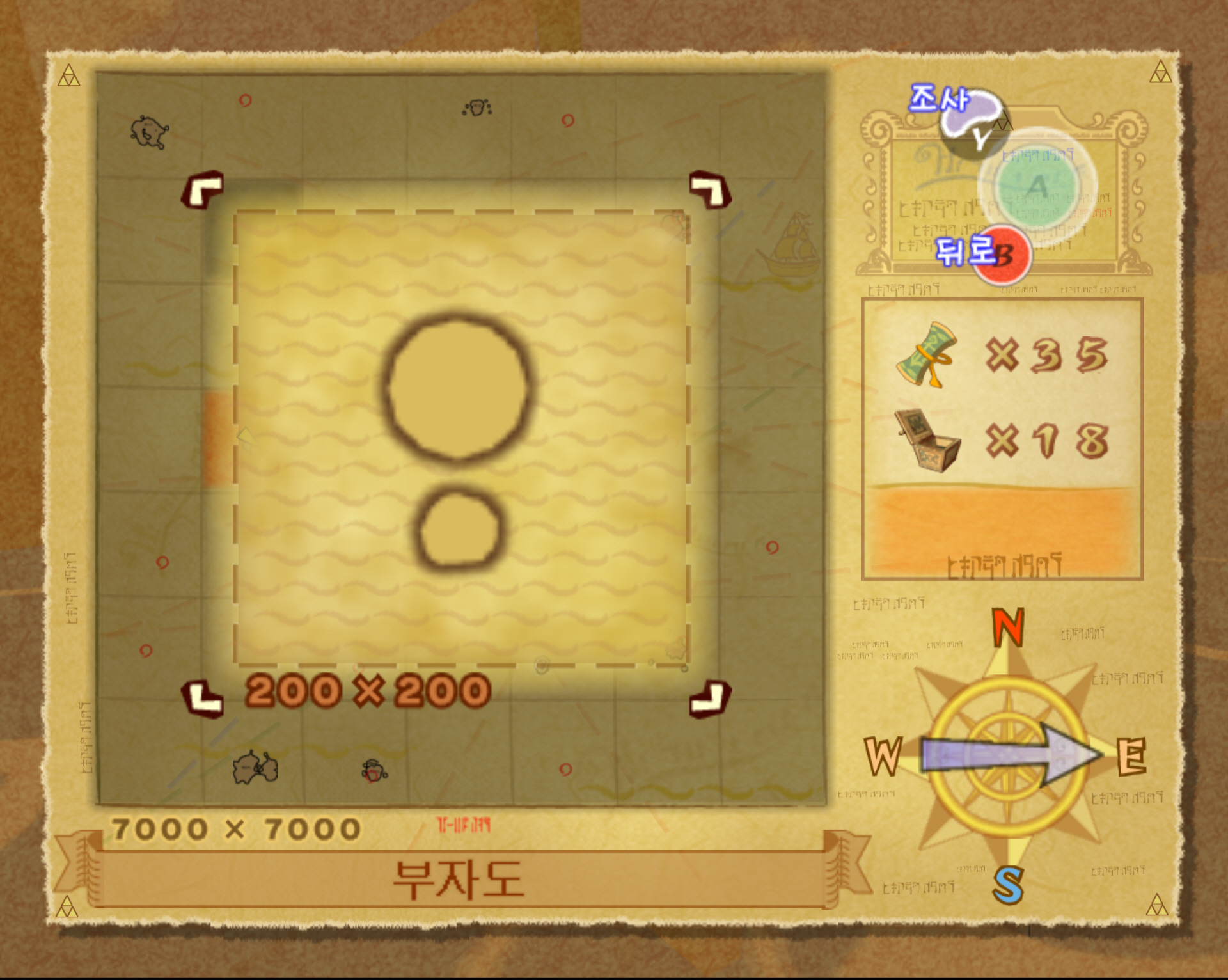 3-1. 부자도는 해도상 좌표 B2에 있습니다. 여기는 질풍의 노래로 바로 워프가 가능하지만 그것은 섬 내부의 요정의 여왕에게 가는 경로입니다. 고로 섬 외부로 가려면 워프가 아니라 가까운 곳으로 워프 해서 항해로 가야 합니다. 물고기 섬에서 위로 두 칸이니 그냥 바로 닻을 올려서 진행합니다.
