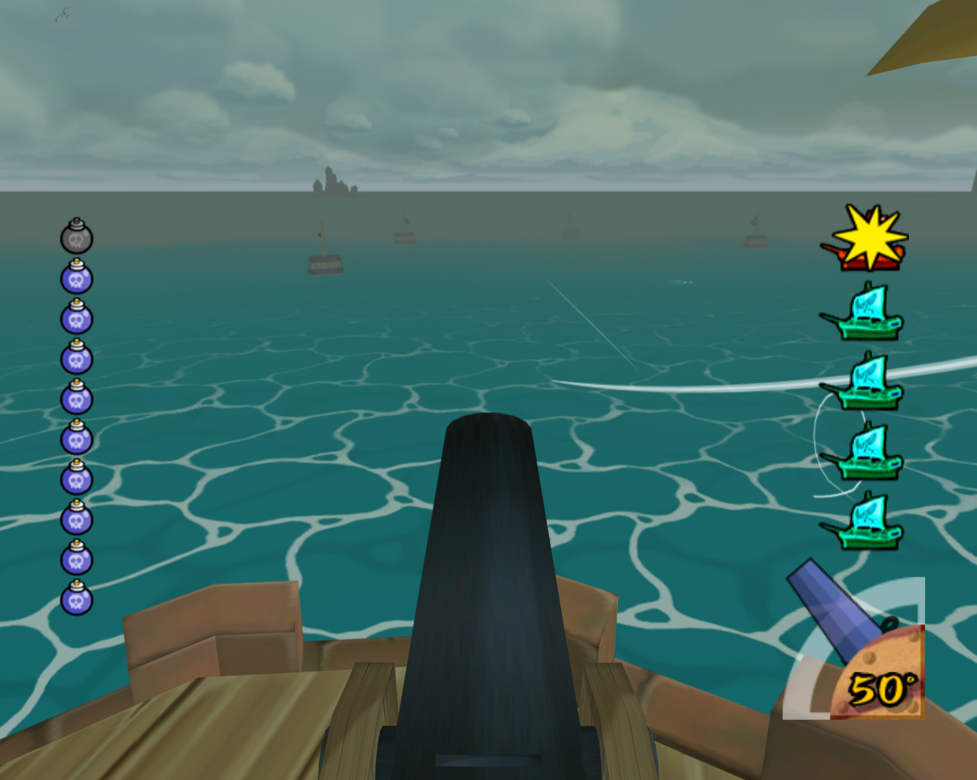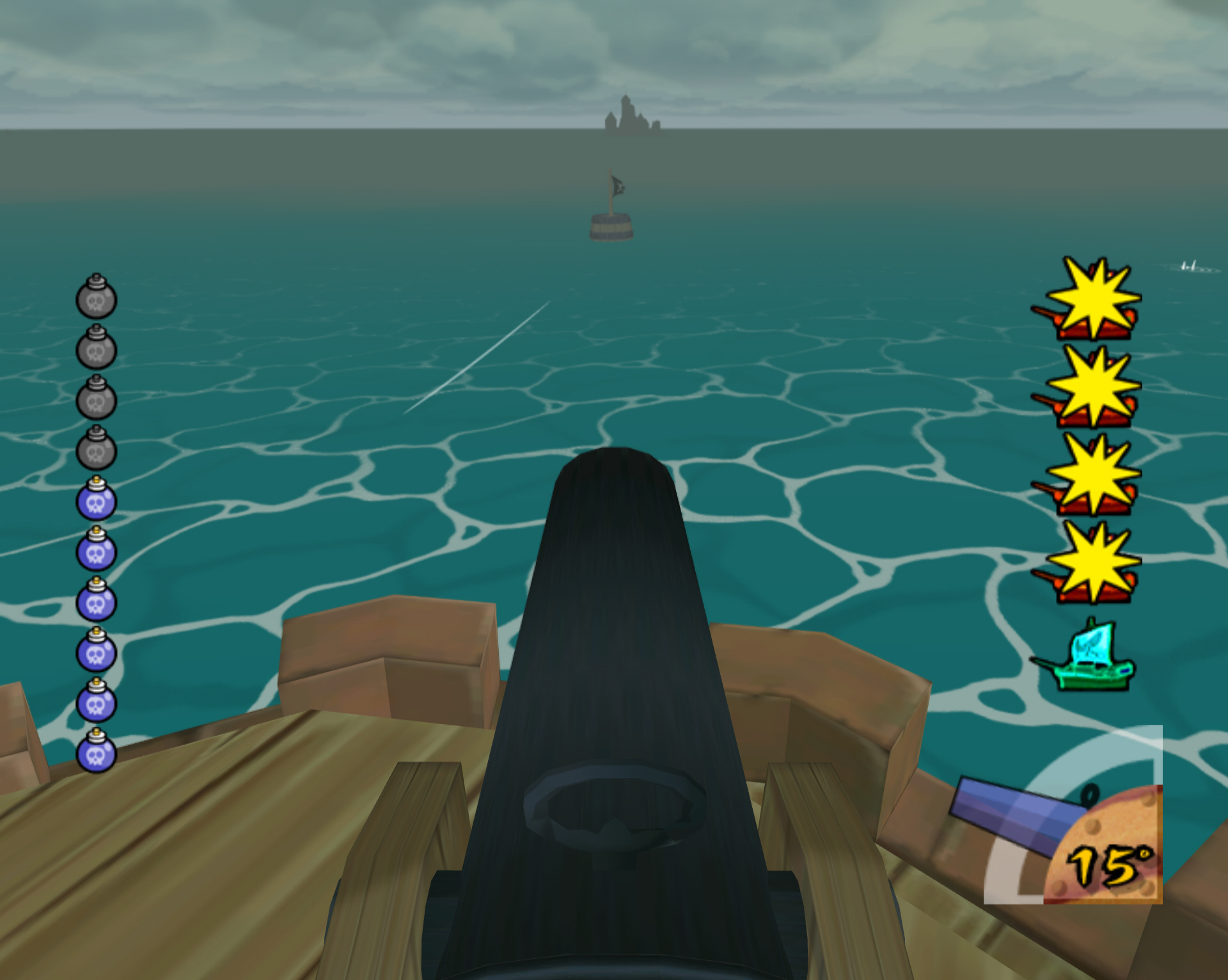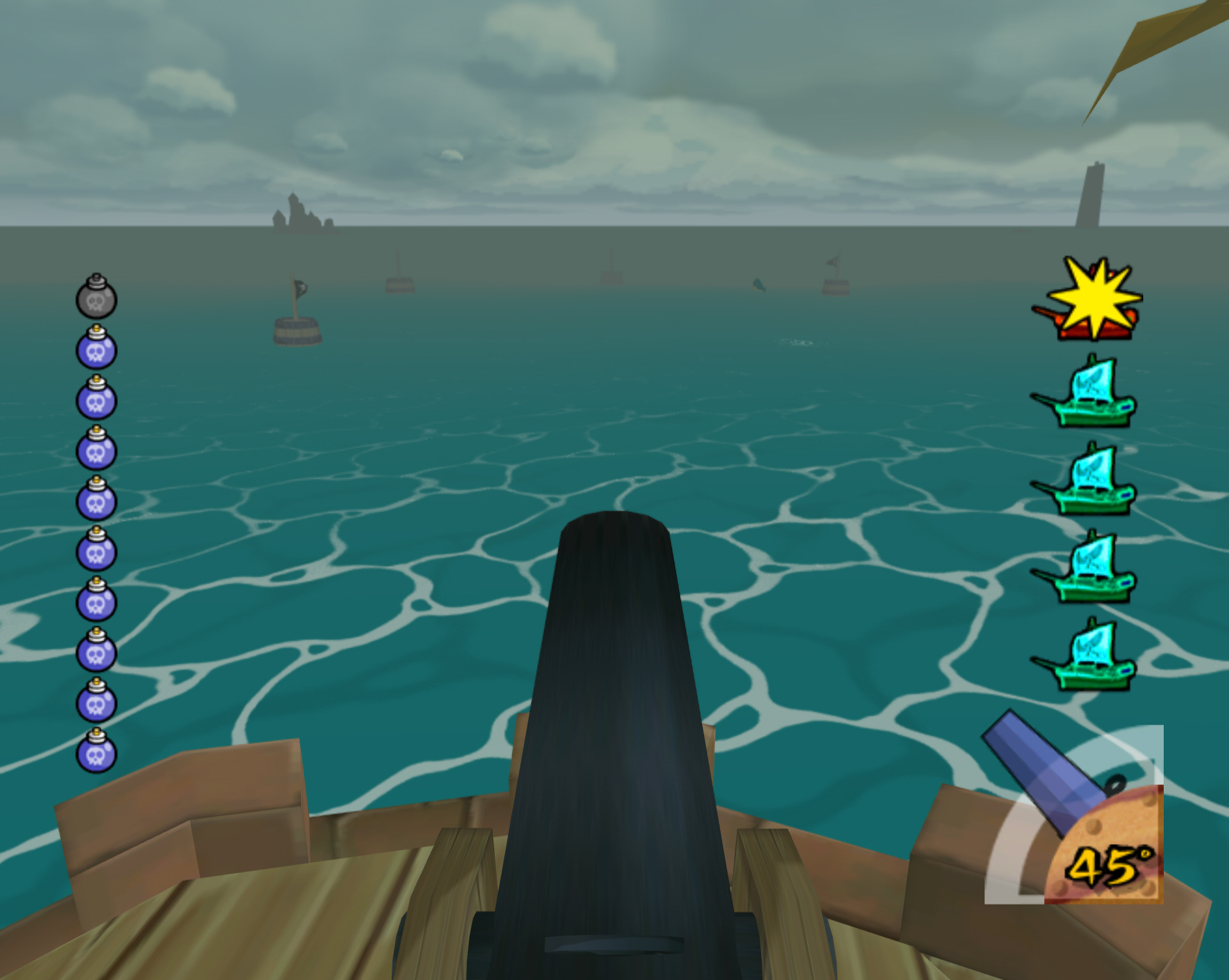 게임을 요약하면 총 10발의 포탄이 주어지고, 맞추어야 할 오크통은 총 5개가 등장합니다. 다섯 개의 등장위치 및 거리는 무작위 입니다만 몇 번 해본 결과 각도는 제일 먼 것이 50도, 가까운 것이 15도입니다. 그리고 각 오크통간 각도는 5도씩 차이가 납니다. 고로 엉뚱한 각도 고르지 마시고 50도, 45도, 40도, 35도 순으로 해서 최하 15도까지 오크통의 거리를 계산해서 포탄을 쏘면 됩니다. 해보면 대충 감 오니 너무 어려워하지 마시고 도전해 보세요. 아 참고로 다른 공략 사이트 보니까 영문판은 이 각도가 좀 다른 것 같더군요. 저는 일본판 베이스 한글 패치 버전을 플레이 중입니다.