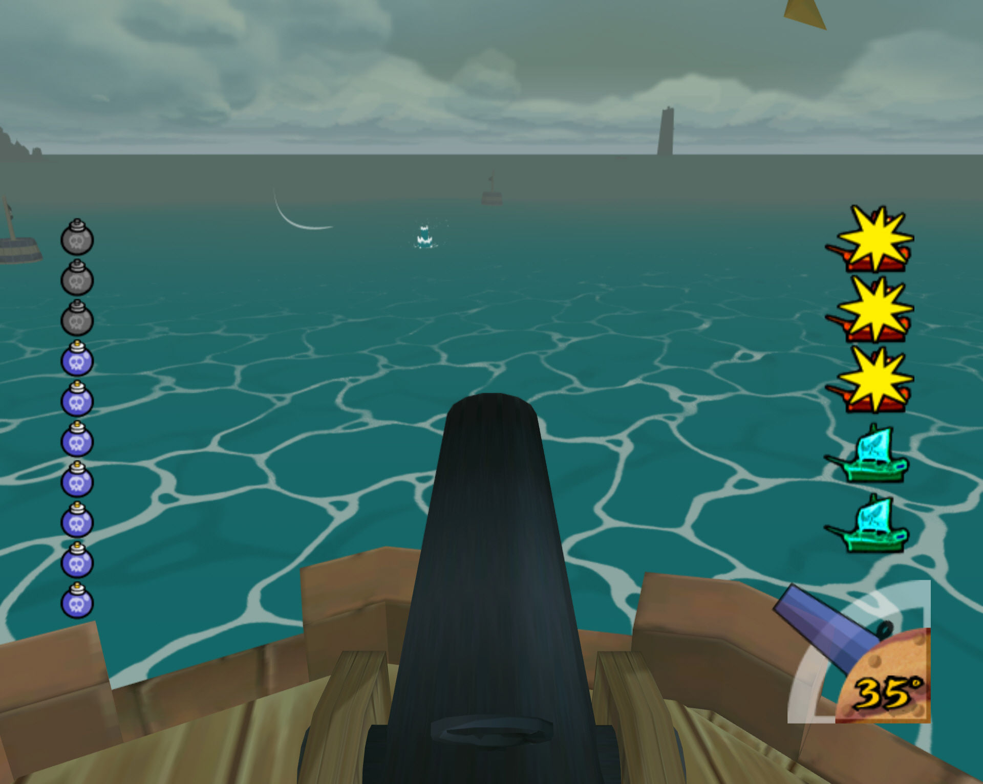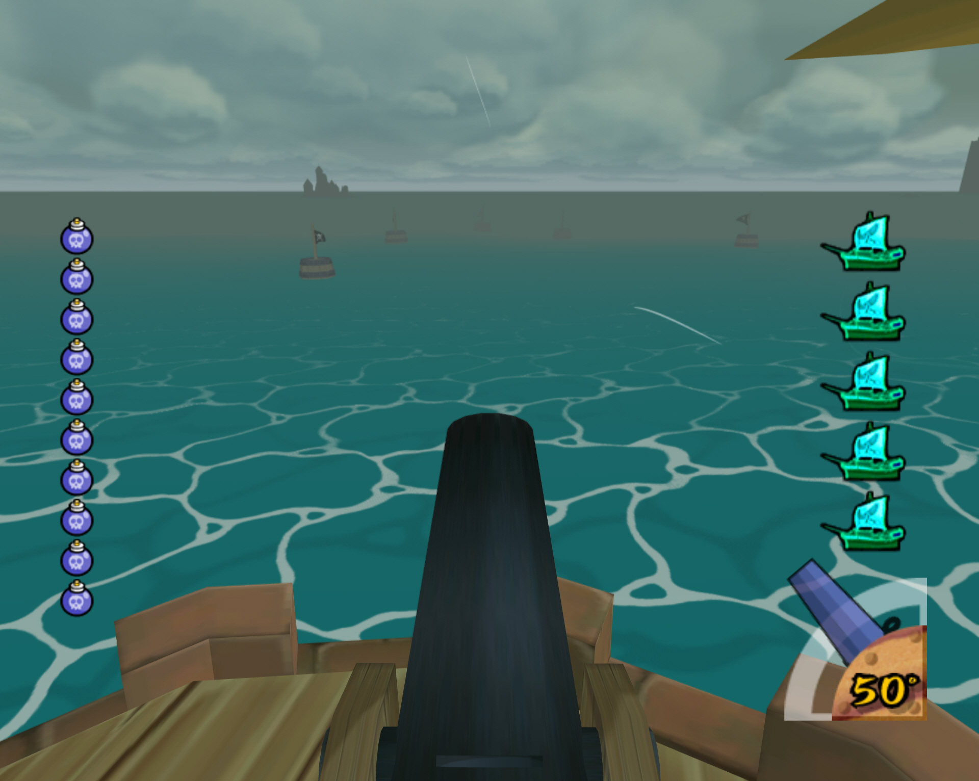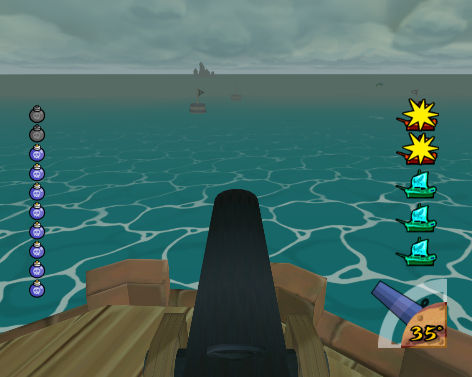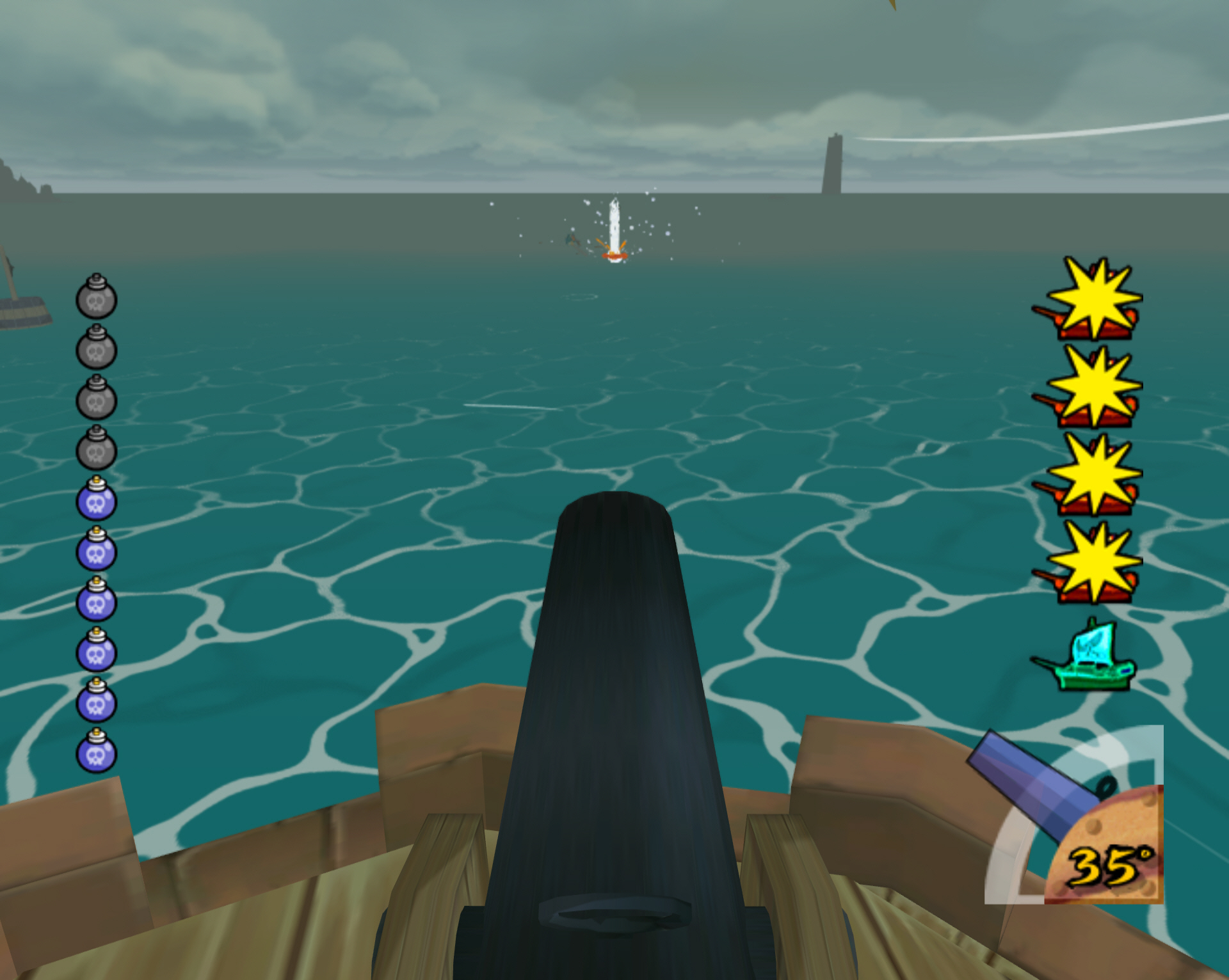 게임을 요약하면 총 10발의 포탄이 주어지고, 맞추어야 할 오크통은 총 5개가 등장합니다. 다섯 개의 등장위치 및 거리는 무작위 입니다만 몇 번 해본 결과 각도는 제일 먼 것이 50도, 가까운 것이 15도입니다. 그리고 각 오크통간 각도는 5도씩 차이가 납니다. 고로 엉뚱한 각도 고르지 마시고 50도, 45도, 40도, 35도 순으로 해서 최하 15도까지 오크통의 거리를 계산해서 포탄을 쏘면 됩니다. 해보면 대충 감 오니 너무 어려워하지 마시고 도전해 보세요. 아 참고로 다른 공략 사이트 보니까 영문판은 이 각도가 좀 다른 것 같더군요. 저는 일본판 베이스 한글 패치 버전을 플레이 중입니다.