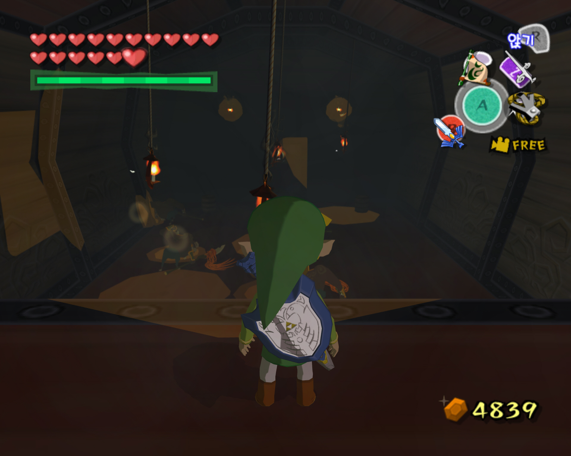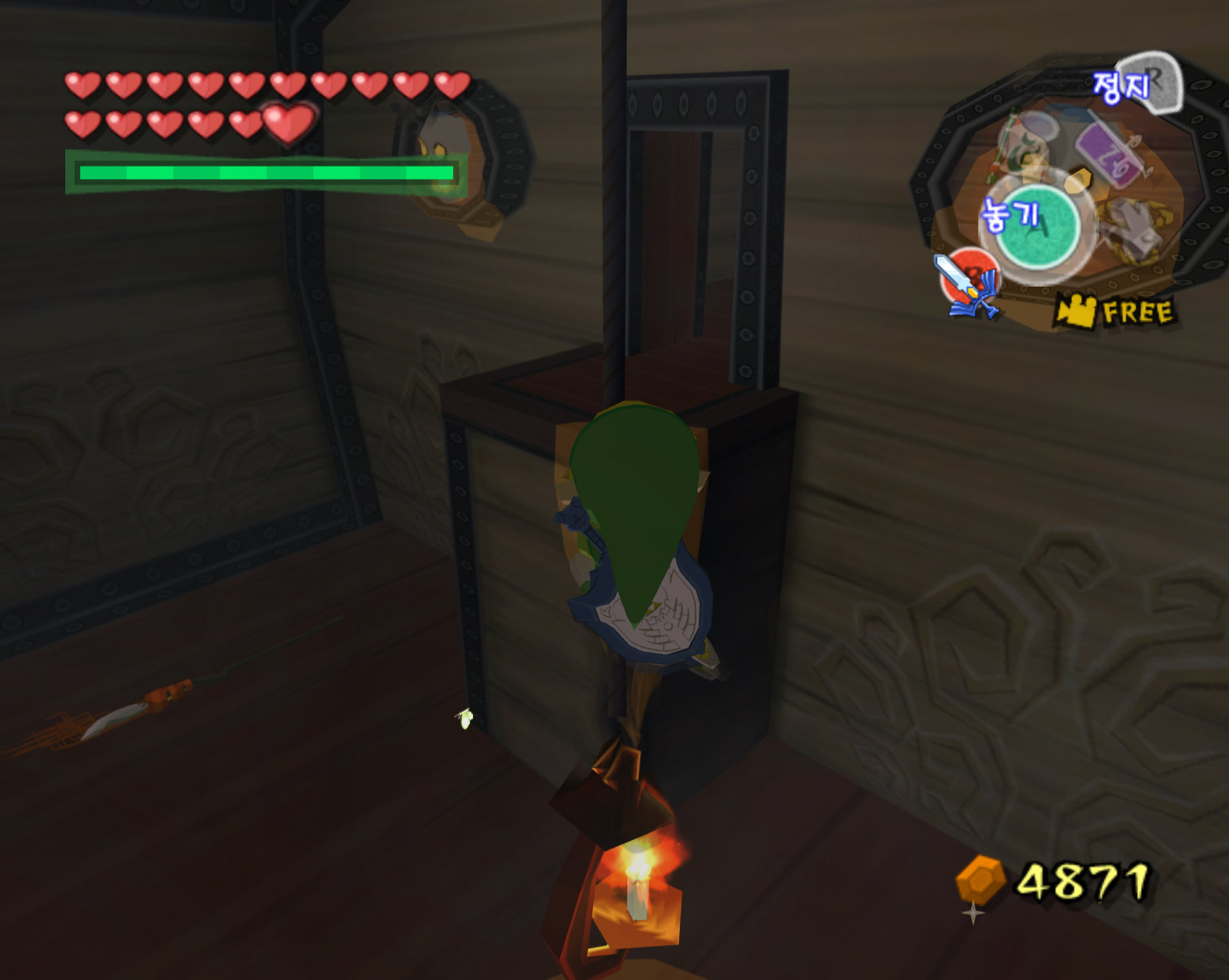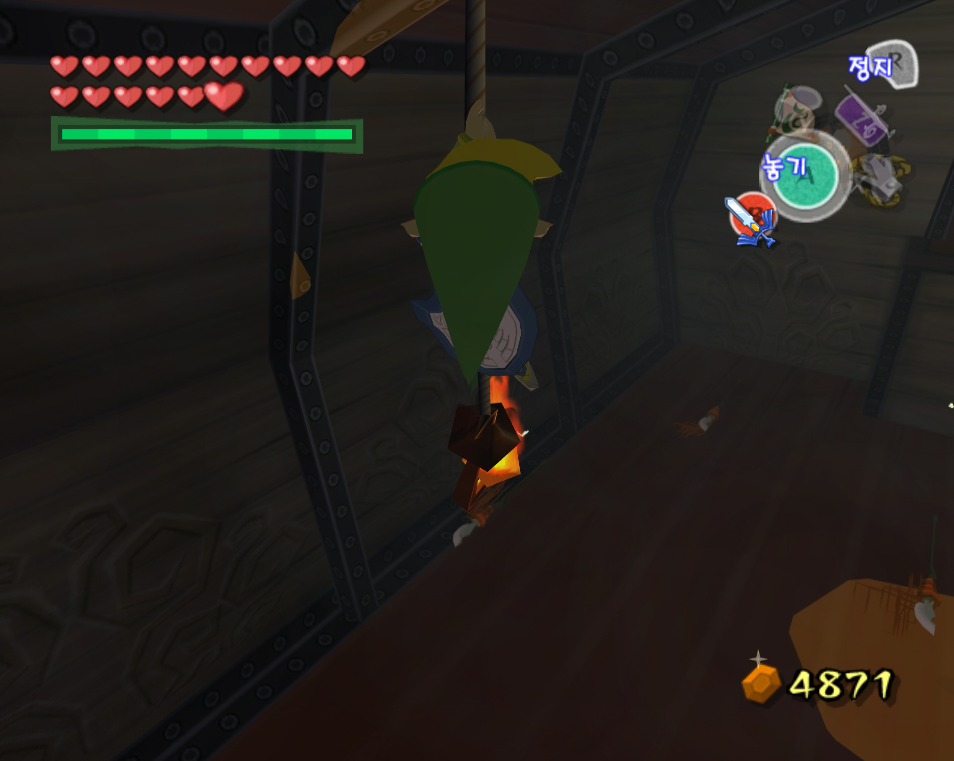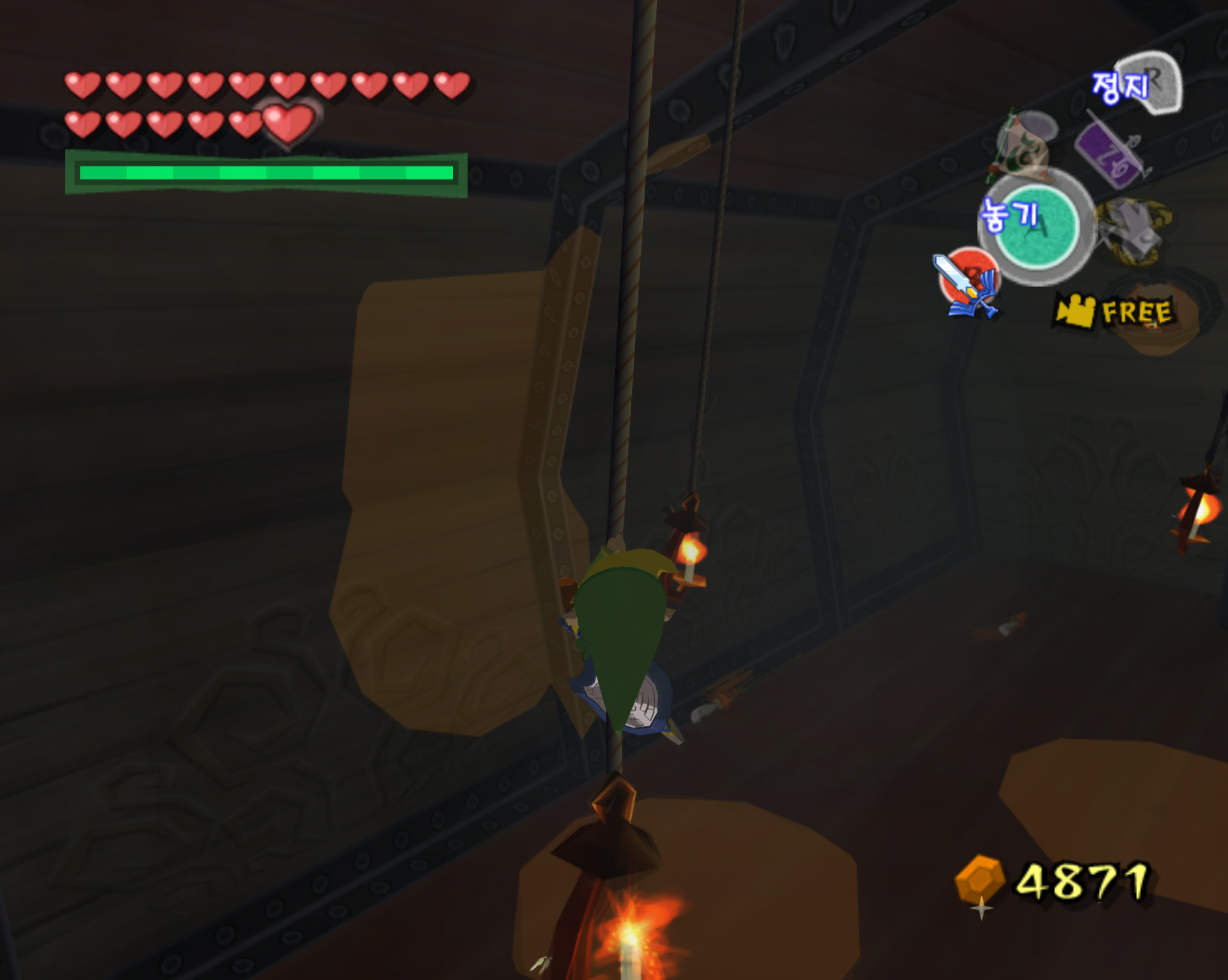 다만 저는 컨트롤이 딸려서 적들을 모두 죽이고 보물 상자 방으로 줄 타고 넘어갔습니다. 대신 퇴장은 줄 탈필요 없이 바닥으로 내려와 반대편의 사다리를 타고 퇴장을 했죠.
