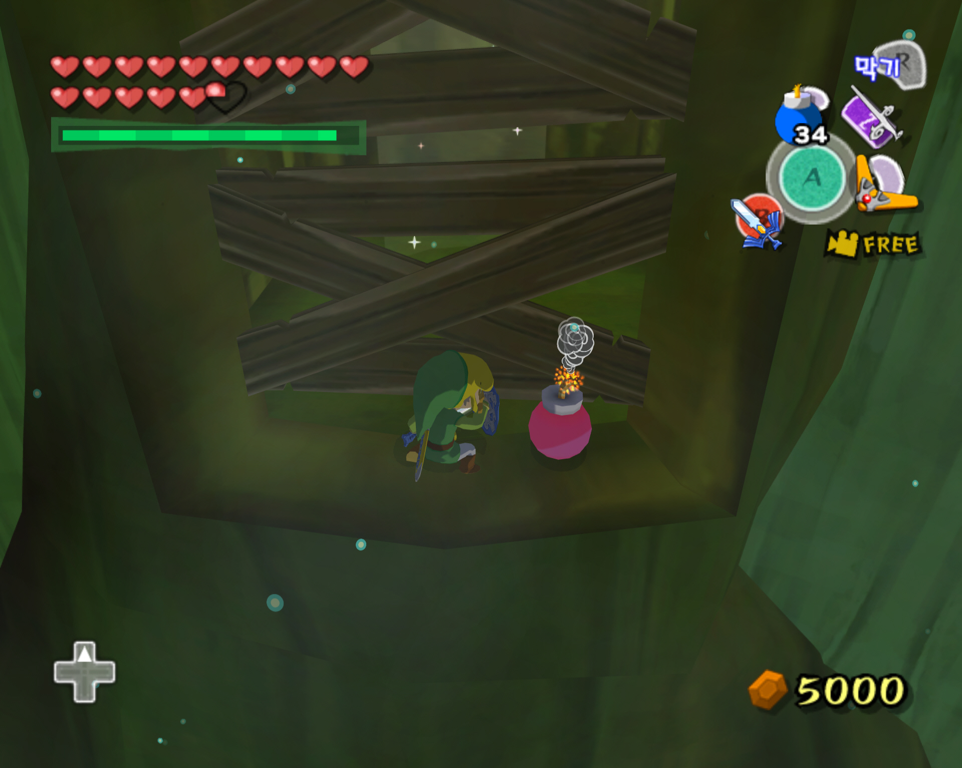 판자로 막힌 저 부분까지 주욱 일직선으로 진행하세요. 직선으로 점프만 잘하면 됩니다.