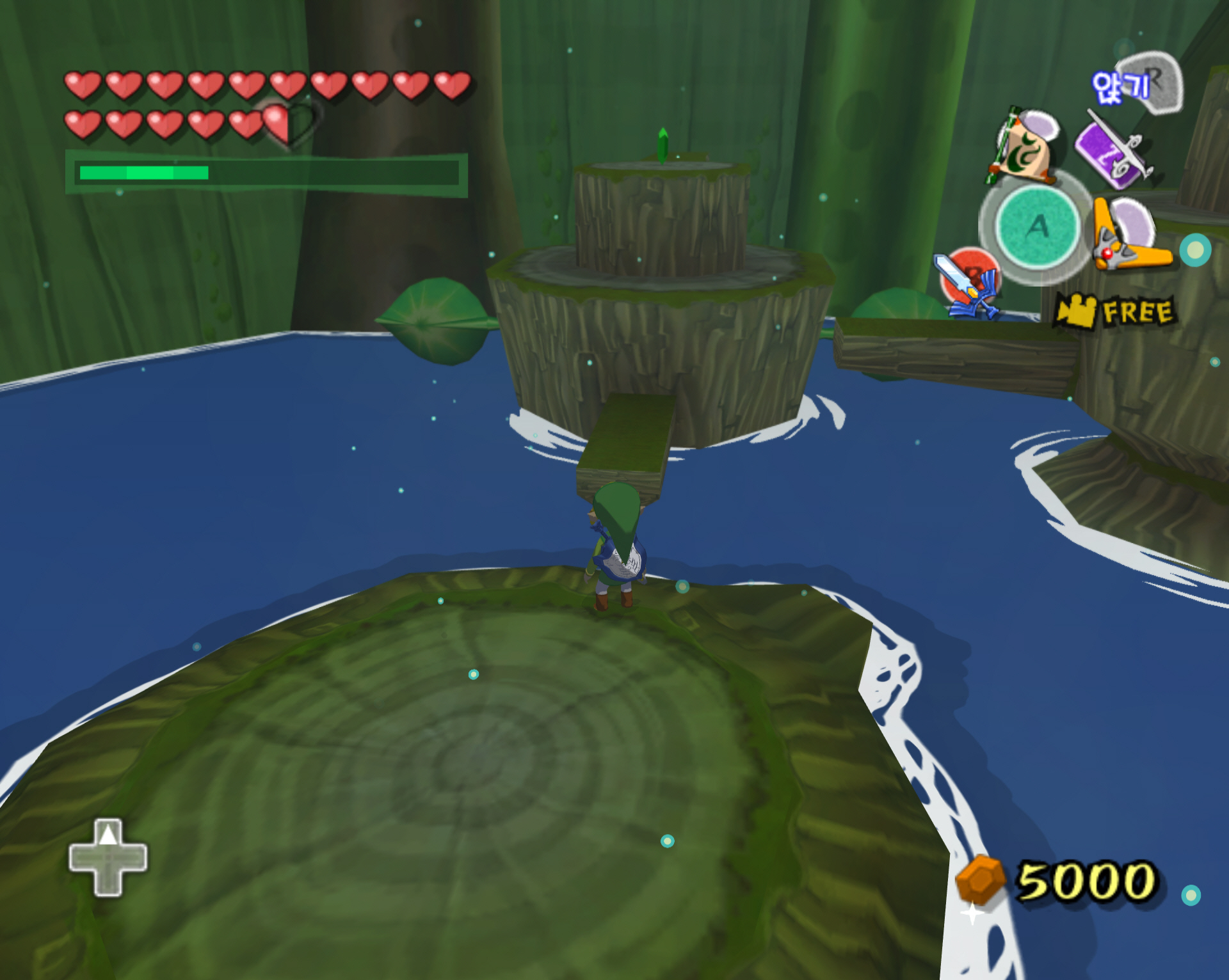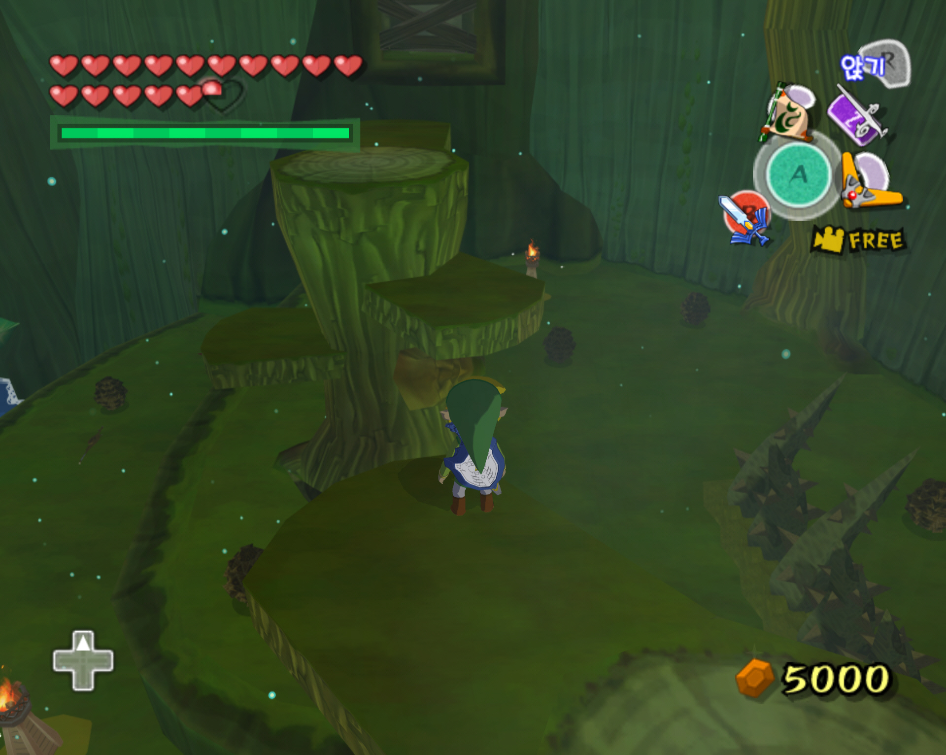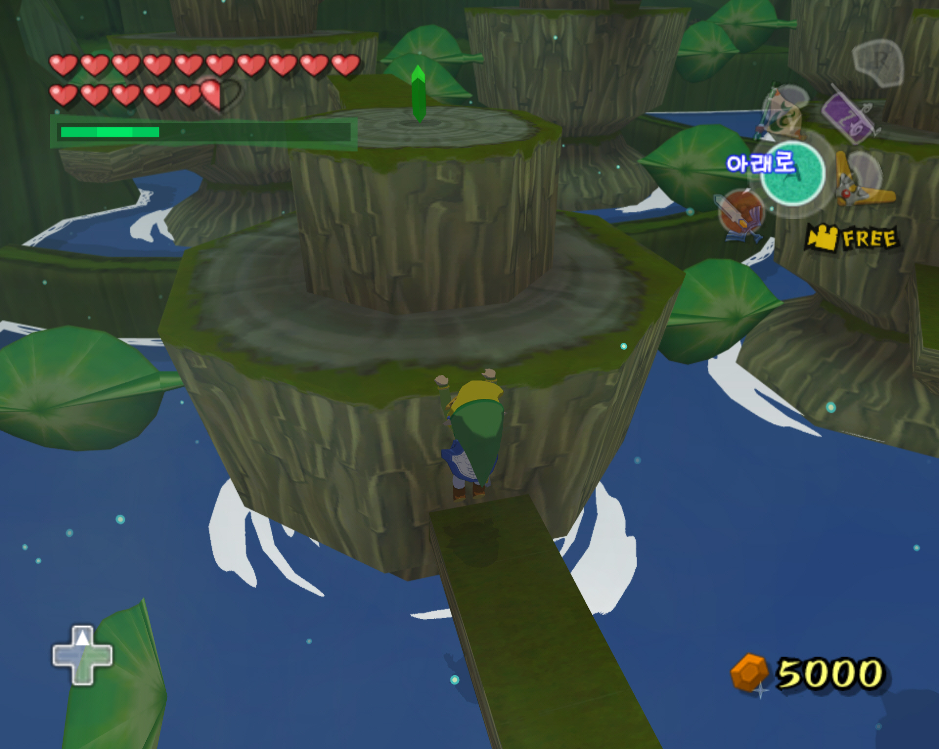 다시 아까의 점핑 봉우리로 돌아가서 나무 둥치로 올라갑니다. 그리고 앞으로 진행하면 됩니다.