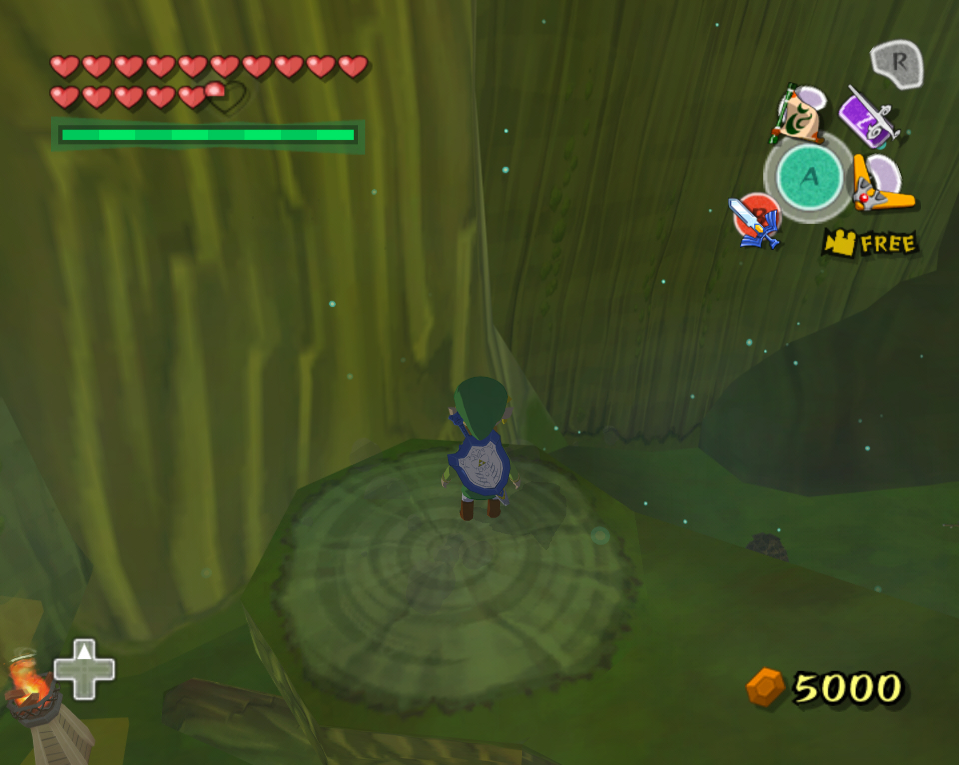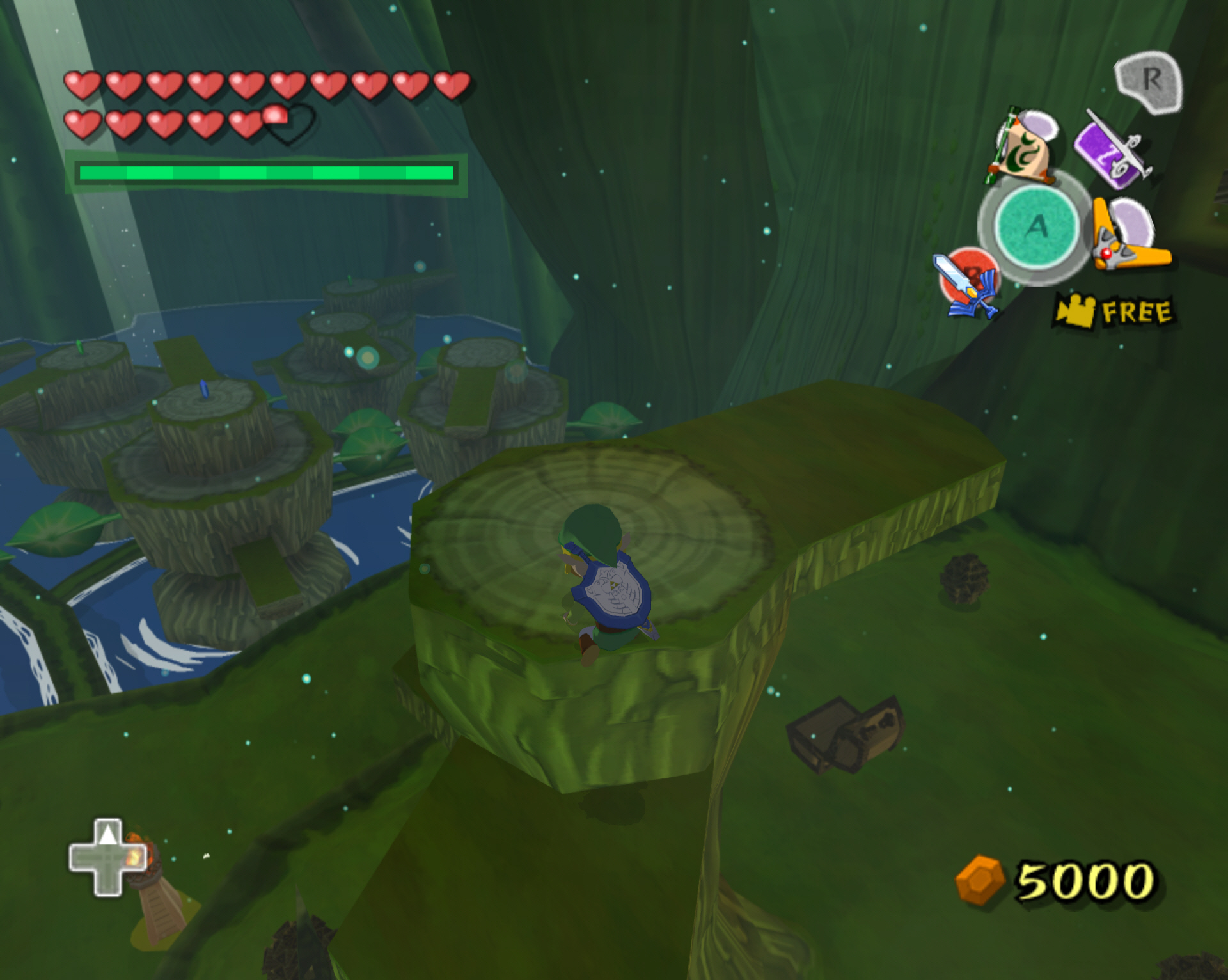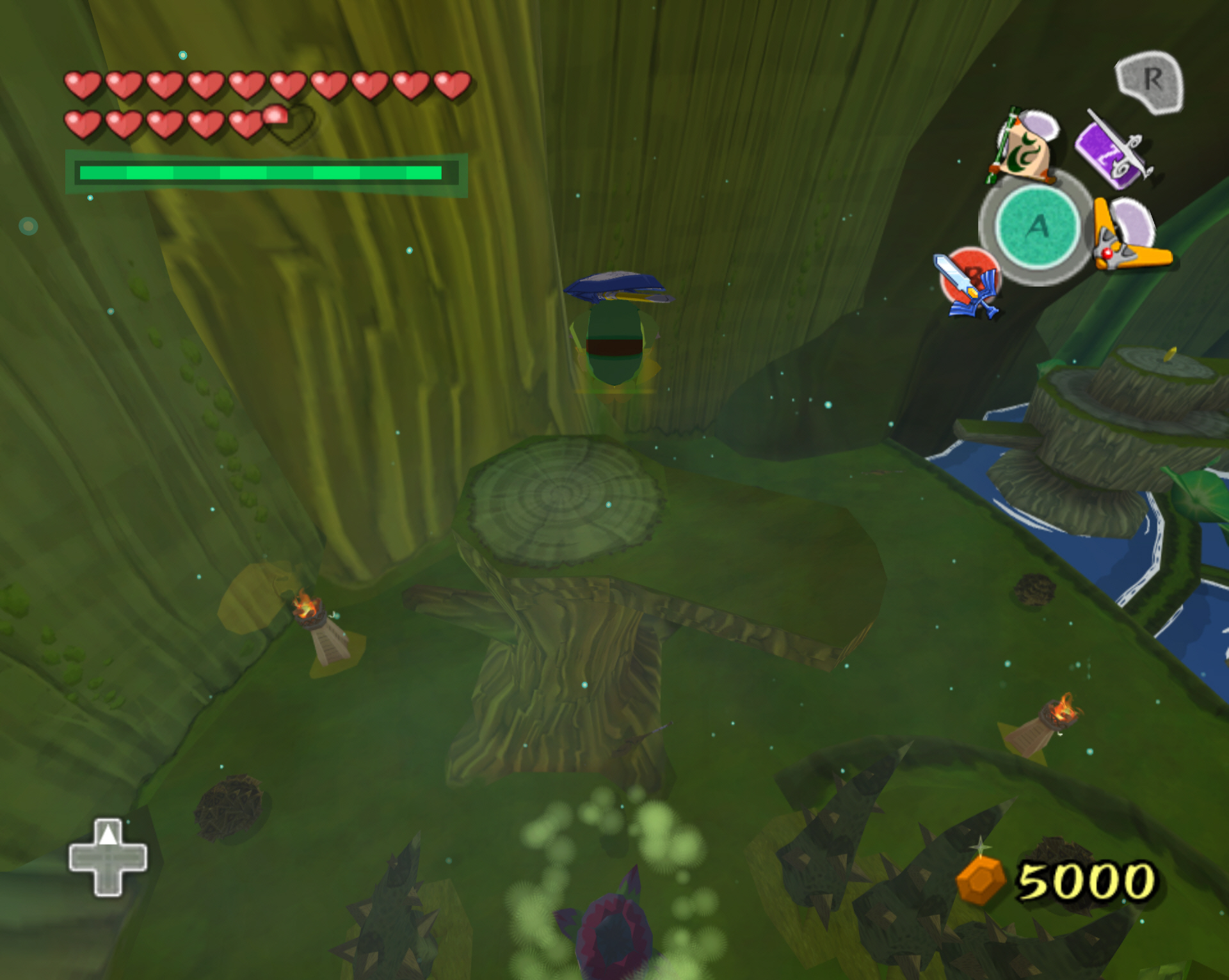 다시 아까의 점핑 봉우리로 돌아가서 나무 둥치로 올라갑니다. 그리고 앞으로 진행하면 됩니다.