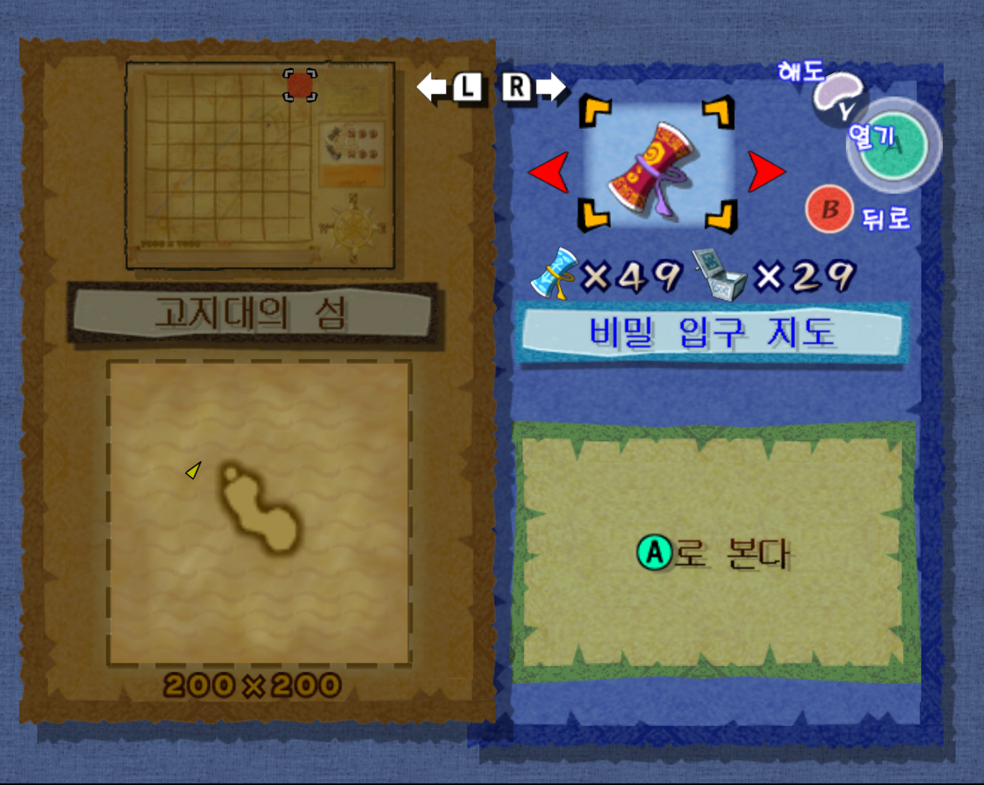 돌핀-젤다의 전설-바람의 지휘봉-보물지도 13번 탐사완료 (위치 고지대의 섬, 보물 : 비밀 지도)