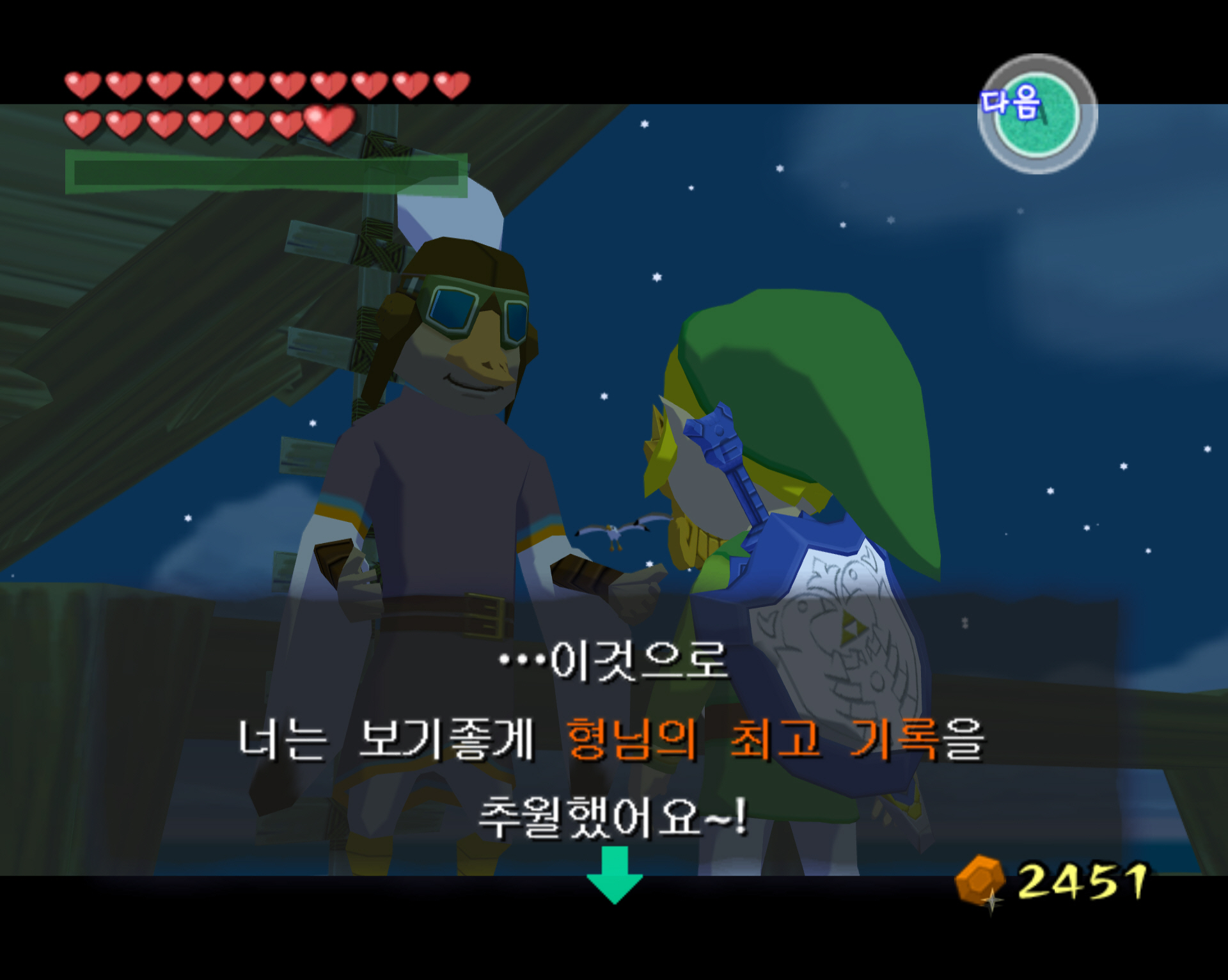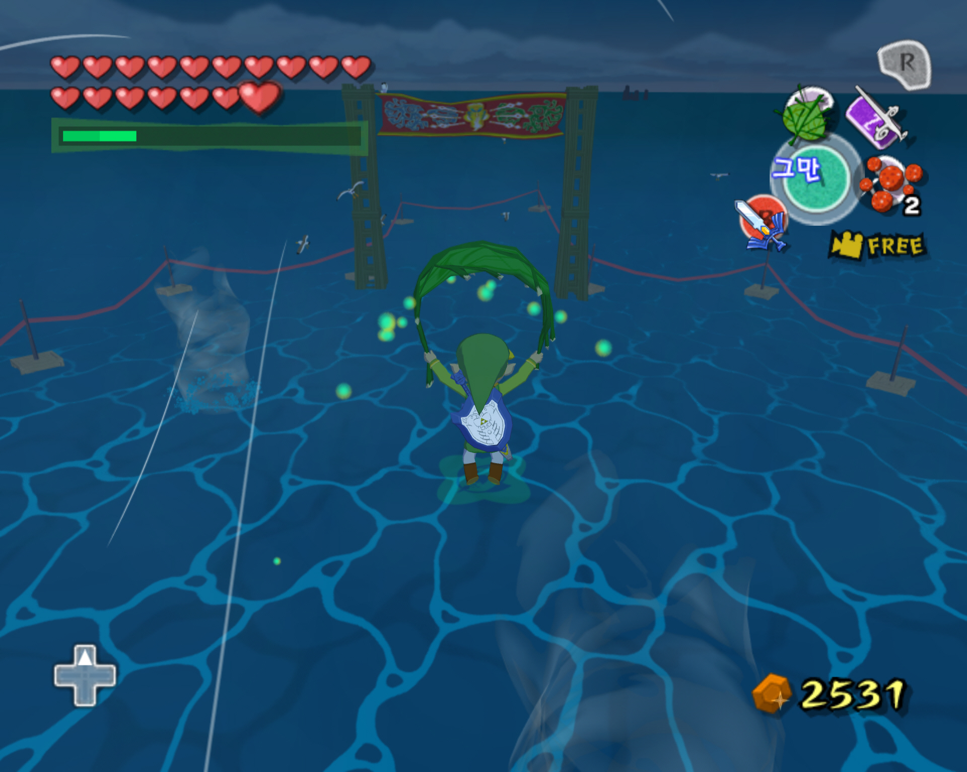 돌핀에서 바람의 택트 진행 중 GBA와의 연결 (팅클 조종기 사용)