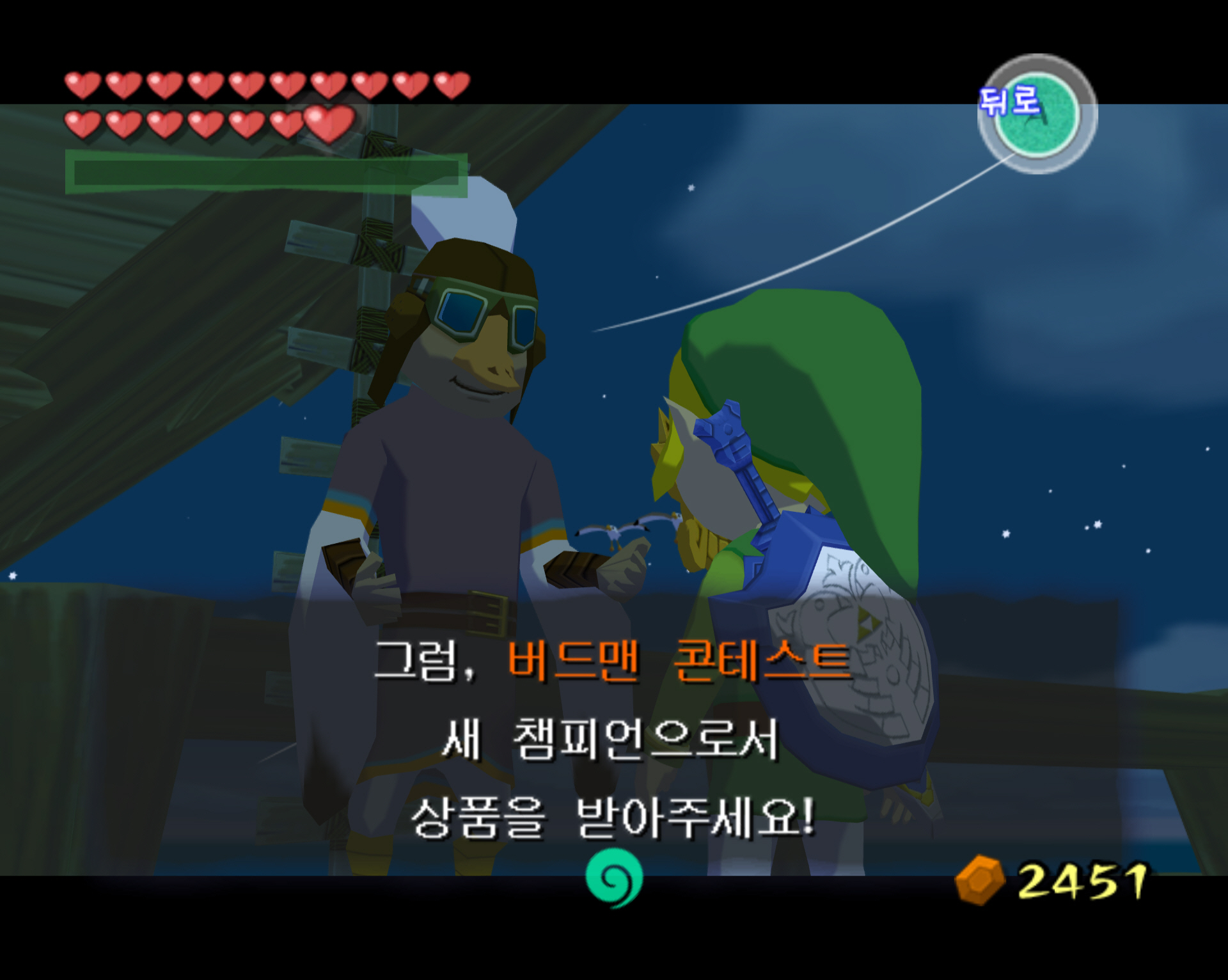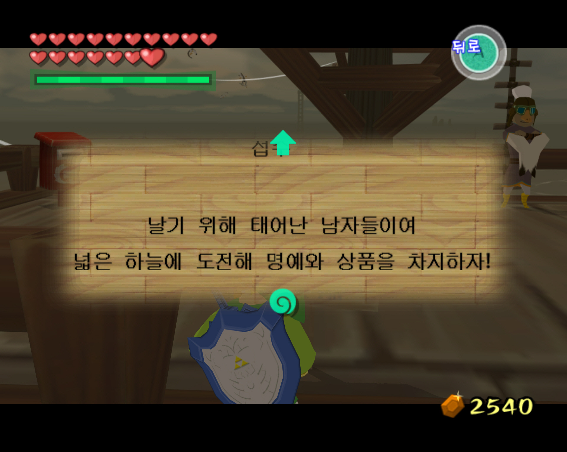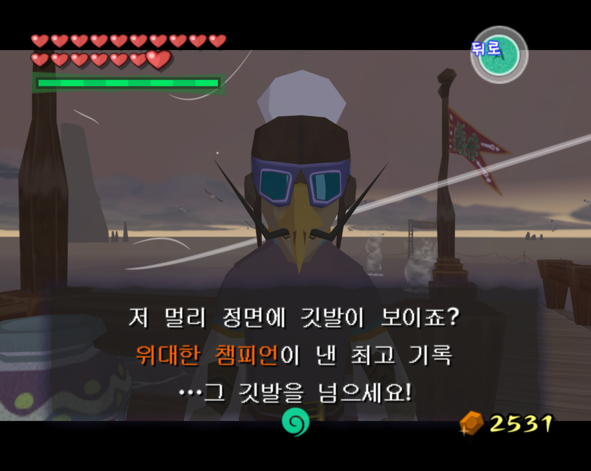 비행 전망대에서 버드맨 콘테스트에 참여하여 깃대가 있는 곳까지 날아가면 됩니다. 글로는 매우 쉬운데 테크잎을 펼쳐서 날아가면서 회오리를 타고 고도를 유지해야 하며 마력치 줄어드는 것도 신경 써야 합니다. 저는 하다 하다 너무 어려워서 팅클 조종기를 사용해서 공략했습니다. 팅클 조종기 상에서는 마력을 회복해 줄 수 있는 물약을 40루피에 팔고 있는데 테크잎 타고 날아가는 동안에도 바로 사용가능합니다.