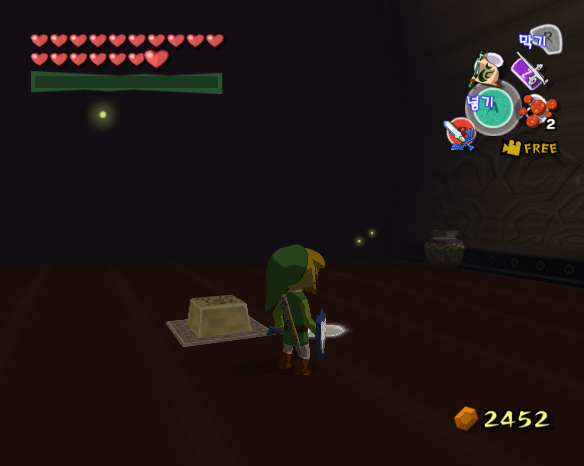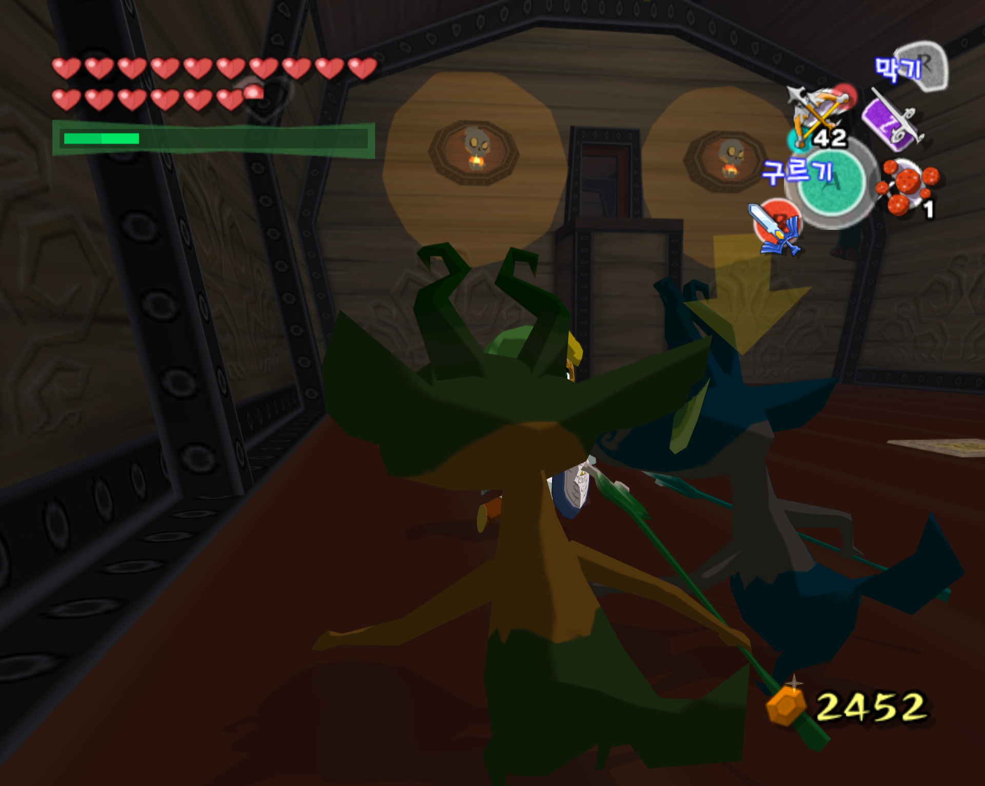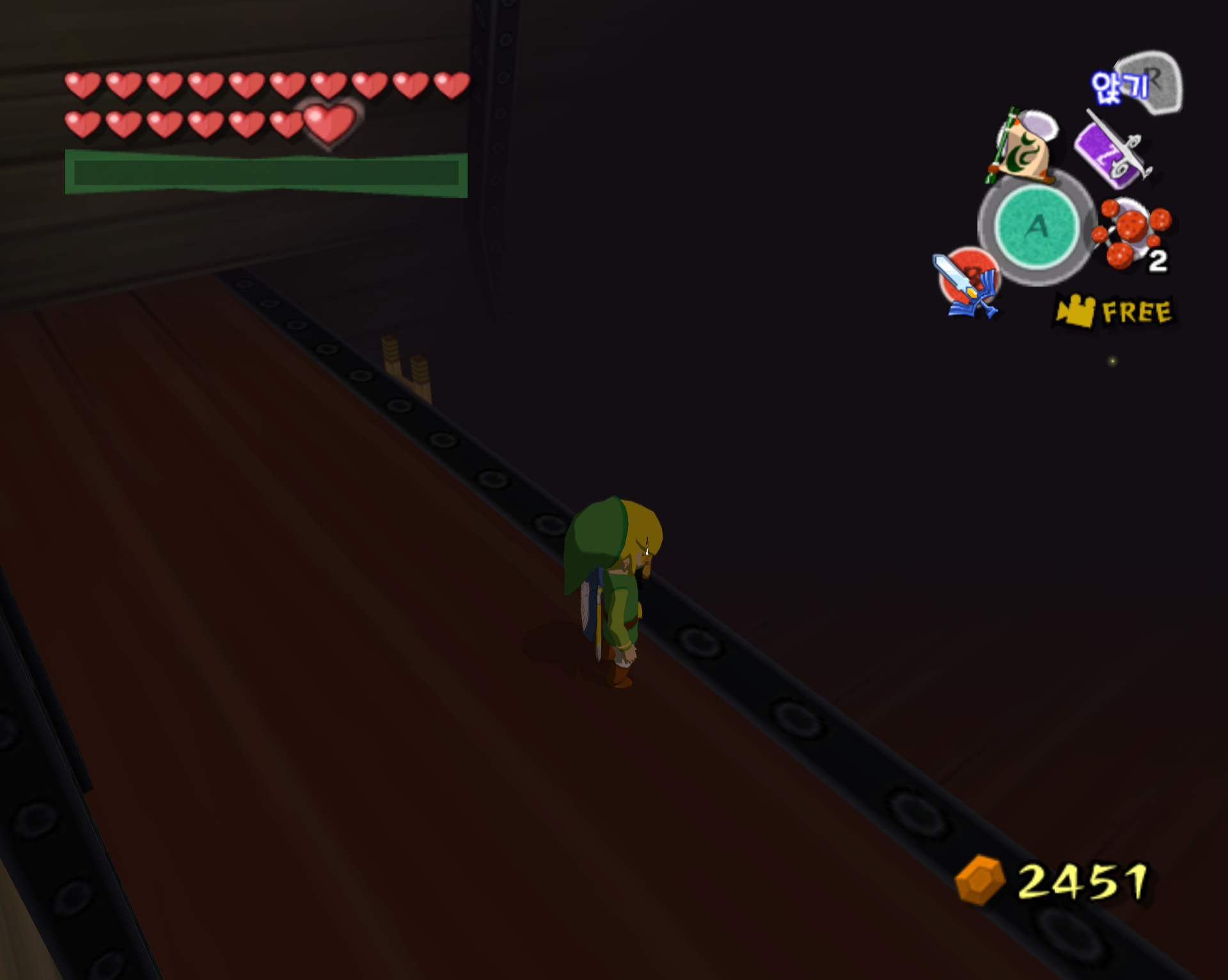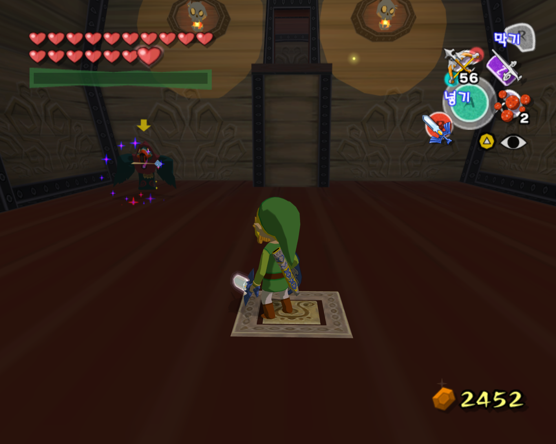 돌핀 에뮬 통해서 깔끔하게 스크린 샷으로 갈무리 하면 좋을 텐데 애석하게도, 제 컴이 무척 구형이라 에뮬 기동에 많은 인내심이 필요합니다. 더욱이 제 wii로 현재 한국 정발 젤다 바택을 돌리