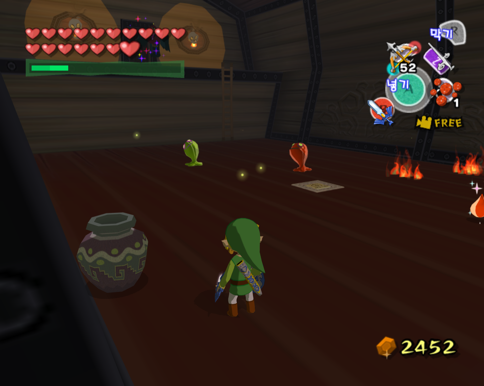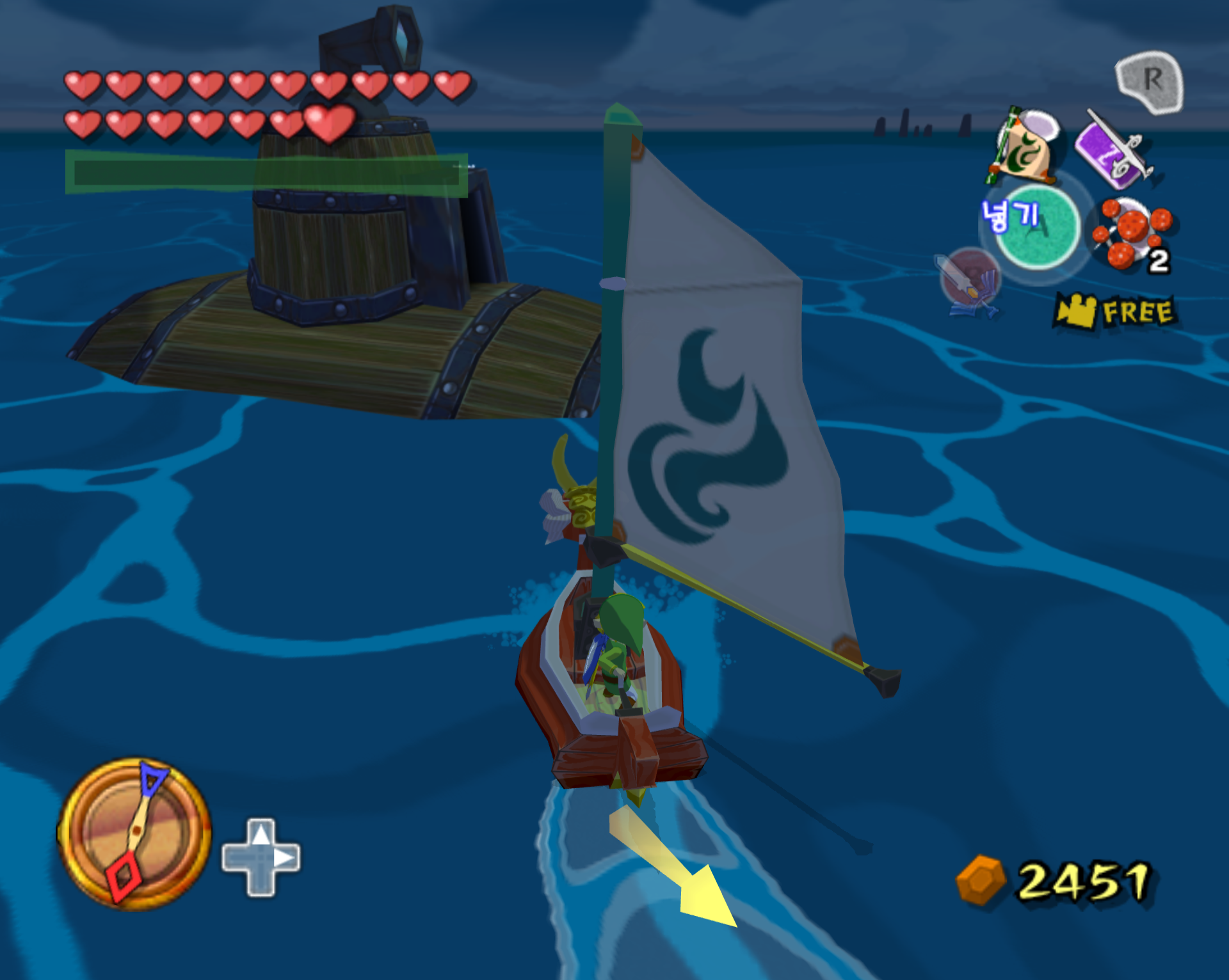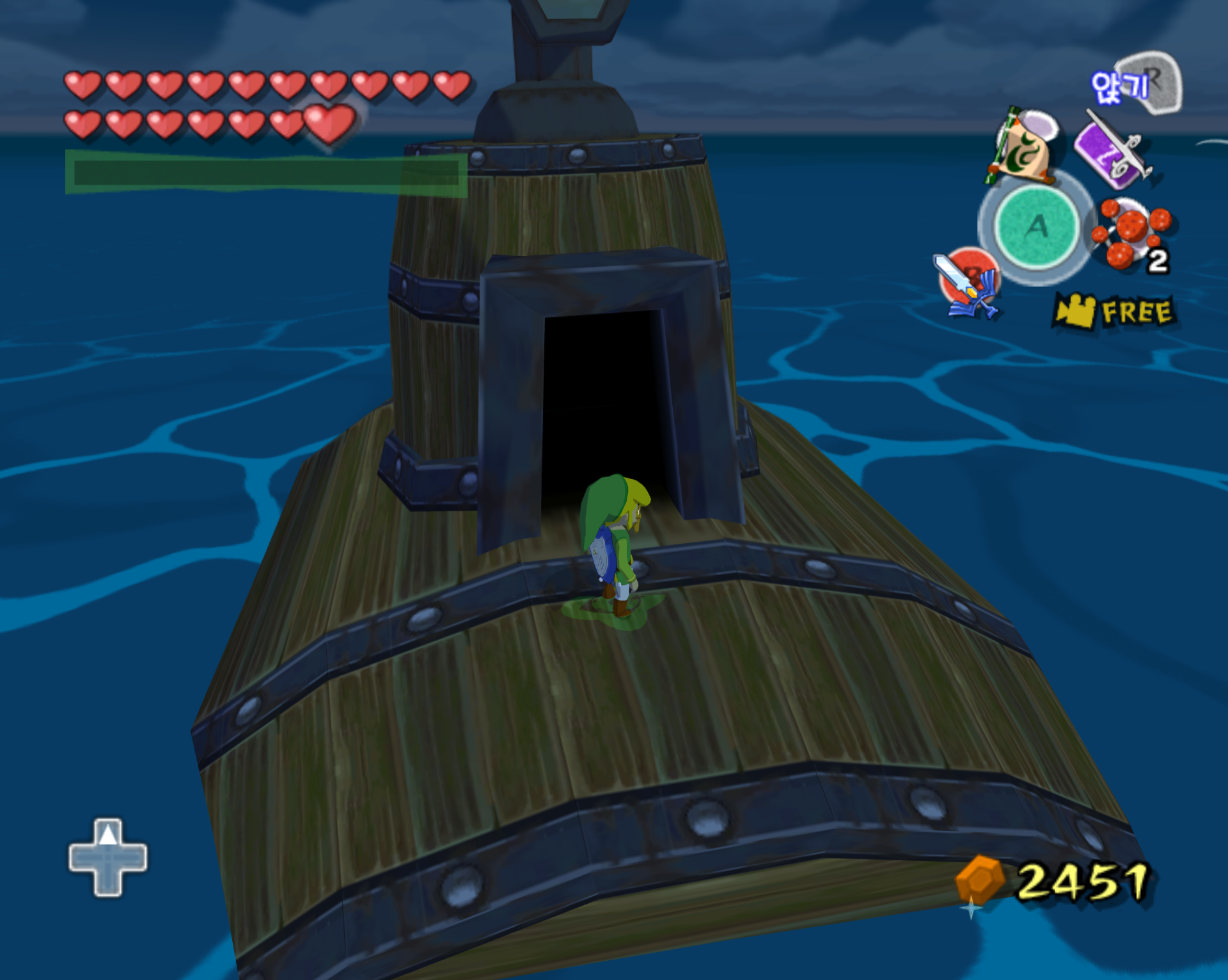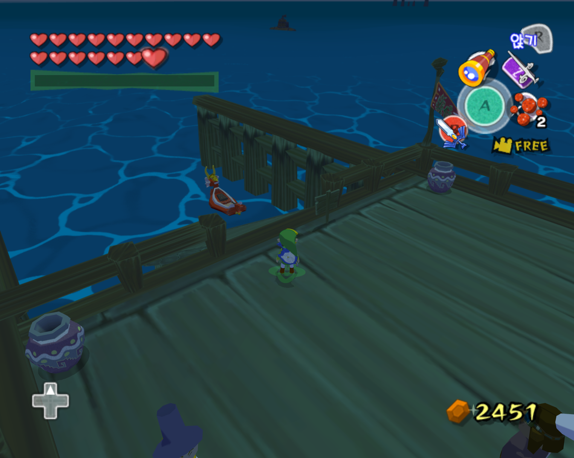 돌핀 에뮬 통해서 깔끔하게 스크린 샷으로 갈무리 하면 좋을 텐데 애석하게도, 제 컴이 무척 구형이라 에뮬 기동에 많은 인내심이 필요합니다. 더욱이 제 wii로 현재 한국 정발 젤다 바택을 돌리