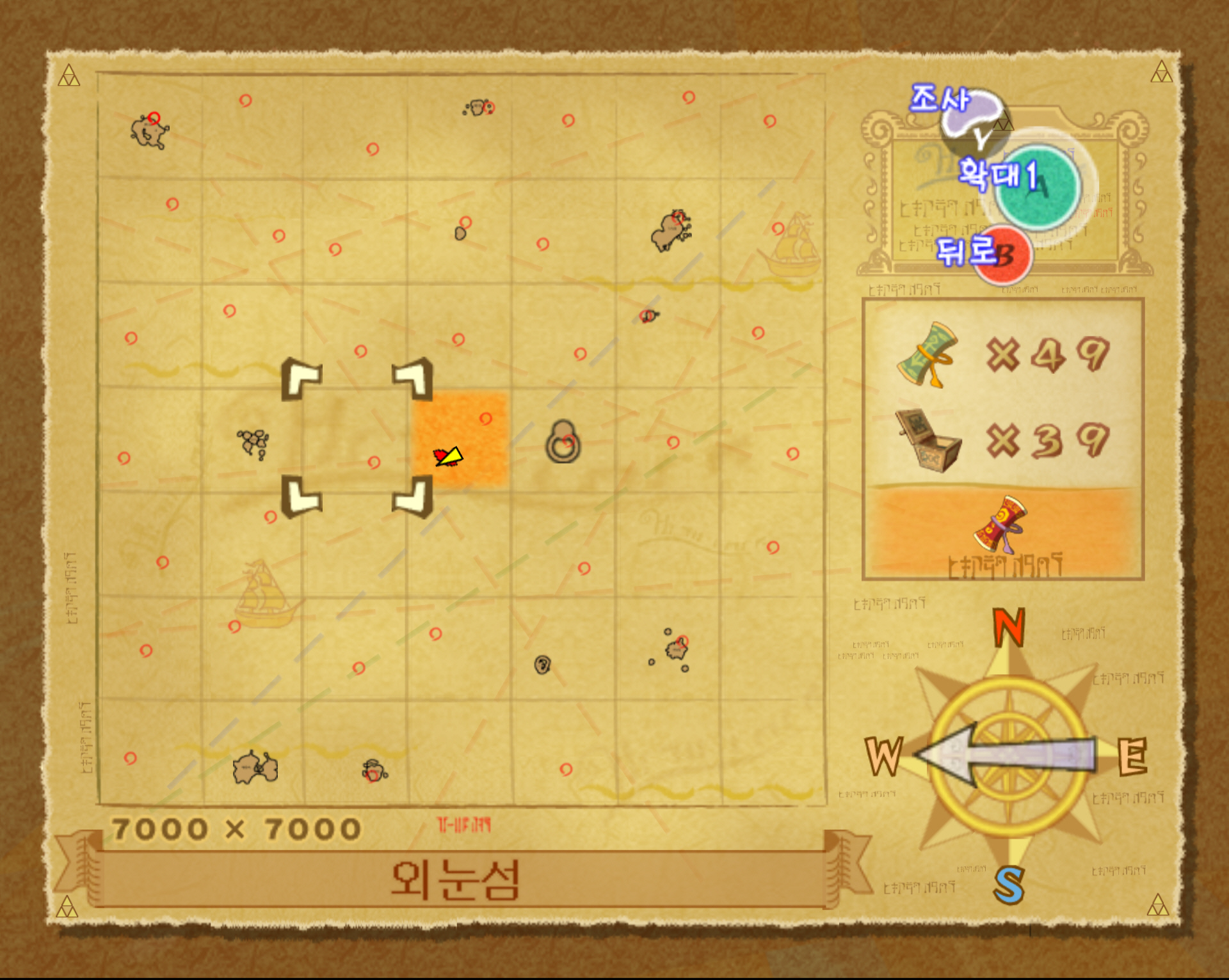 1. 이벤트 위치 : 외눈섬에 있는 망루 1개에 황금깃털이 든 보물상자가 나타납니다. 전체 해도 좌표는 C4입니다.