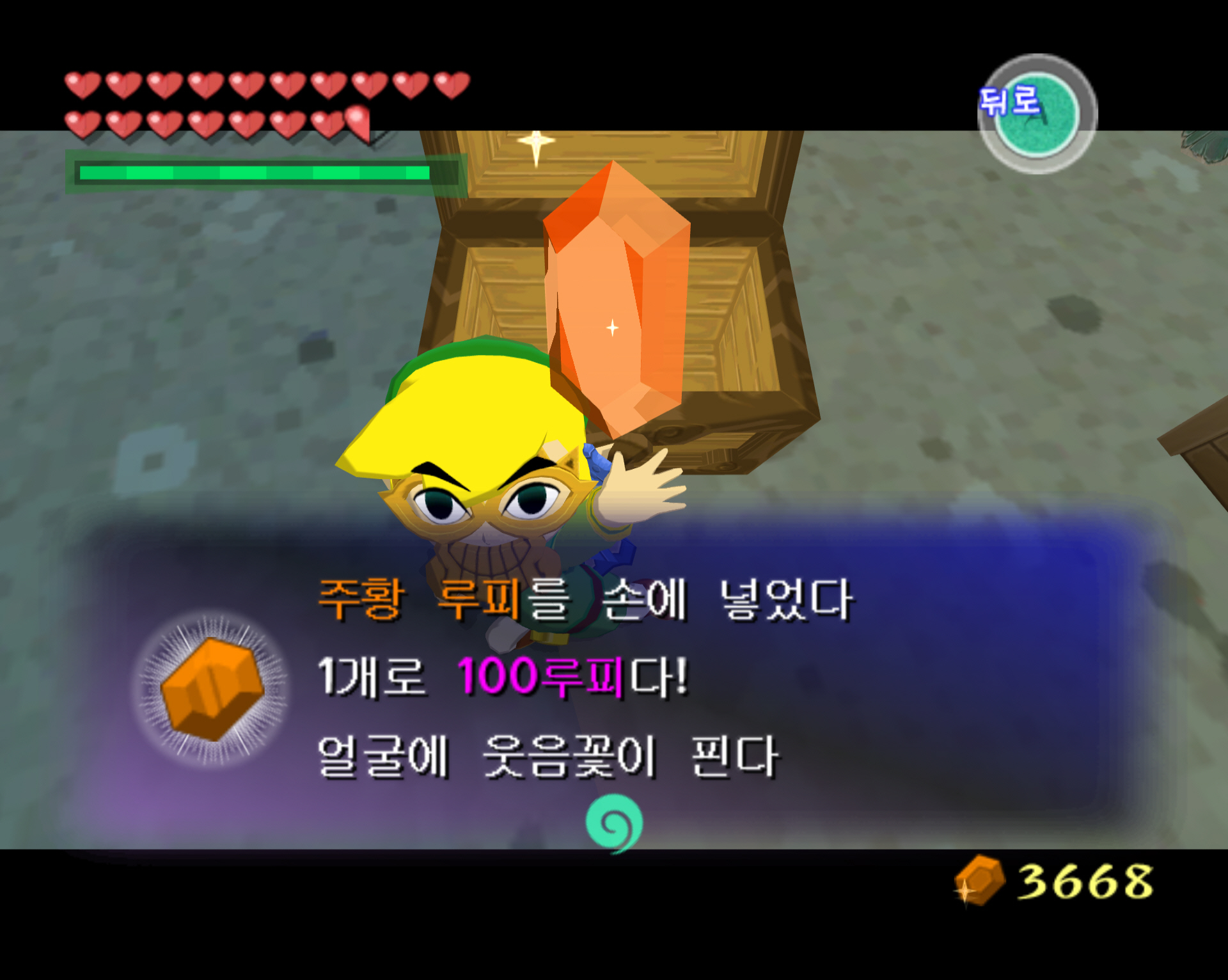 3. 전리품(보상품) : 주황 루피입니다. 100루피. 간단한 던전이라 적절한 보상인 듯.