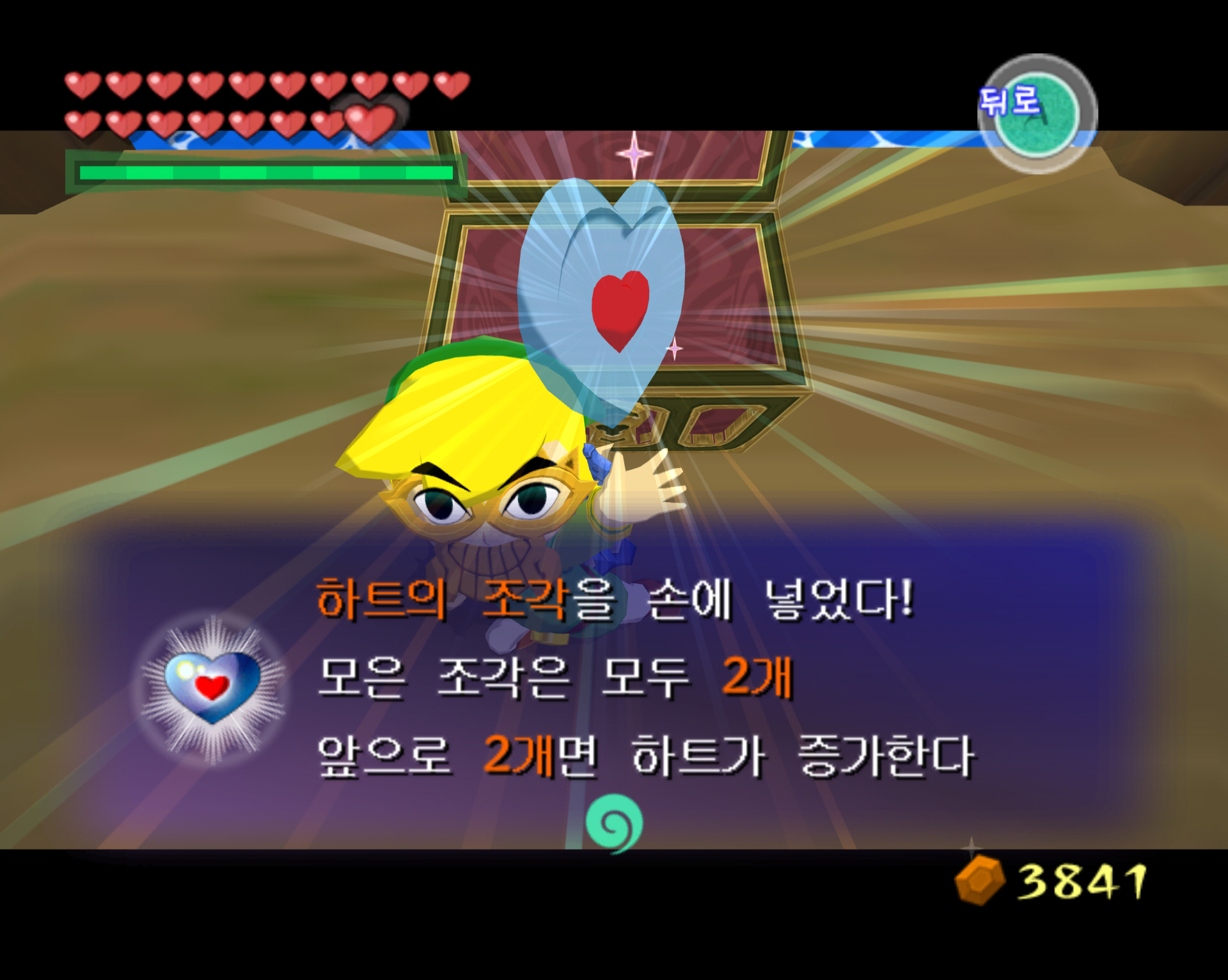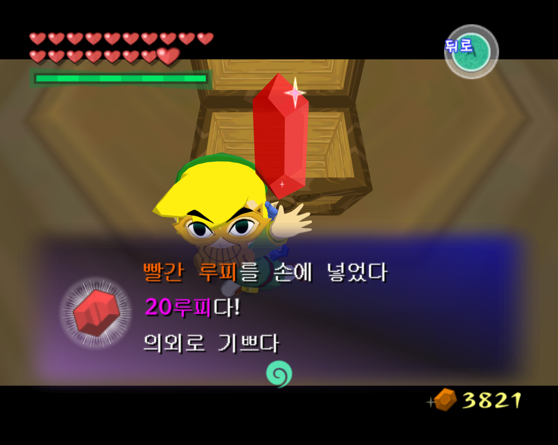 3. 전리품(보상품) : 빨간 루피(20루피) 1개와 하트조각 1개입니다.
