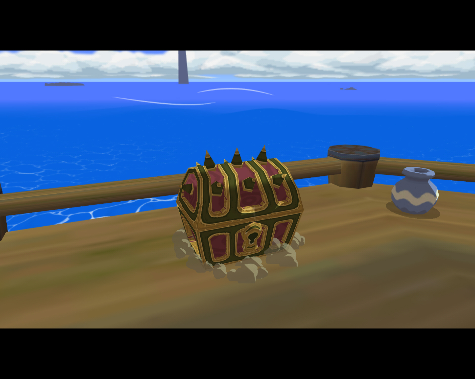 큰바위얼굴 섬 동쪽으로 망루 1개가 있습니다. 이 망루에는 포탑이 무려 7개가 달려 있고 이 포탑들을 제거하면 보물 상자가 추가로 1개 더 나타납니다.