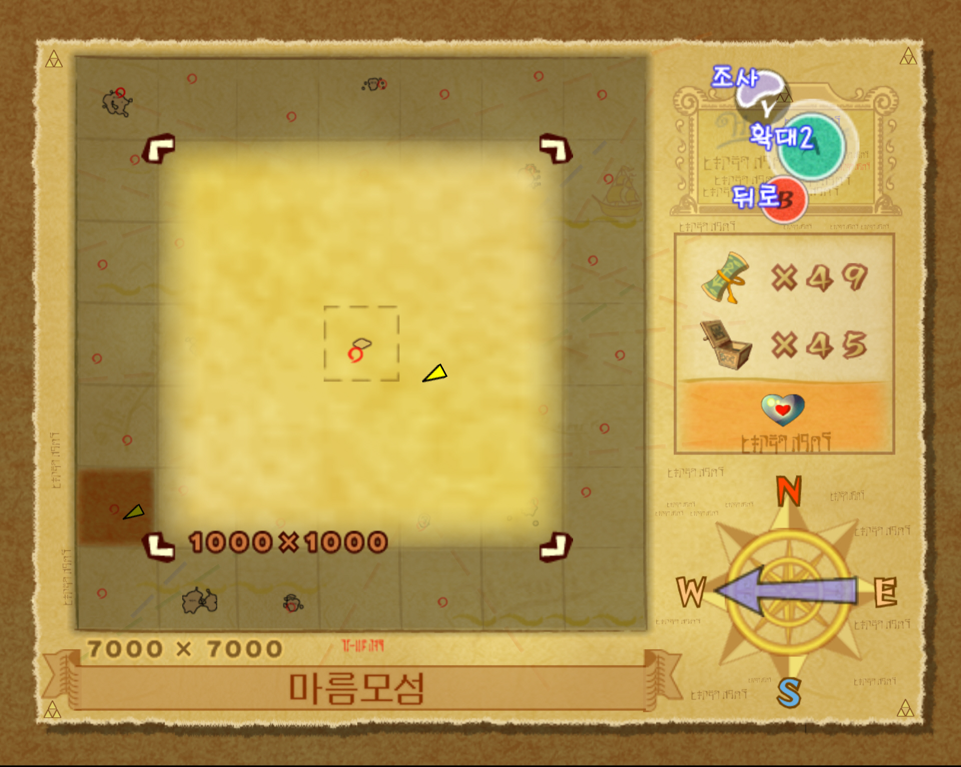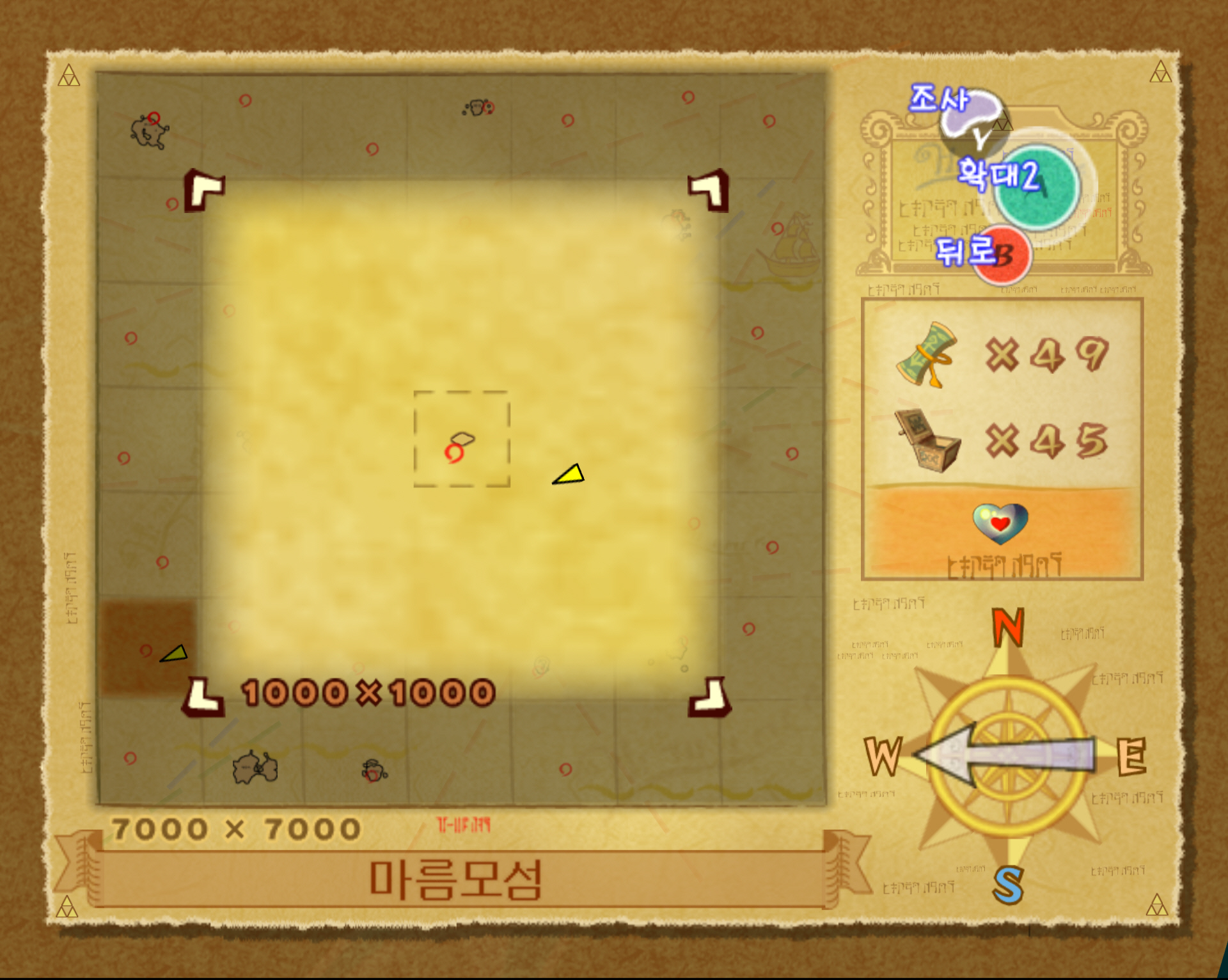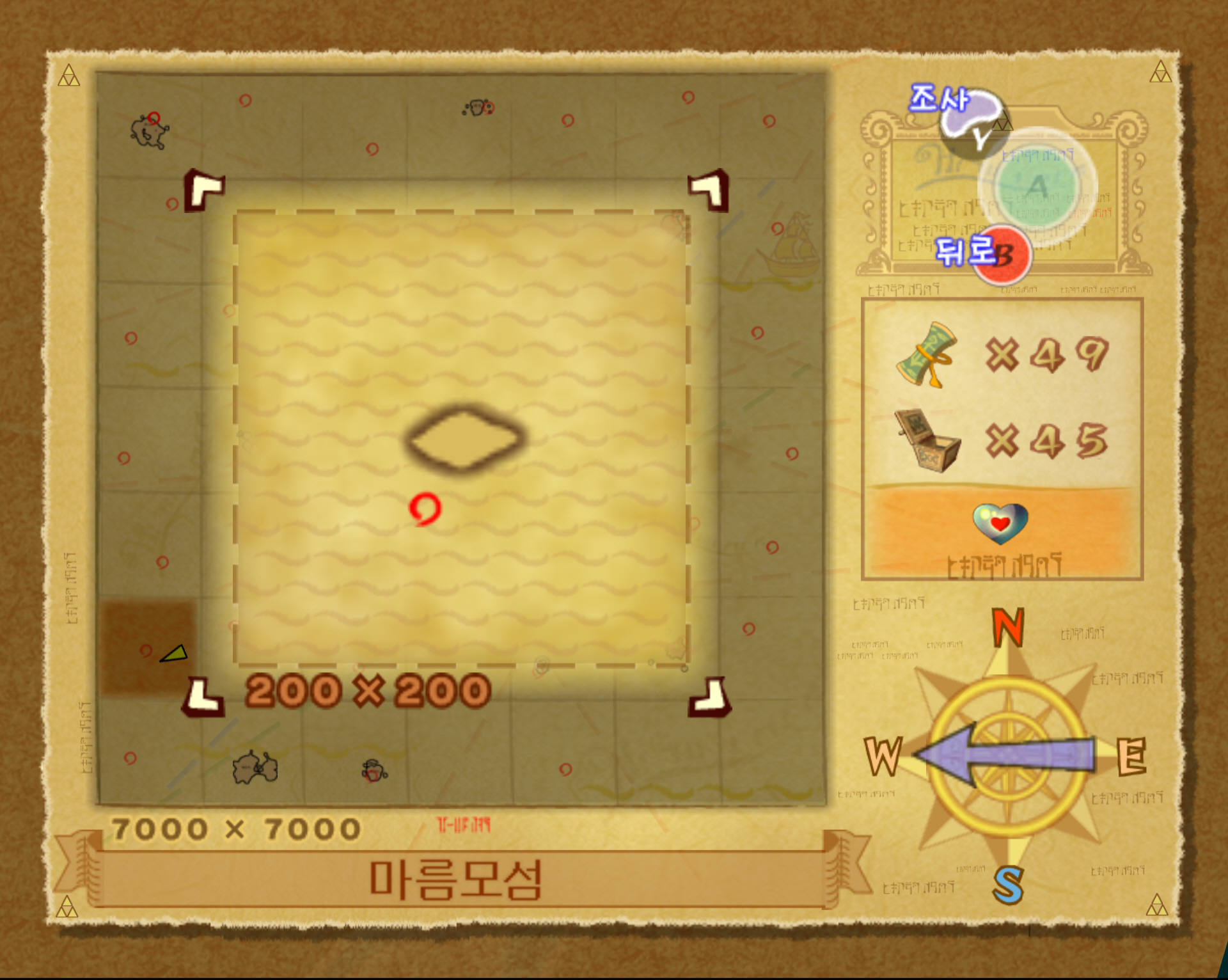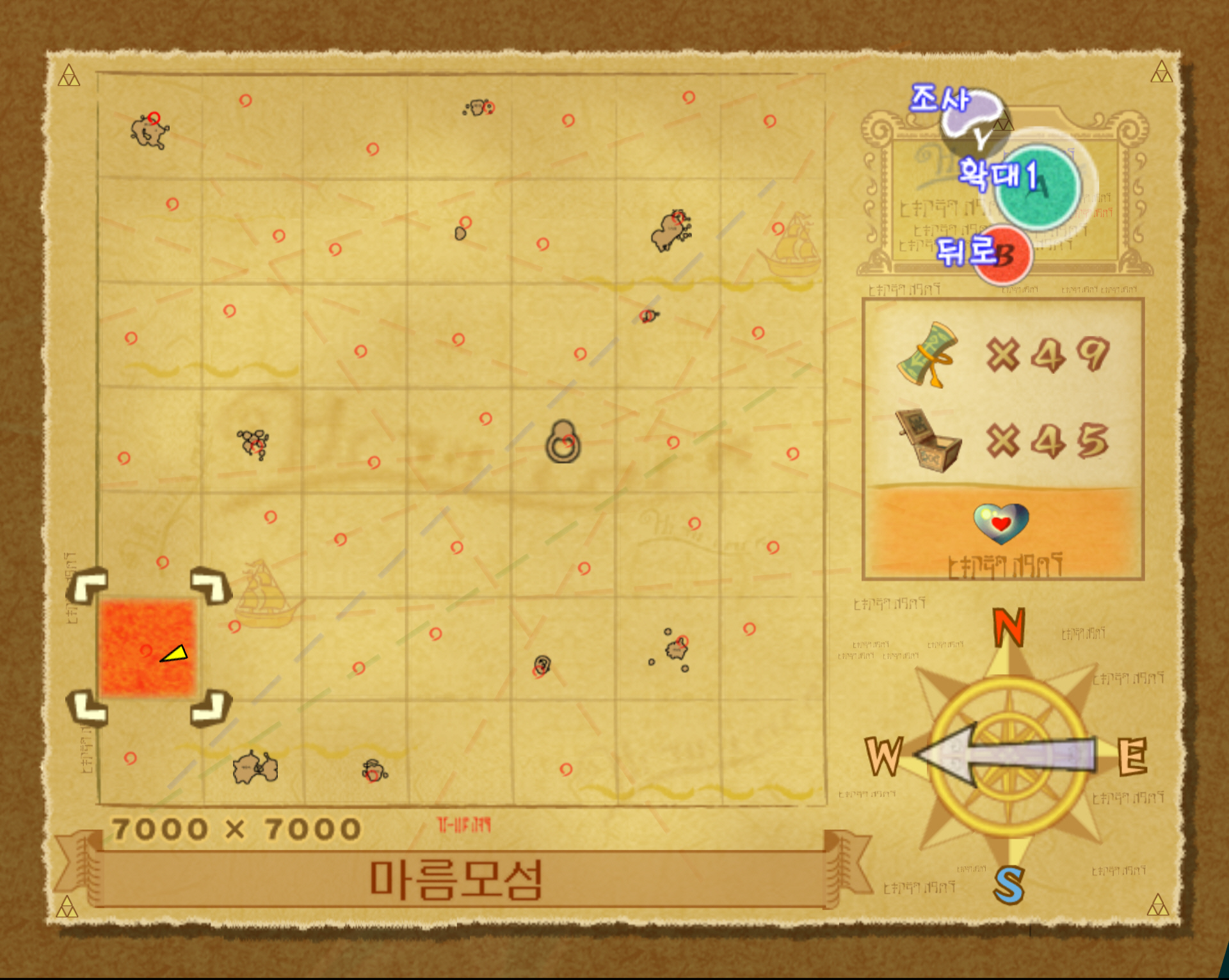 마름모섬 동쪽에 갈매기가 많은 곳으로 가면 대왕오징어가 등장합니다. 오징어류가 다 그렇지만 눈깔을 모두 조지면 잡을 수 있습니다. 등장 위치를 찾기 힘들면 아래의 해도 상 노란 화살표 위치로 이동하세요.