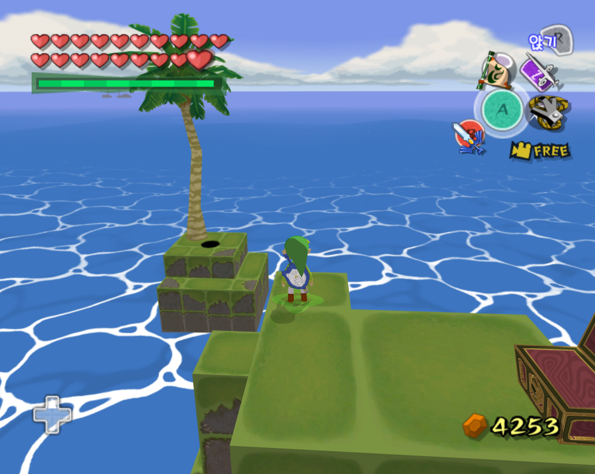던전이 있는 섬에는 야자수가 있습니다. 바다 쪽에서 훅샷을 쏴서 맞춘 후 올라가는 방법도 있습니다.