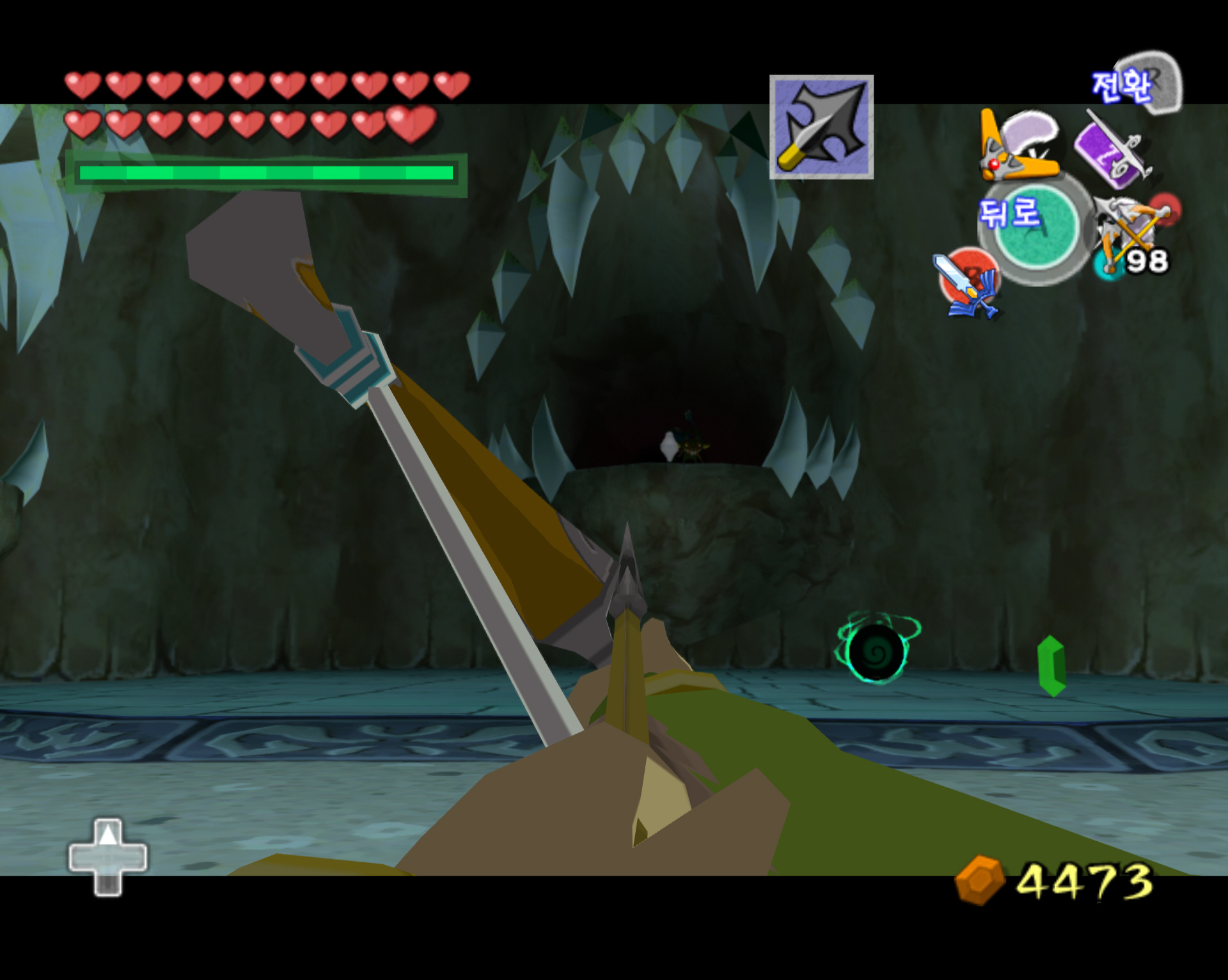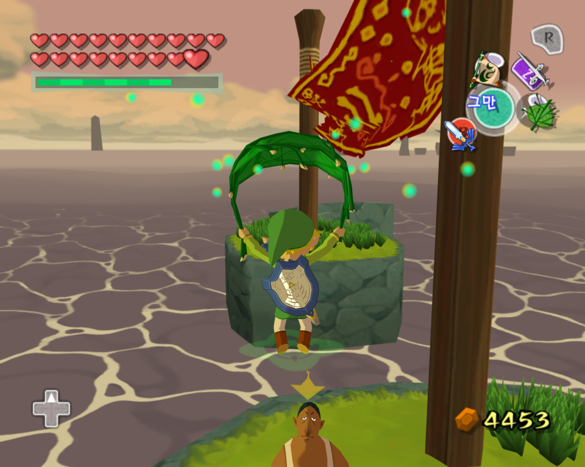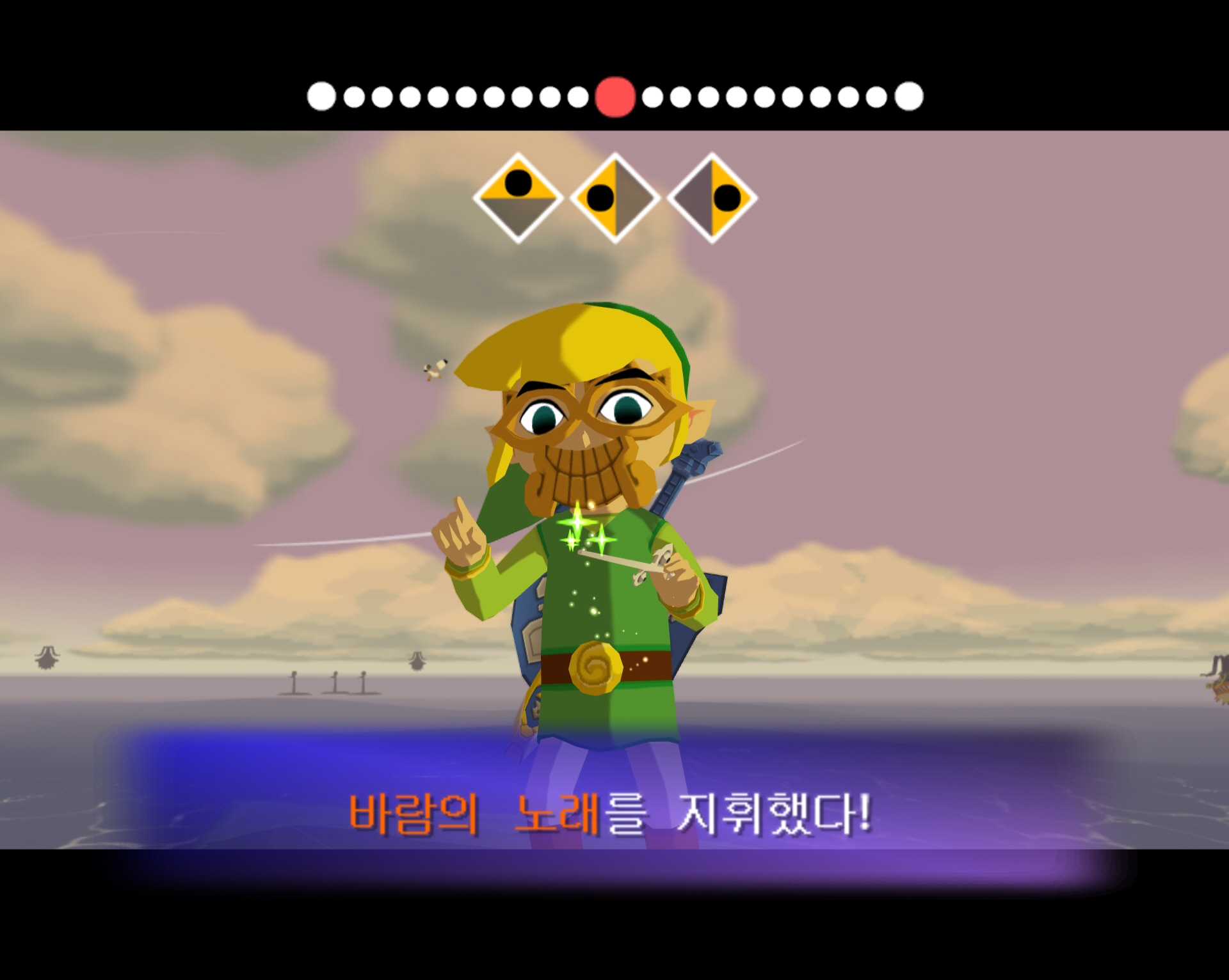 돌핀 에뮬 통해서 깔끔하게 스크린 샷으로 갈무리 하면 좋을 텐데 애석하게도, 제 컴이 무척 구형이라 에뮬 기동에 많은 인내심이 필요합니다. 더욱이 제 wii로 현재 한국 정발 젤다 바택을 돌리