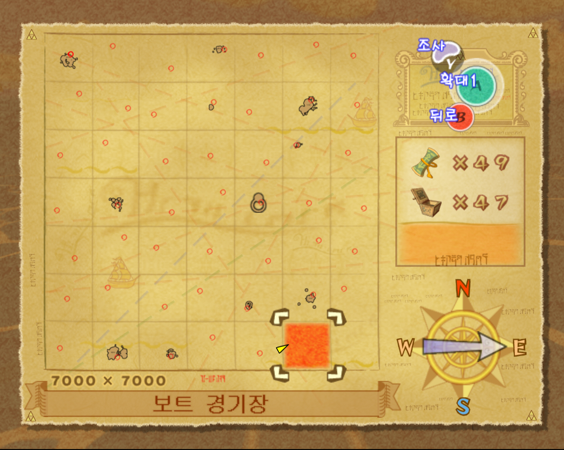 1. 지도 습득 위치 및 좌표 : 보트 경기장의 던전, 전체 해도 좌표는 E7