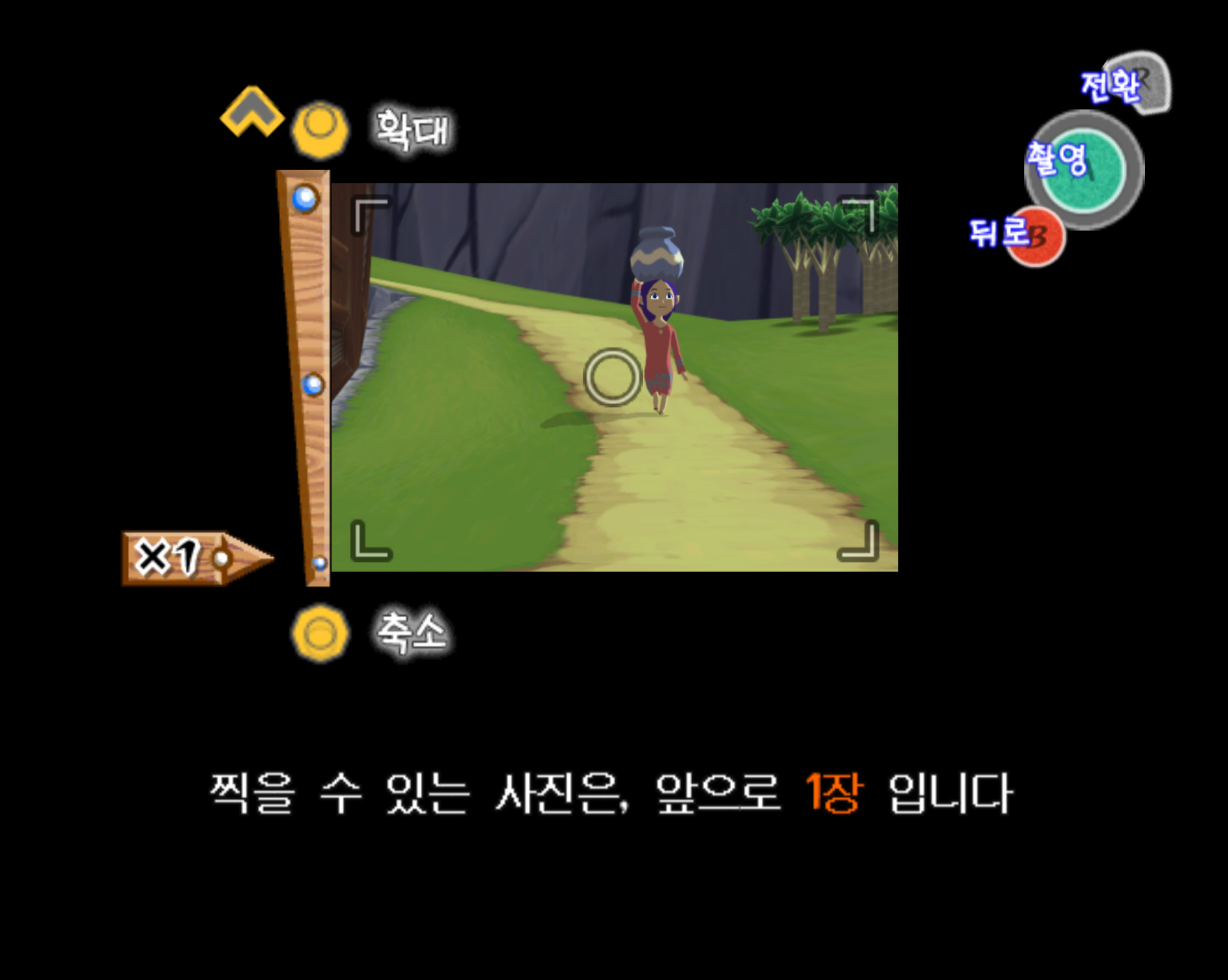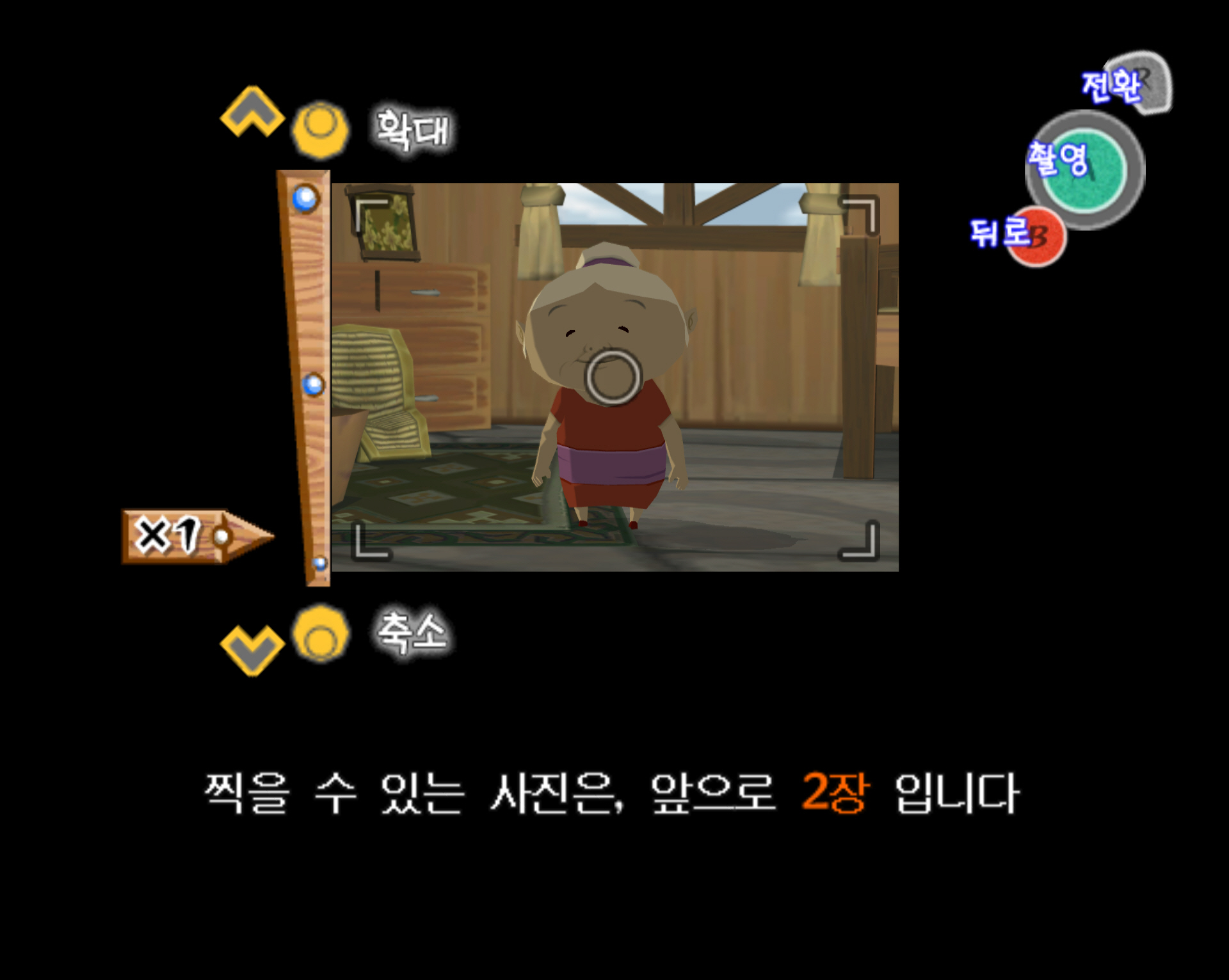 닌텐당 갤러리 주인장 앞에서 사진기를 사용하면 찍은 사진을 보여줄 수 있습니다. 일단 얼굴이 중심에 나오고 전면 전신사진이 잘 나온 할머니 사진을 보여주니 바로 제작을 하겠다고 합니다. 단 사진이 피규어 제작에 들어가면 다른 사진은 보여줄 수 없습니다. 즉 1회에 1개 사진만 피규어 제작 가능. 사진을 세장까지 찍어도 피규어는 한 번에 하나씩 밖에 제작이 안된다는 거죠.