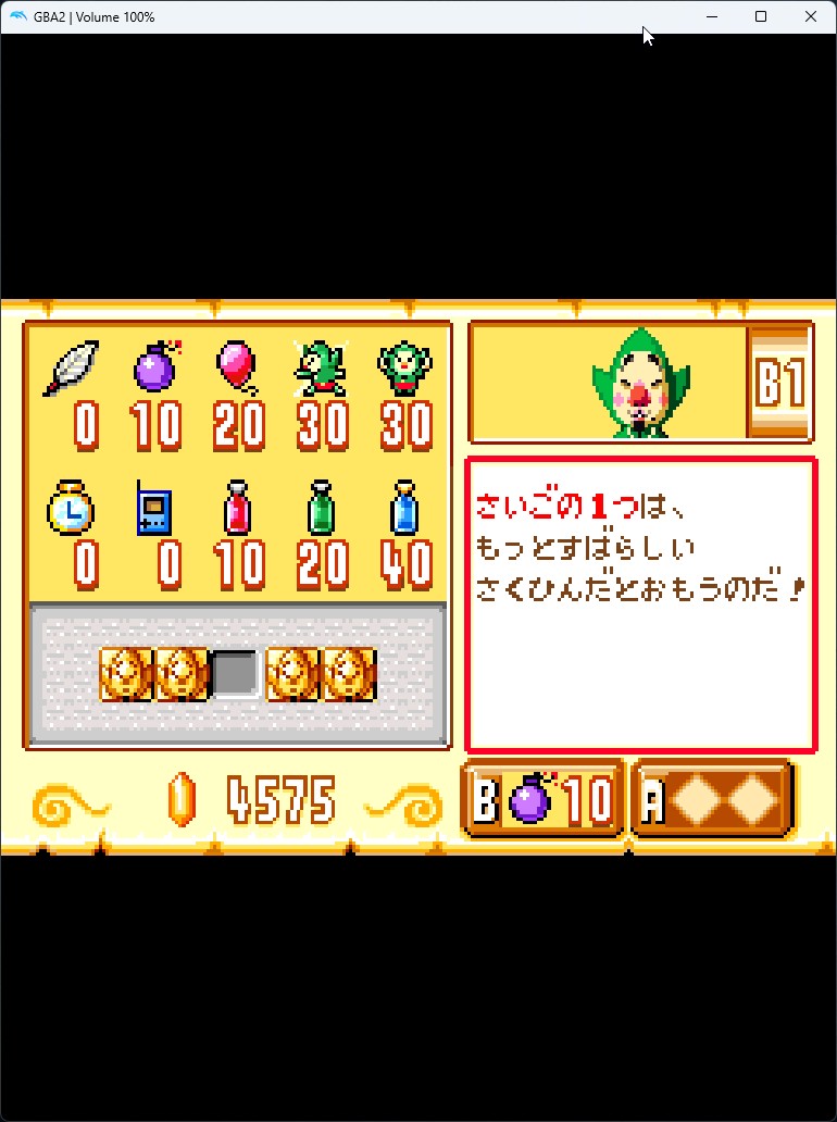 돌핀에서 바람의 택트 진행 중 GBA와의 연결 (팅클 조종기 사용)