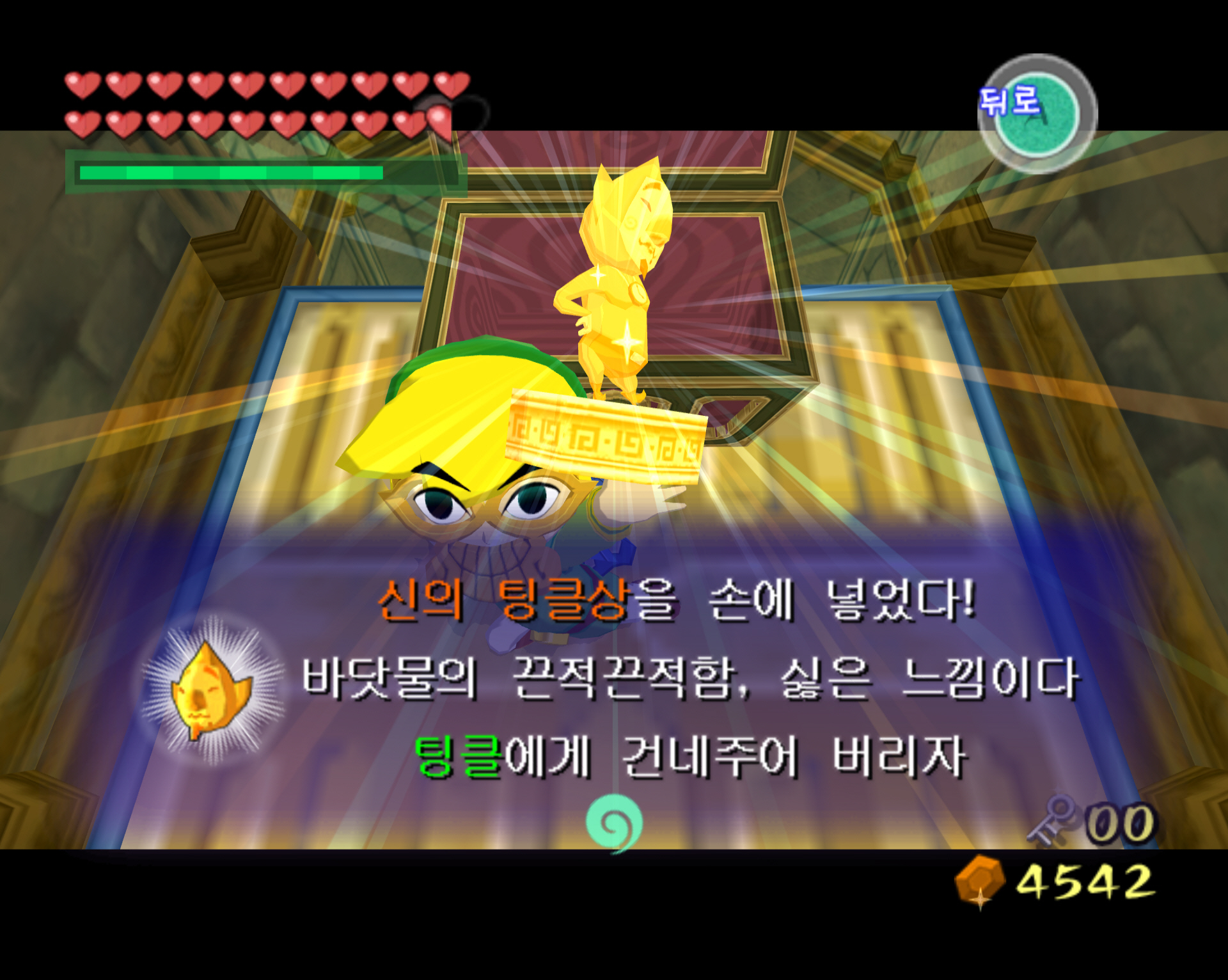 여태 까지 찾았던 팅클의 황금상들이 여기다 모여 있네요. 근데 아무런 보상도, 또는 능력이나 효과도 주는 것이 없습니다. ㅋㅋㅋ