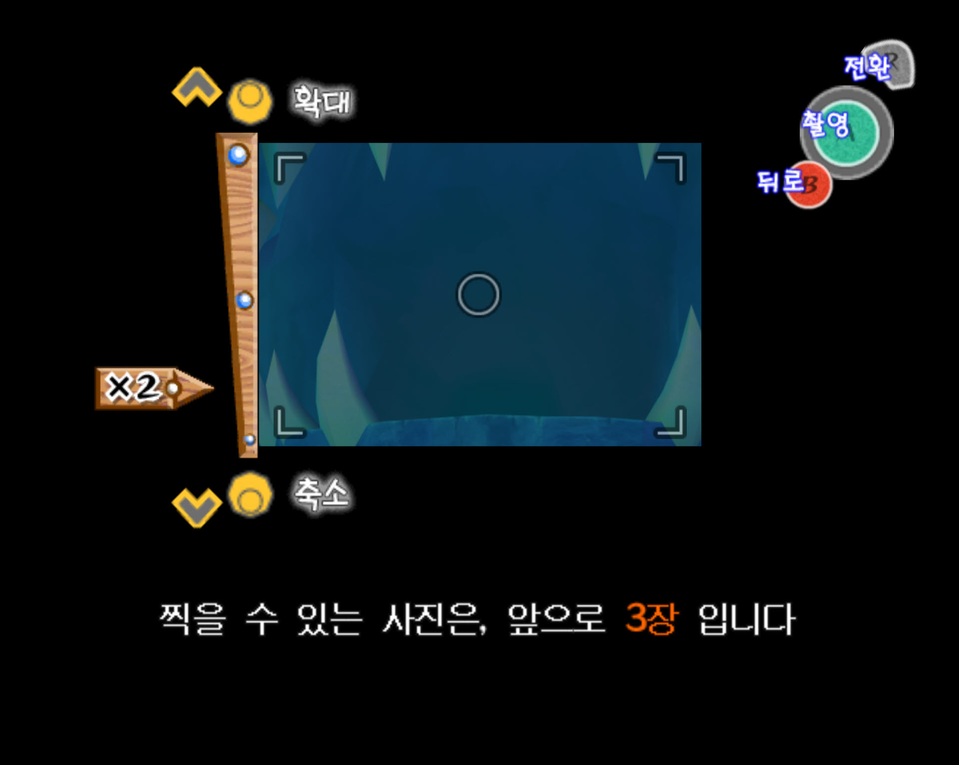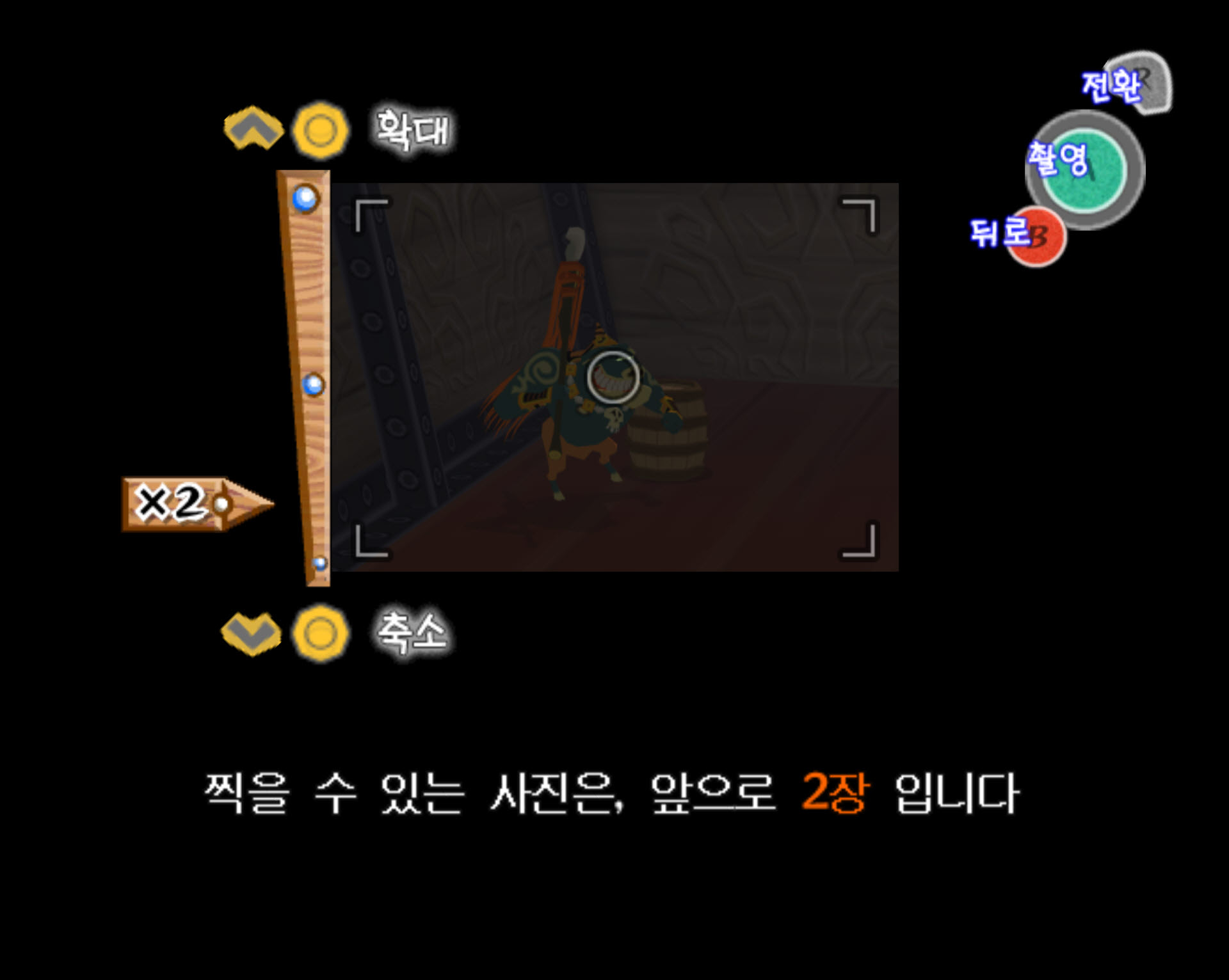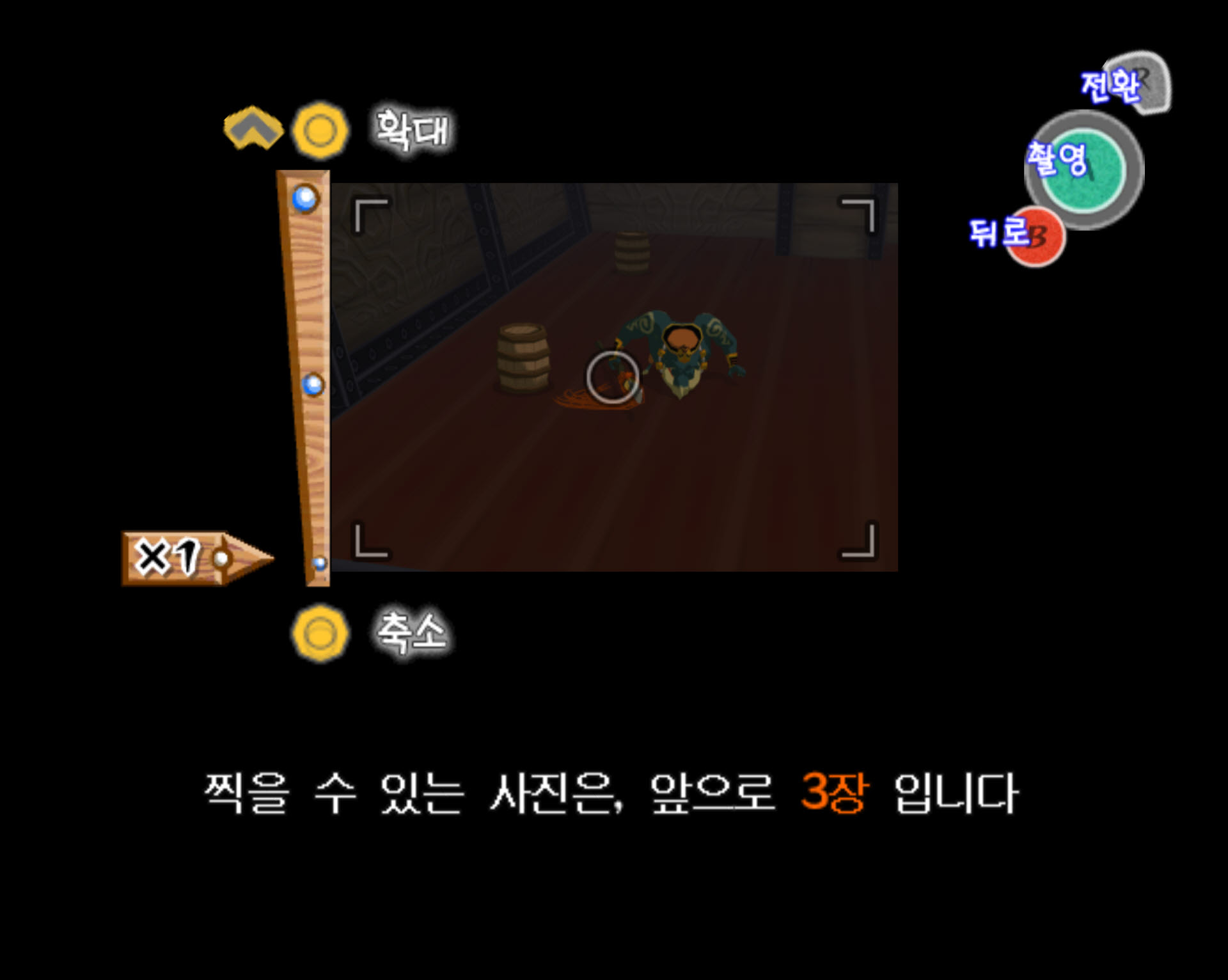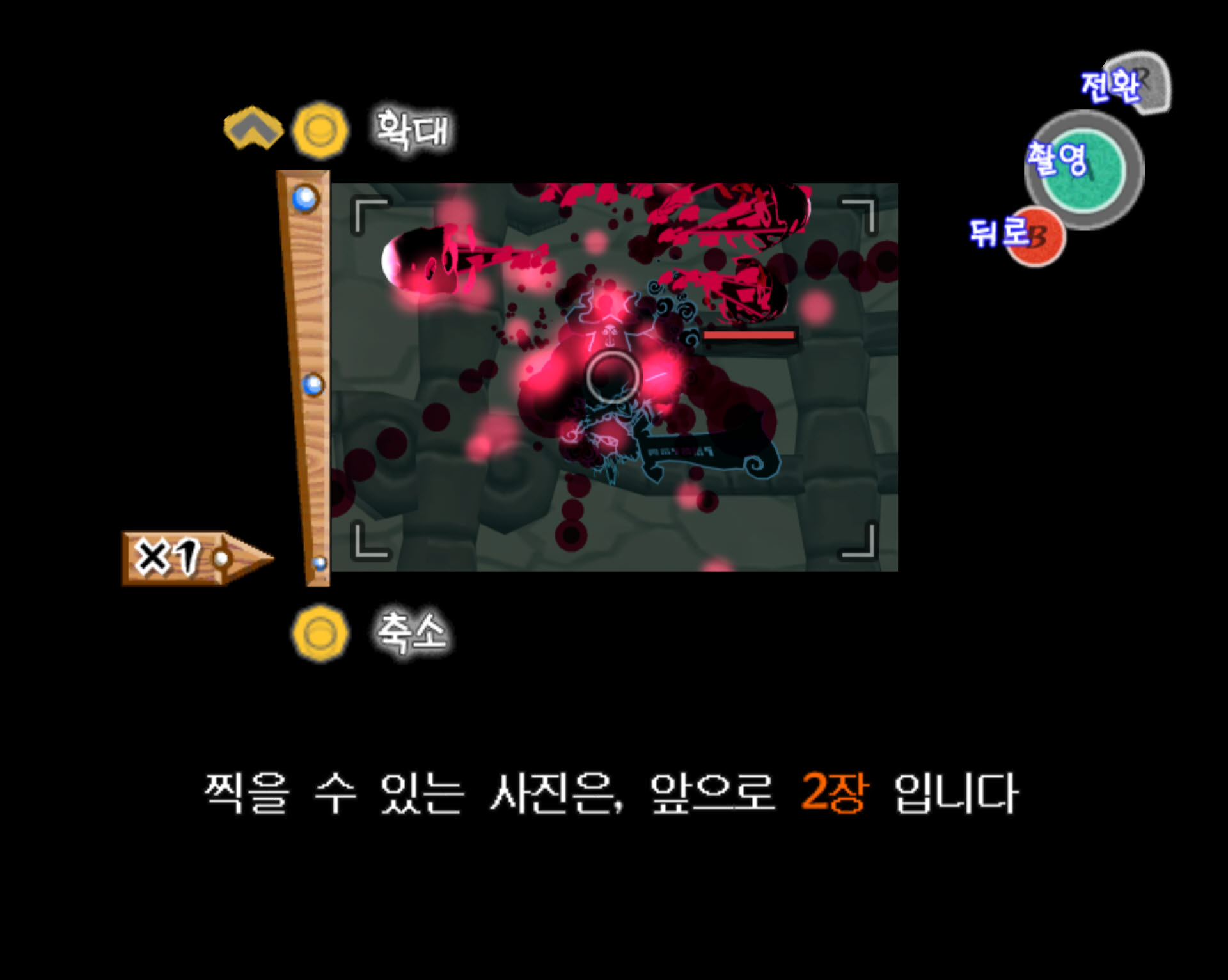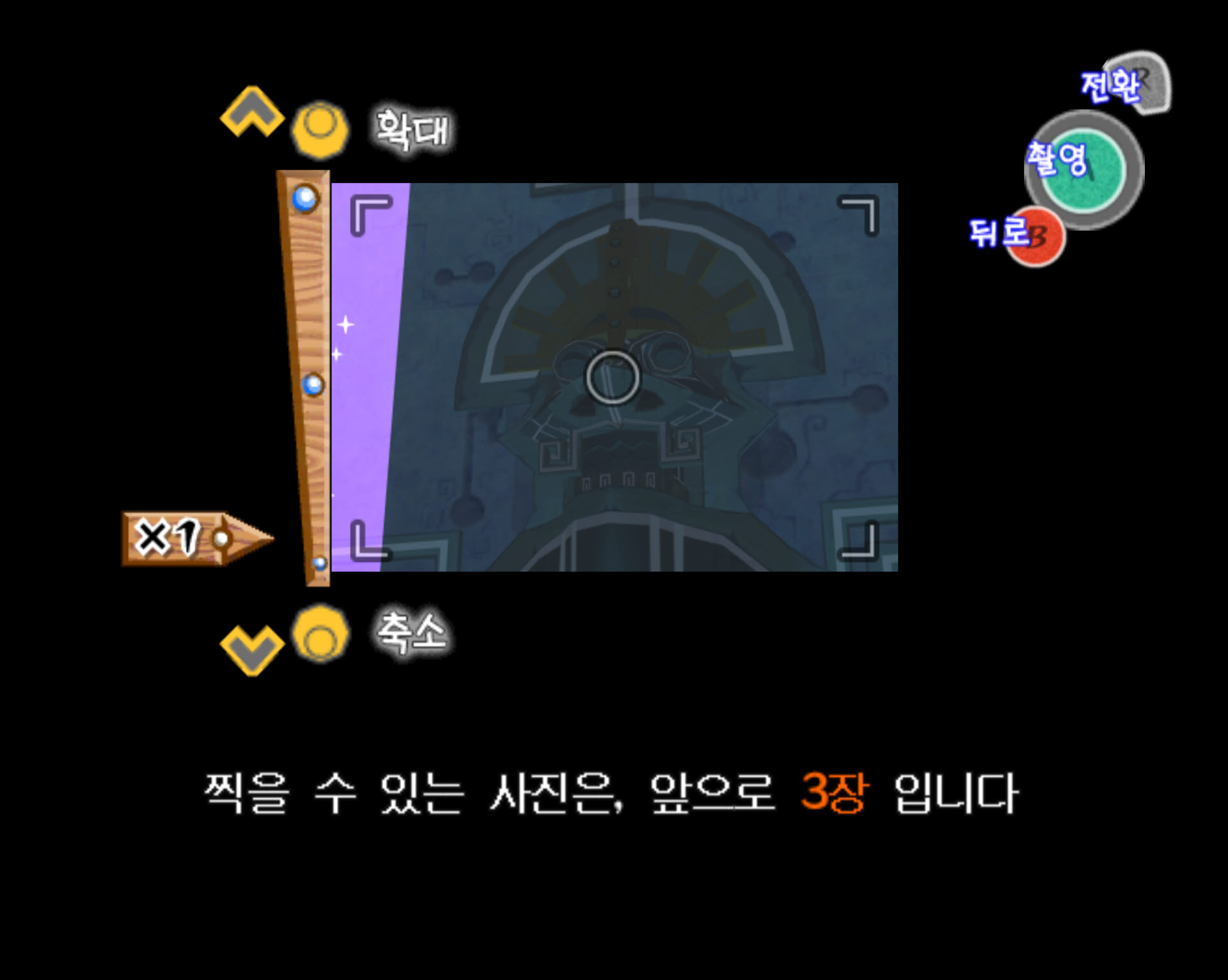 2-2. 링크가 입장하면 괴물입이 전면, 좌우에 총 3개 있는데 최초에는 전면에 보이는 괴물입에서 위즈로브가 한 마리만 등장합니다. 멀리서 카메라의 줌을 땡겨서 위즈로브를 촬영하면 됩니다.