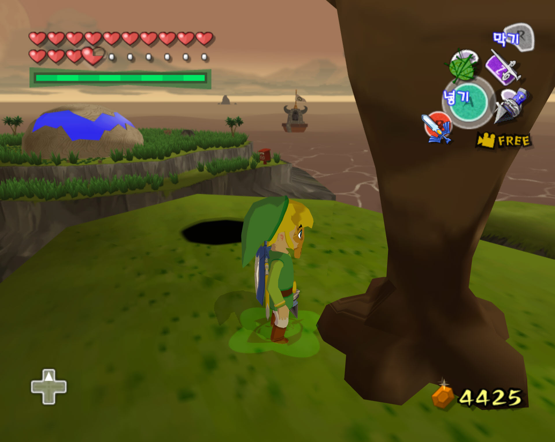 2-1. 발모양 섬에서 아래 스샷처럼 생긴 야자수를 훅샷으로 걸고 올라갑니다. 그리고 던전에 입장합니다.