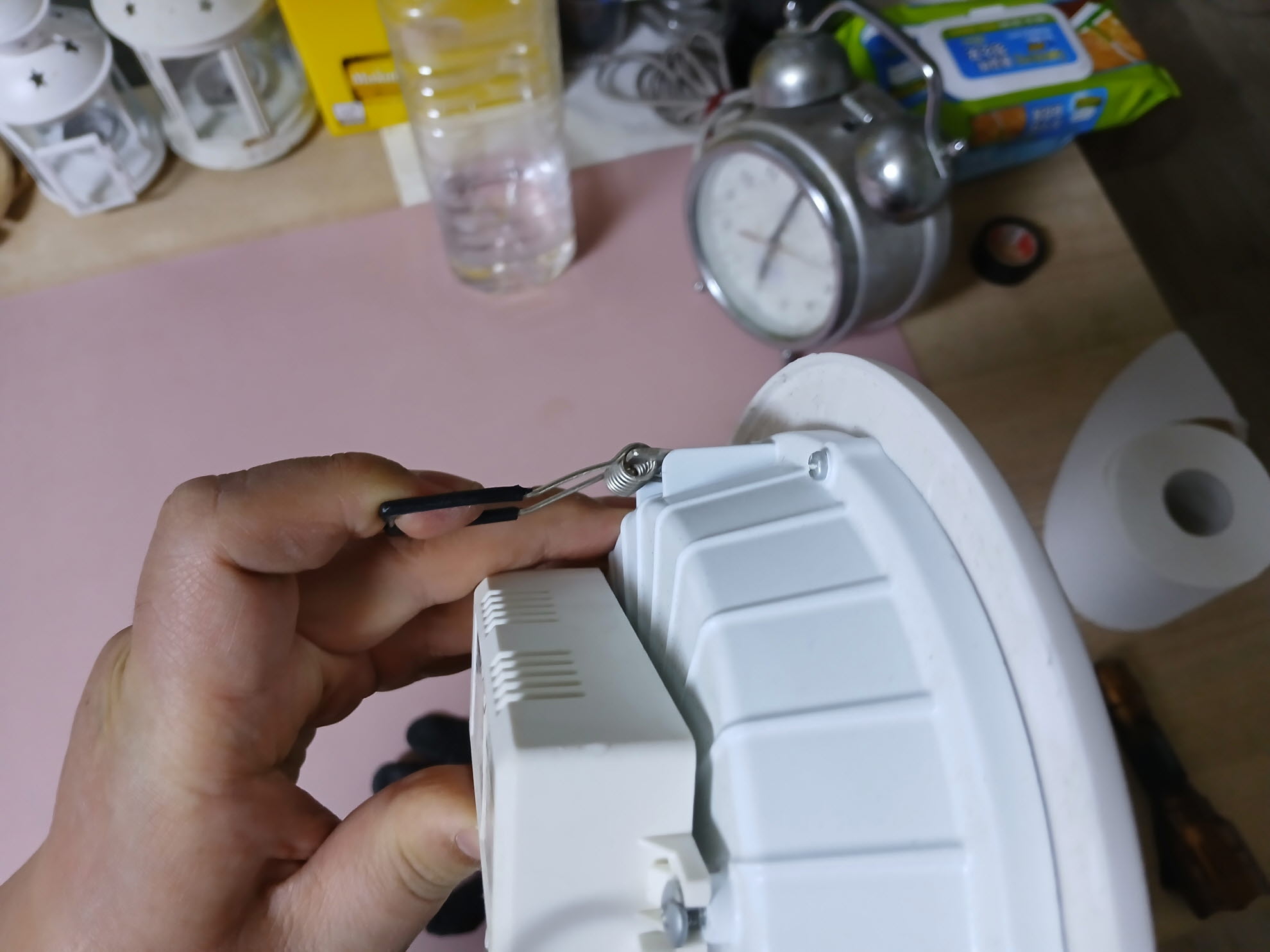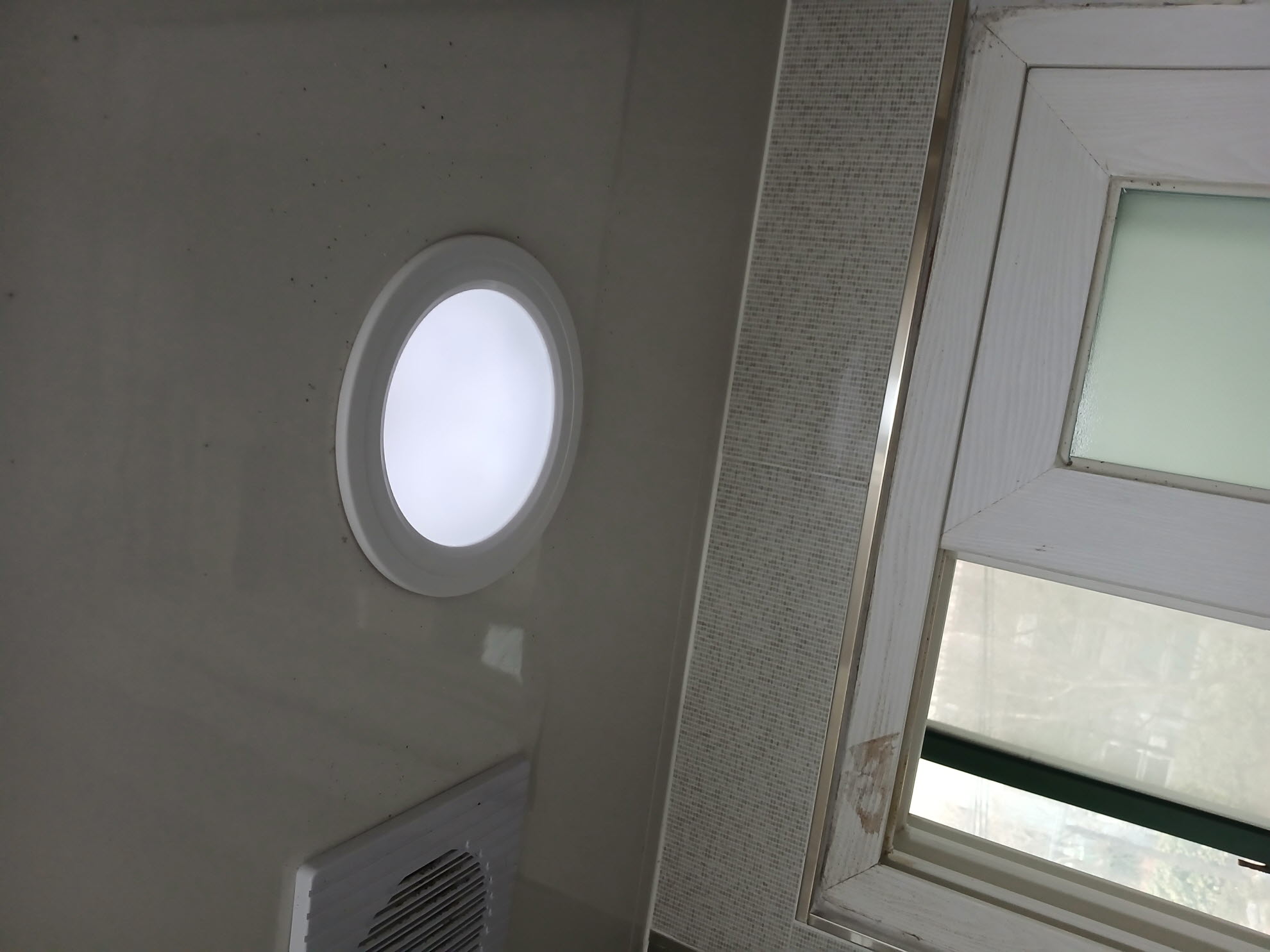 6. 화장실용 매립등은 클립 두 개로 고정되는 형태입니다. 그걸 제치면 바로 내려옵니다.
