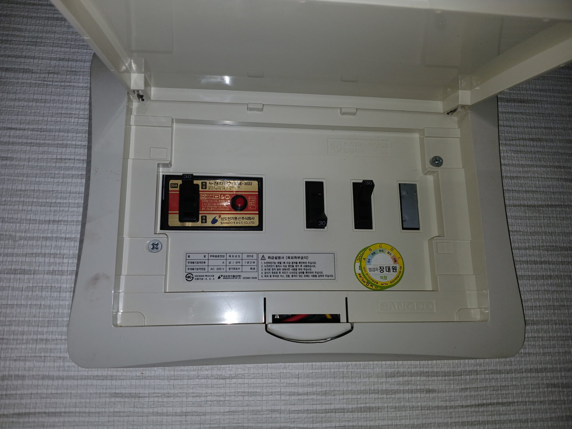 1. 일단 전기함에서 차단 스위치를 내립니다. 메인을 내려도 되지만 저는 전등만 담당하는 차단기를 찾아서 내렸습니다.
