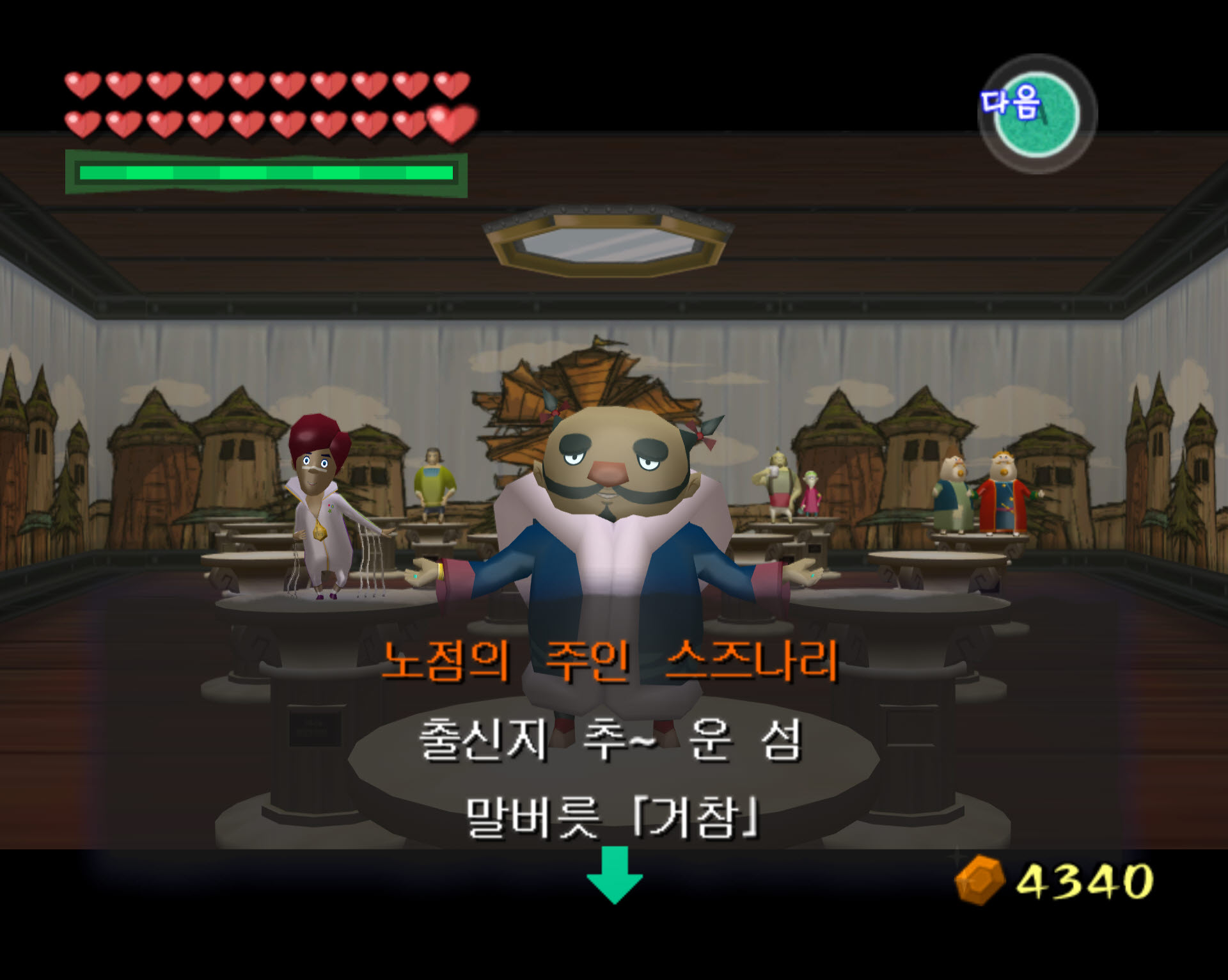 링크에게 돛을 파는 NPC입니다. 낮에는 찻집 1층의 노점상에서 촬영할 수 있고 밤에는 부잣집 1층인 경매장에서 볼 수 있습니다. |